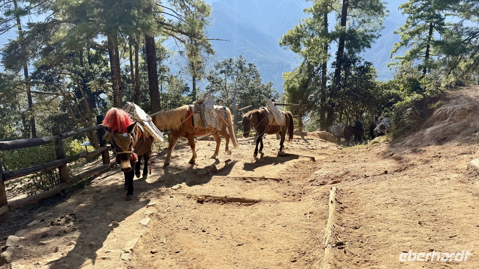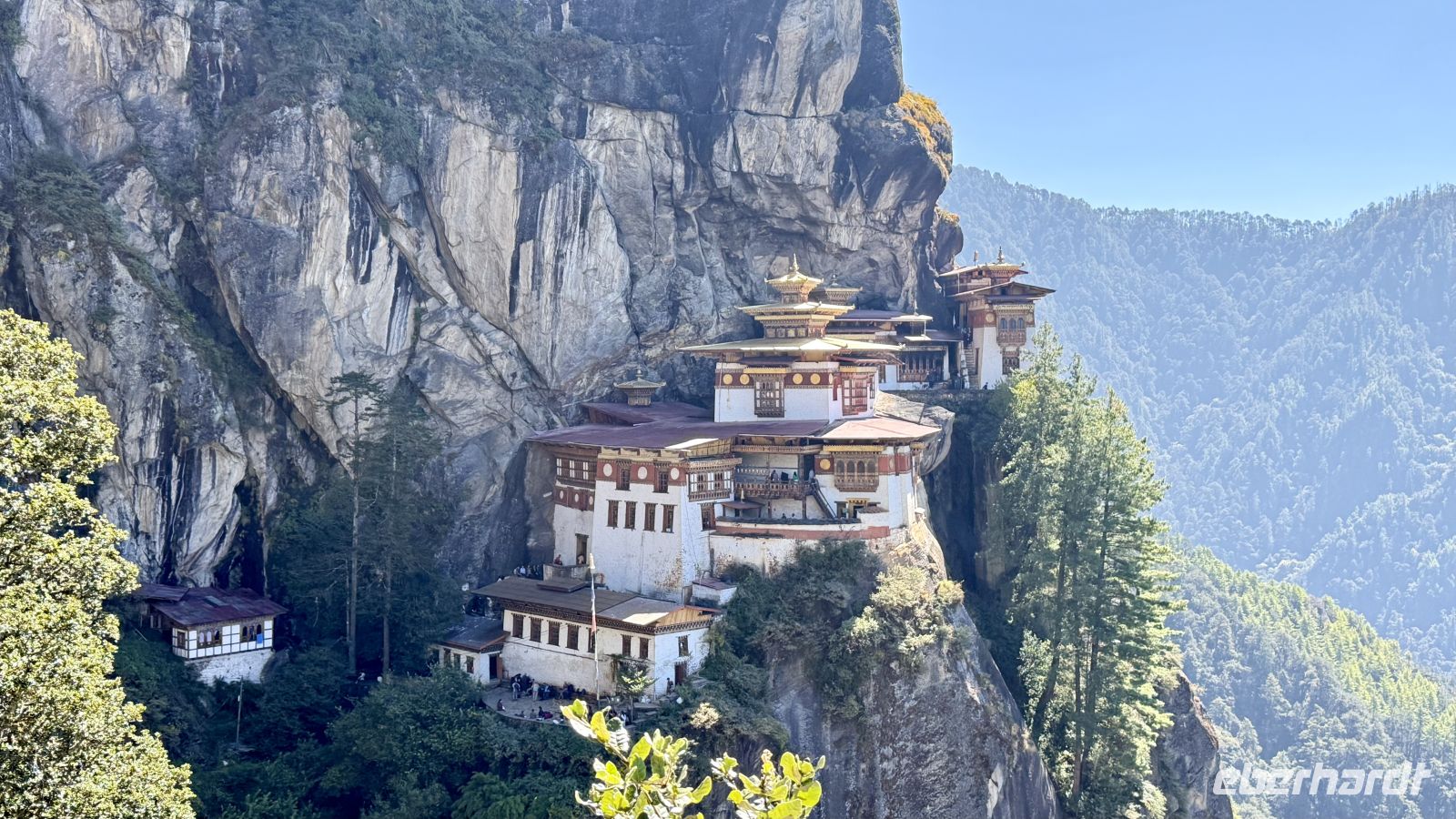 Der Aufstieg zum Kloster zählt zu den unvergesslichsten Erlebnissen einer Bhutan-Reise. Der Weg führt in stetigem Anstieg durch Pinienwälder, an Gebetsfahnen vorbei und über schmale Pfade, die immer wieder atemberaubende Ausblicke auf das Tal und das Kloster selbst bieten. Der Hin- und Rückweg dauert insgesamt etwa 4 bis 6 Stunden, je nach Kondition und Pausen. Die ersten 300 Höhenmeter gelten als besonders anstrengend, danach wird der Pfad etwas sanfter.