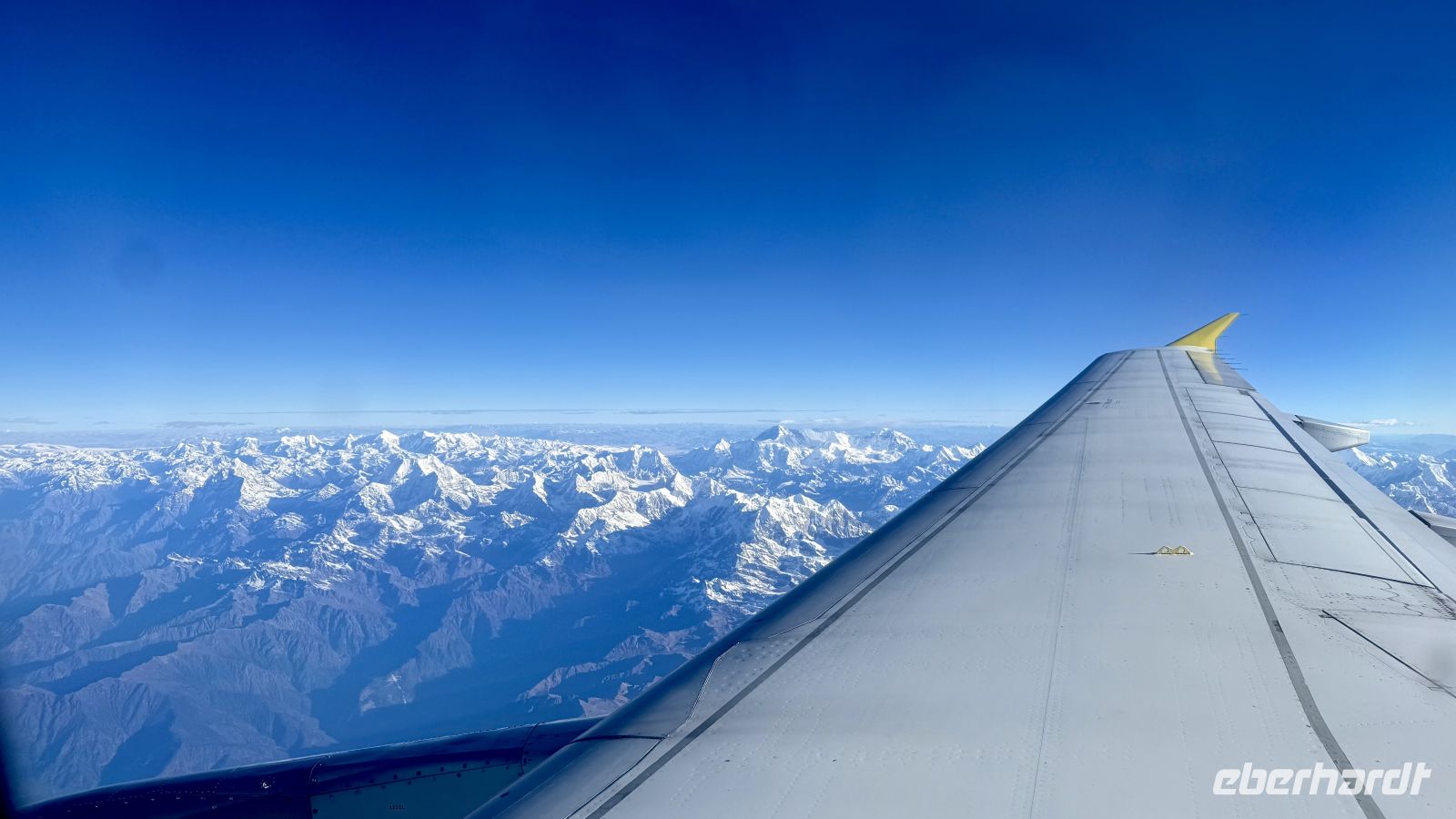 Der Flug selbst war ein echtes Erlebnis! Schon kurz nach dem Start bot sich uns ein atemberaubender Blick auf die schneebedeckten Gipfel des Himalaya-Gebirges. Besonders beeindruckend war der Moment, als wir in der Ferne den Mount Everest erblickten – den höchsten Berg der Erde.
