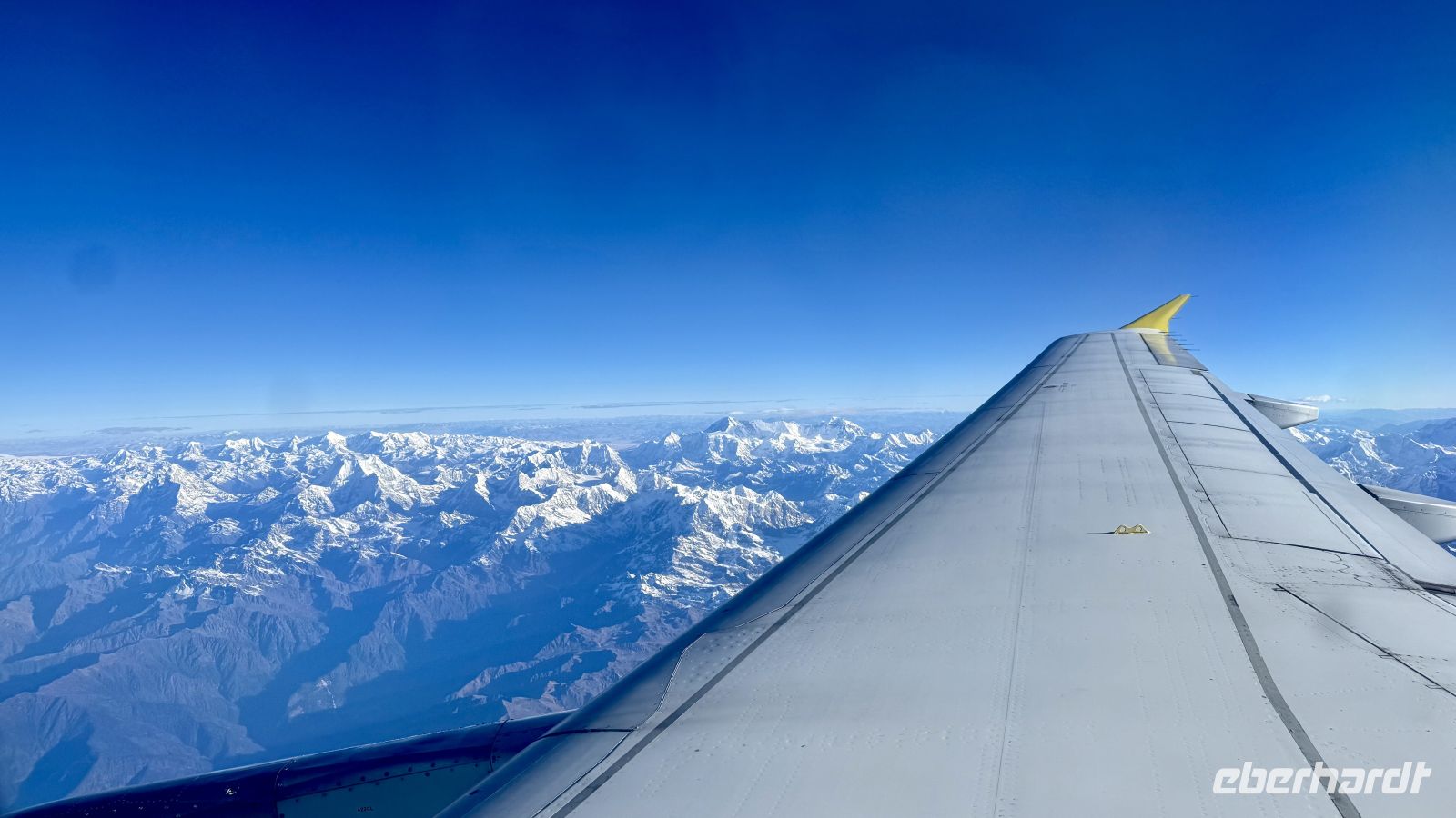 Heute hieß es Abschied nehmen. Beim Start konnten wir noch einmal einen großartigen Blick auf das majestätische Himalaya-Gebirge genießen – die schneebedeckten Gipfel leuchteten im Sonnenlicht und schienen sich von uns zu verabschieden. Im Flugzeug machten wir es uns gemütlich, tauschten Erinnerungen aus und ließen die vergangenen Tage Revue passieren.