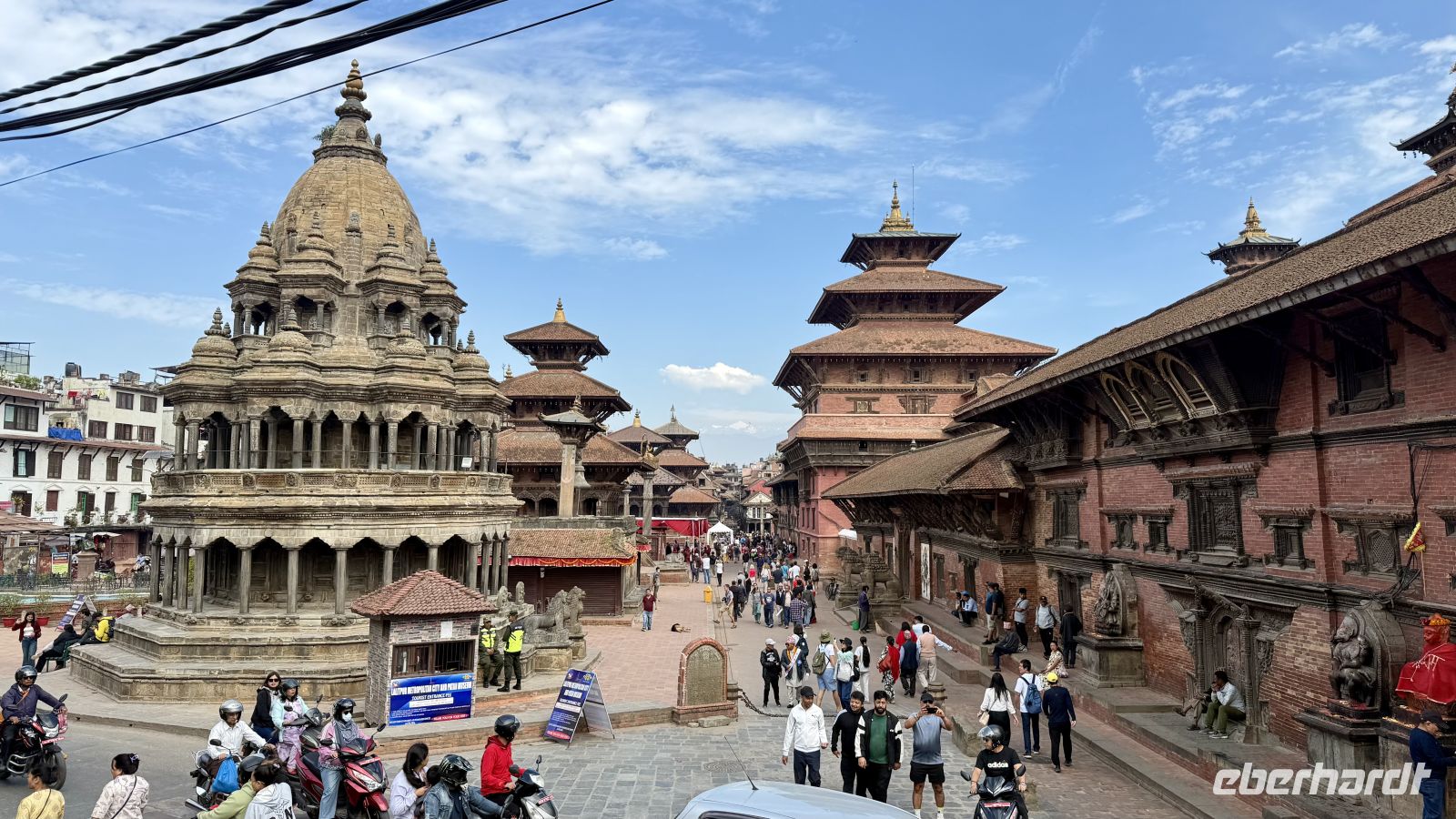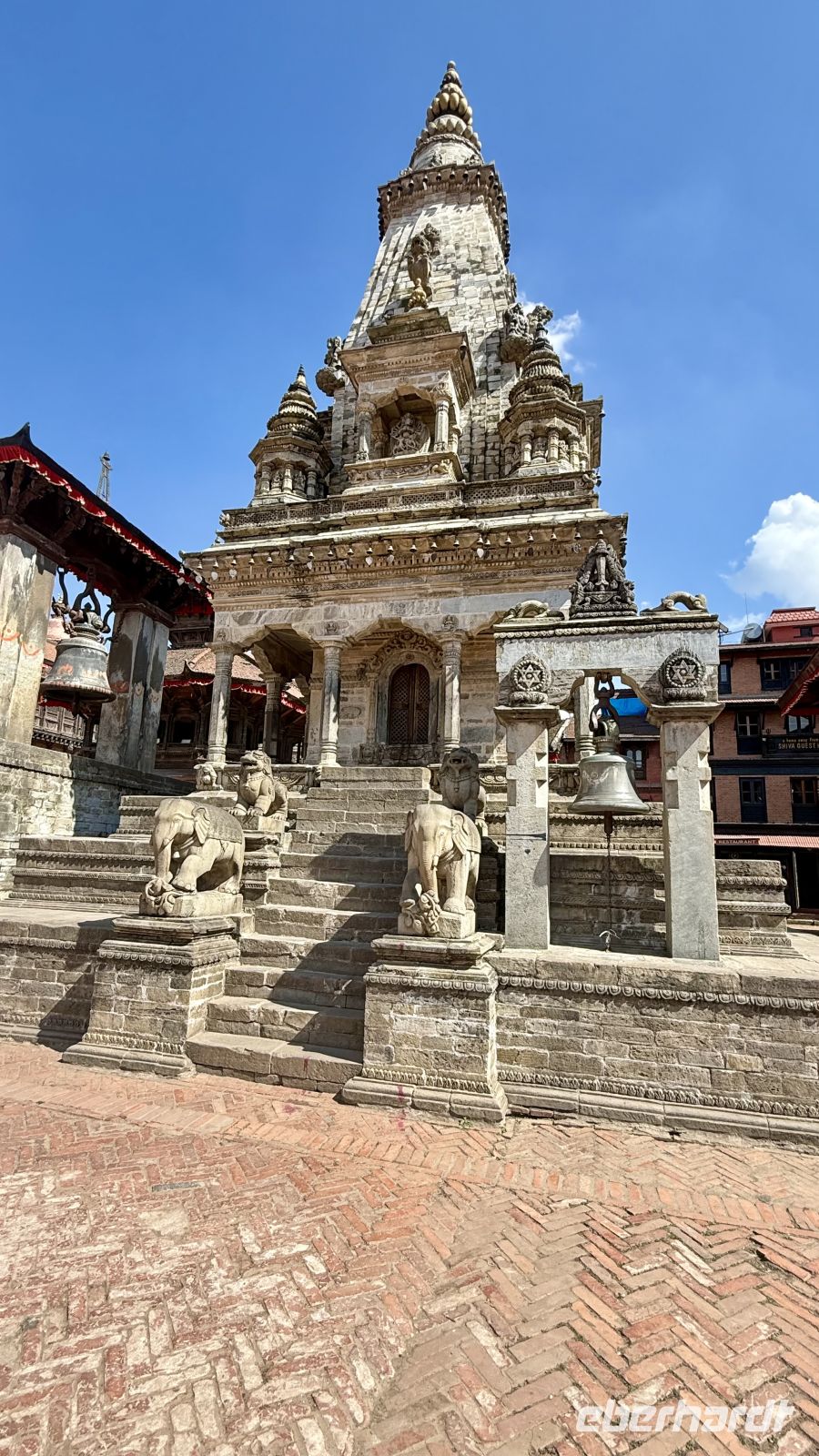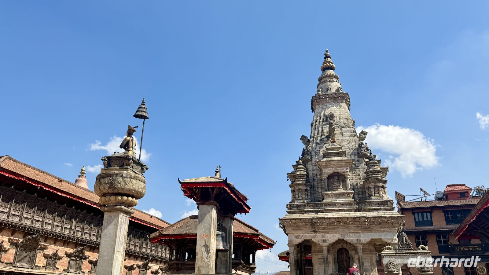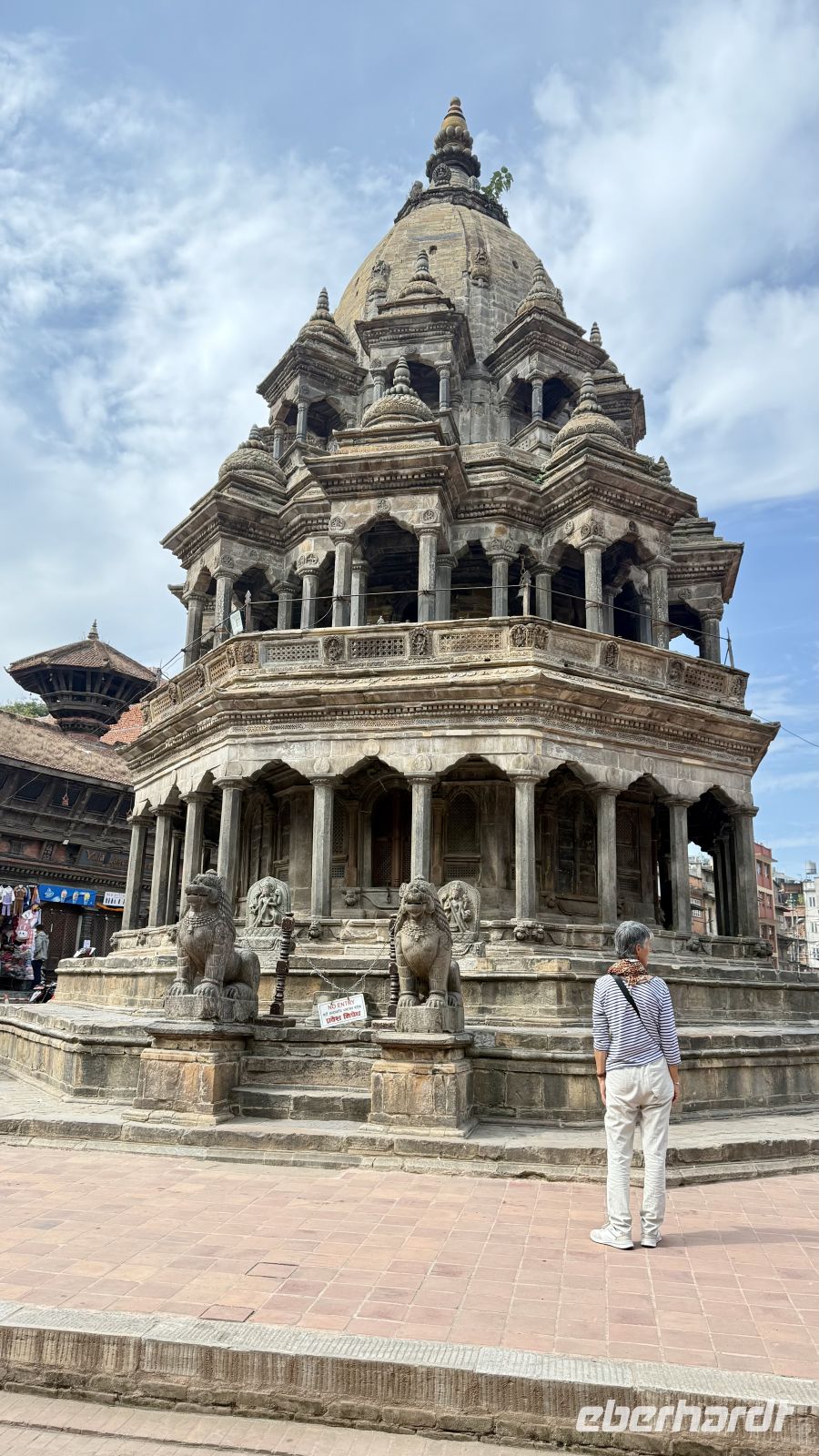 Unser erster Halt war der beeindruckende Durbar Square von Patan, ein UNESCO-Weltkulturerbe. Der Platz ist umgeben von prachtvollen Tempeln, alten Königspalästen und filigran verzierten Pagoden. Besonders faszinierend war der Königspalast von Patan, der durch seine kunstvollen Fenster und Holzschnitzereien beeindruckte. In der Mitte des Platzes steht der berühmte Krishna-Tempel, der im 17. Jahrhundert aus grauem Stein erbaut wurde – ein seltenes Material für nepalesische Tempel.