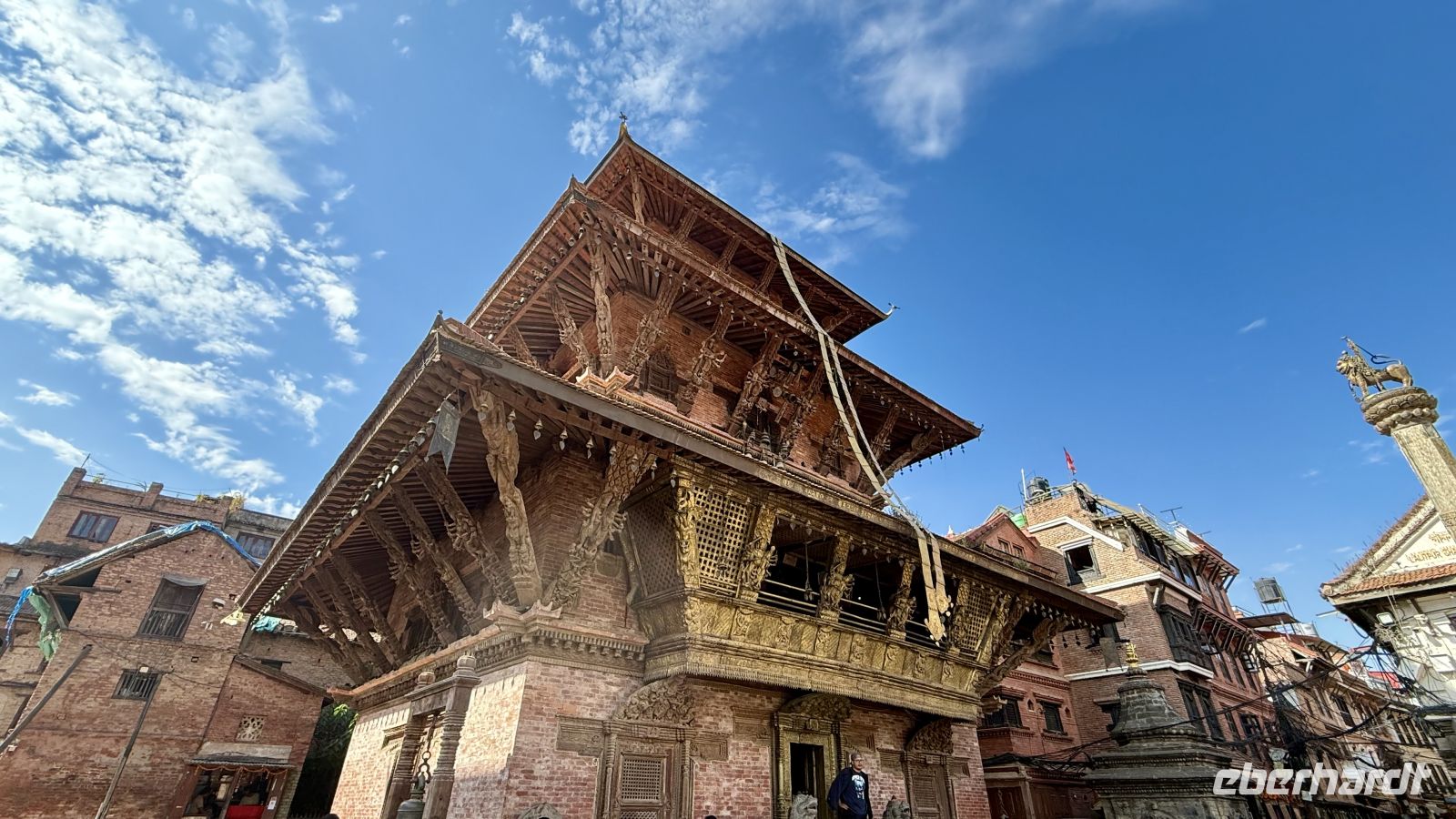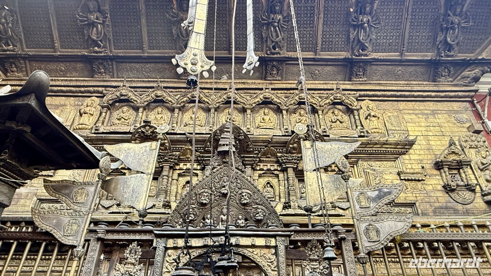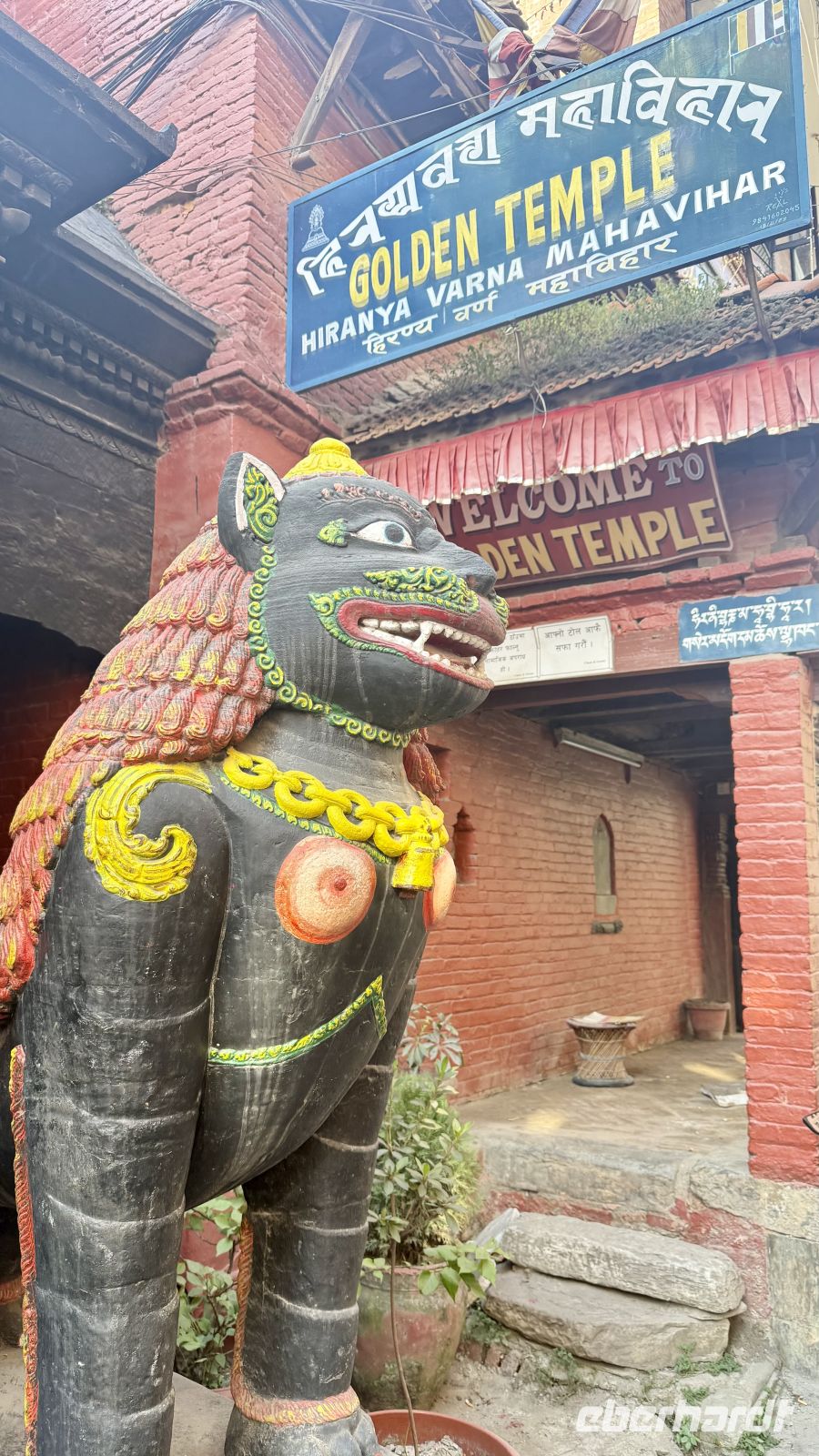 Im Anschluss besichtigten wir den Goldenen Tempel, auch Hiranya Varna Mahavihar genannt. Dieses buddhistische Kloster stammt aus dem 12. Jahrhundert und ist berühmt für seine vergoldeten Fassaden, reich verzierten Statuen und kunstvollen Schnitzereien. Schon beim Betreten des Innenhofs spürten wir die besondere Atmosphäre – das leise Murmeln der Mönche, der Duft von Räucherwerk und das warme Glitzern der goldenen Ornamente im Sonnenlicht machten diesen Ort zu etwas ganz Besonderem.