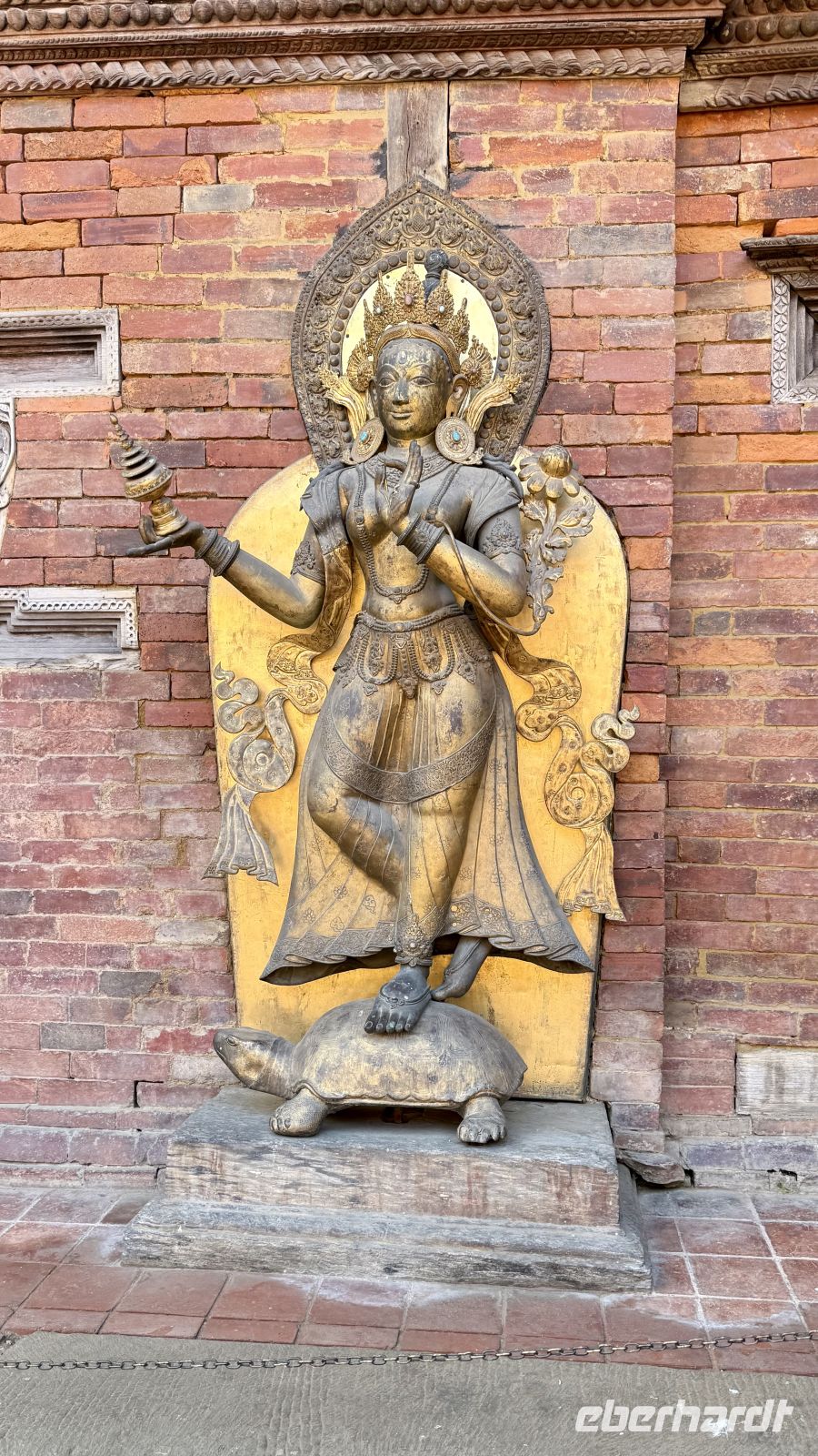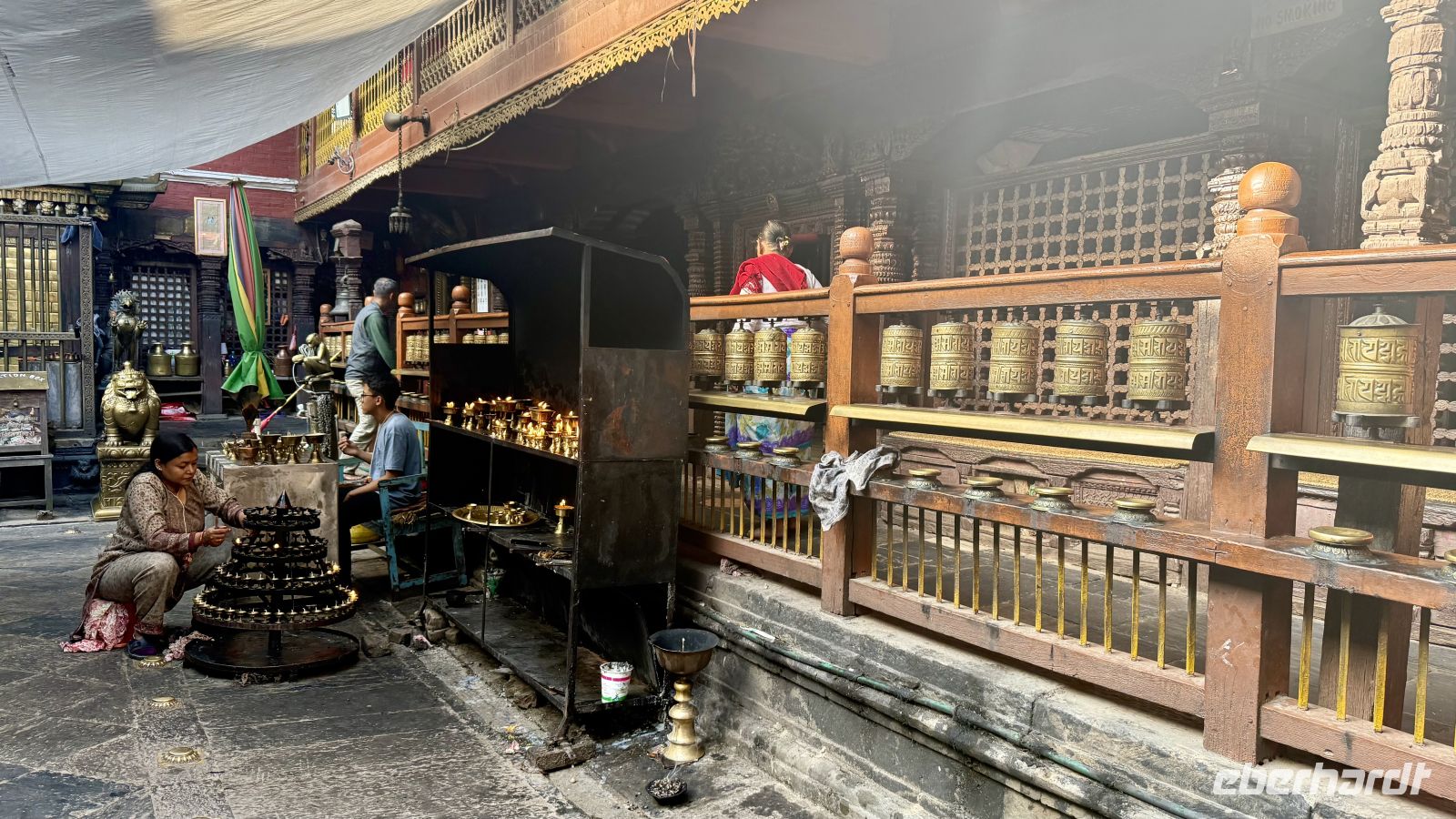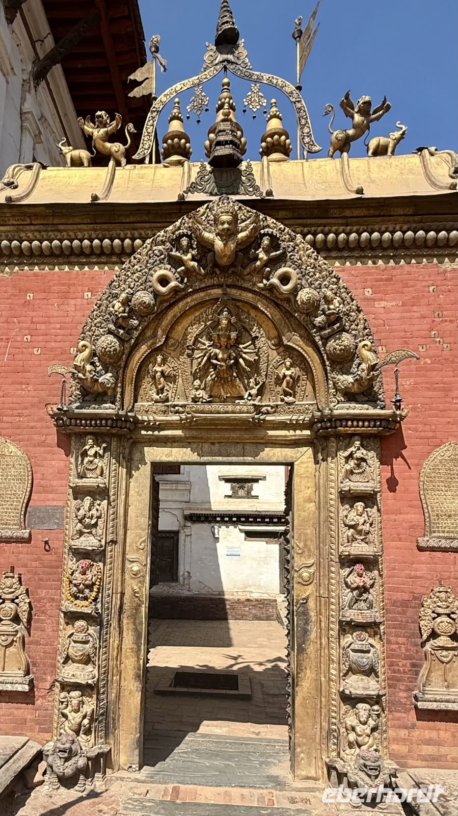 Im Anschluss besichtigten wir den Goldenen Tempel, auch Hiranya Varna Mahavihar genannt. Dieses buddhistische Kloster stammt aus dem 12. Jahrhundert und ist berühmt für seine vergoldeten Fassaden, reich verzierten Statuen und kunstvollen Schnitzereien. Schon beim Betreten des Innenhofs spürten wir die besondere Atmosphäre – das leise Murmeln der Mönche, der Duft von Räucherwerk und das warme Glitzern der goldenen Ornamente im Sonnenlicht machten diesen Ort zu etwas ganz Besonderem.