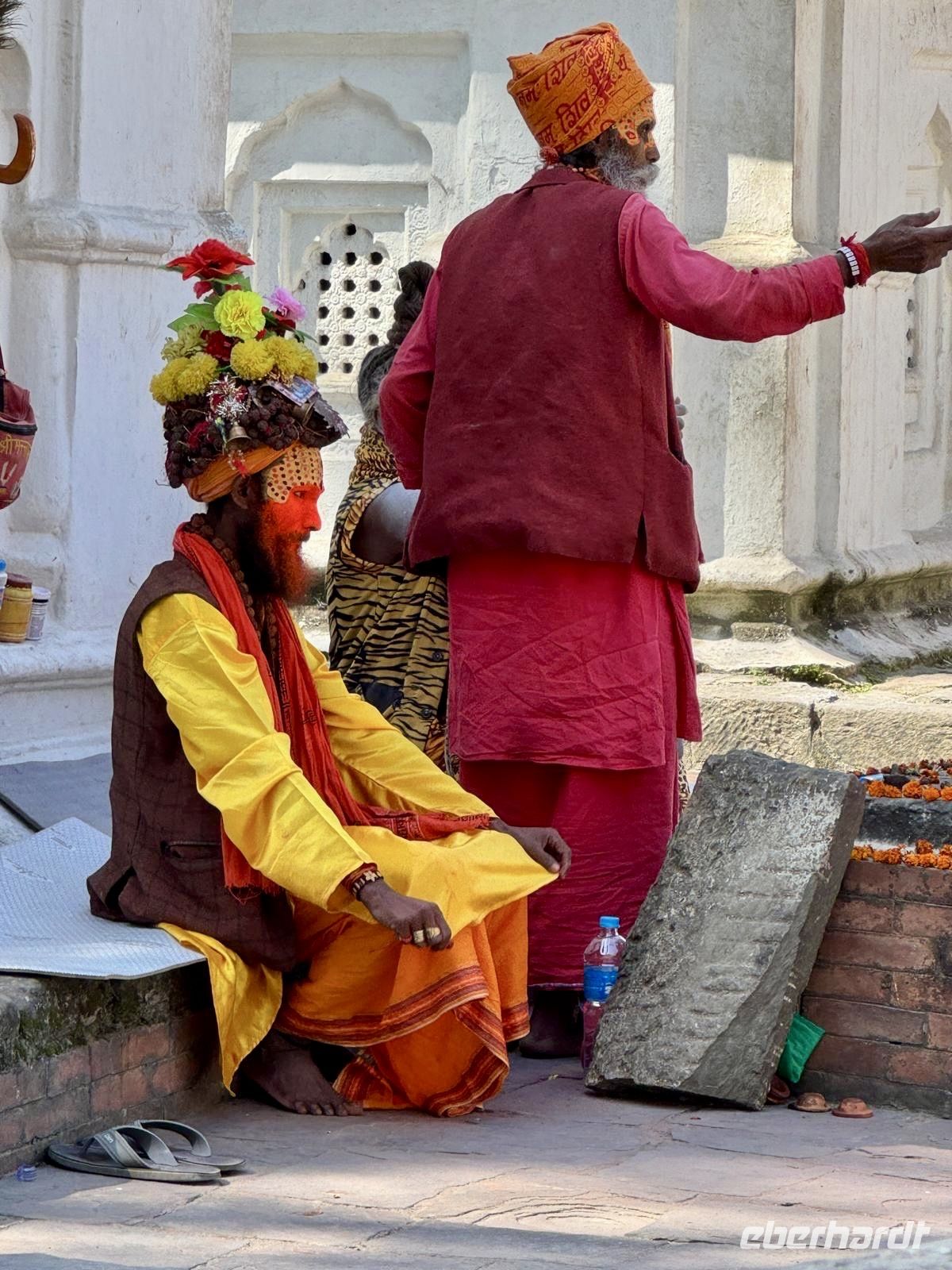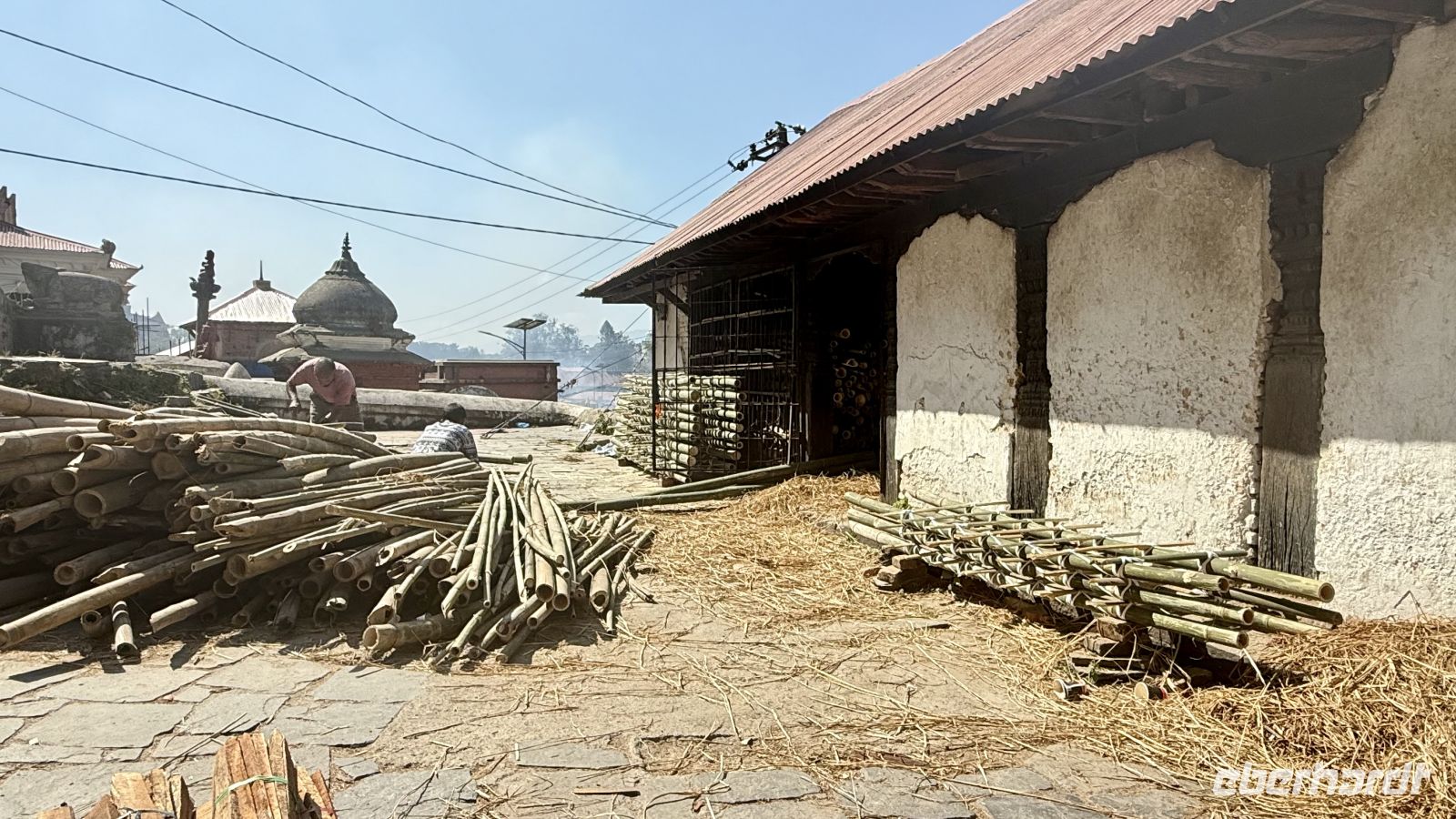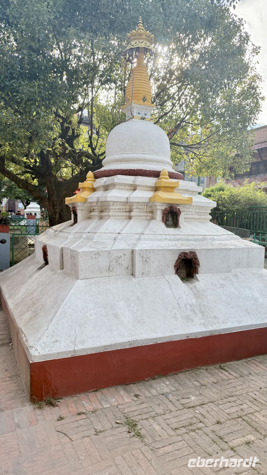 Unser erster Halt war die bedeutende Tempelanlage Pashupatinath, eine der heiligsten Stätten des Hinduismus. Sie liegt am Ufer des Bagmati-Flusses, der für Hindus eine ähnliche Bedeutung hat wie der Ganges in Indien. Pashupatinath ist dem Gott Shiva in seiner Erscheinungsform als „Herr der Tiere“ geweiht. Der weitläufige Tempelkomplex umfasst zahlreiche Schreine, kleinere Tempel, Aschramas und ghats (Steintreppen), an denen die Verbrennungszeremonien stattfinden. Für uns war es ein intensives Erlebnis – einerseits beeindruckend, die Rituale und die tiefe Religiosität der Menschen zu sehen, andererseits auch bewegend und ungewohnt, den Tod so offen und würdevoll in das Leben integriert zu erleben.