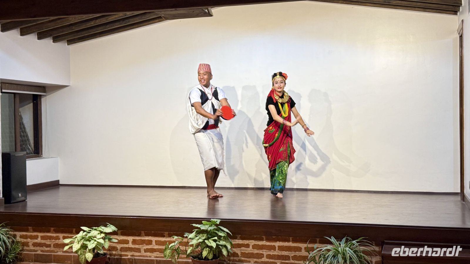 Am Abend erwartete uns noch ein besonderes Highlight: ein traditionelles nepalesisches Abendessen mit Tanzshow. In farbenfrohen Trachten führten die Tänzerinnen und Tänzer verschiedene regionale Tänze auf. Es war ein fröhlicher und lebendiger Abschluss dieses erlebnisreichen Tages, an dem wir die kulturelle Vielfalt Nepals zum ersten Mal hautnah erleben durften.
