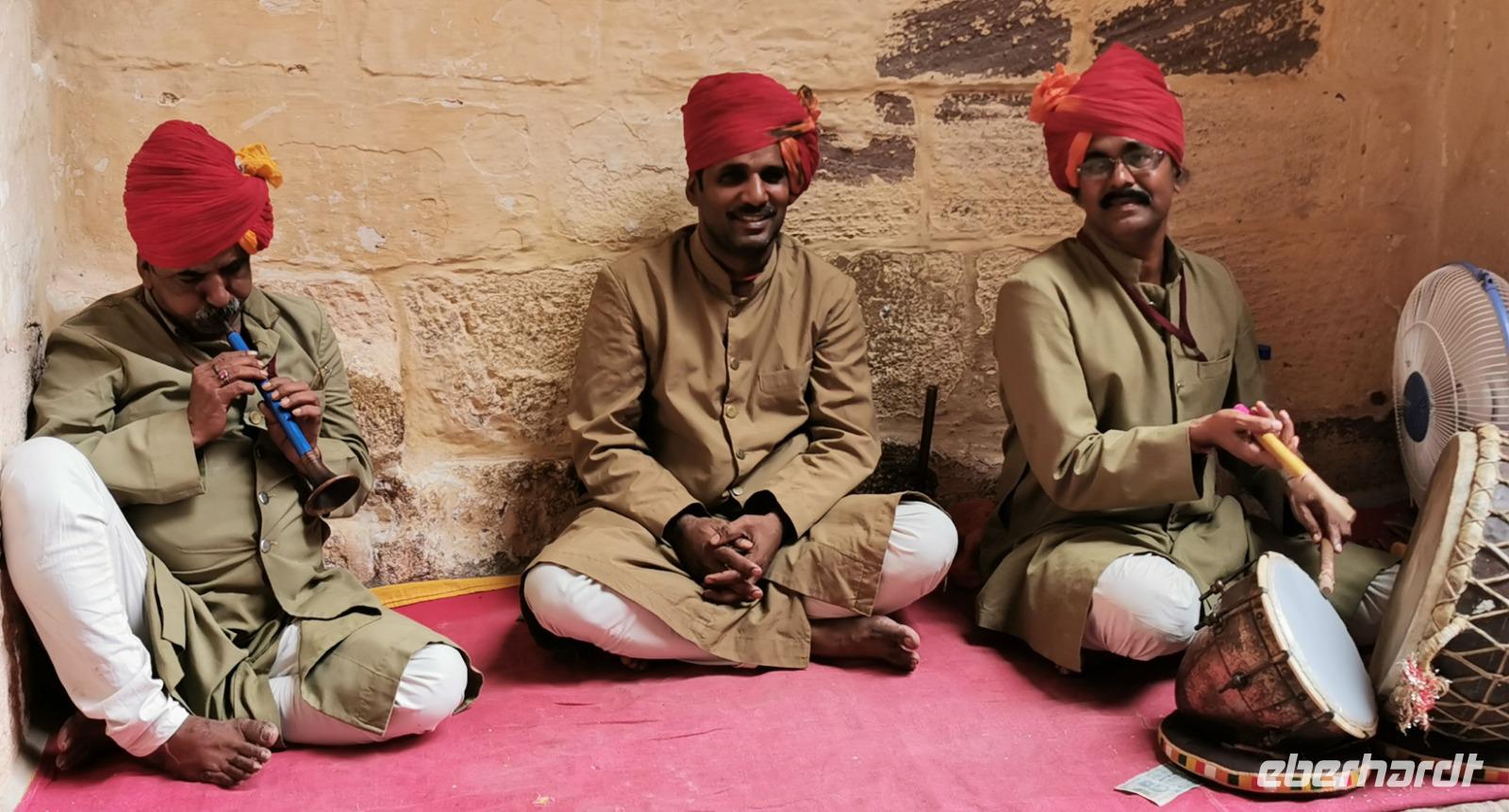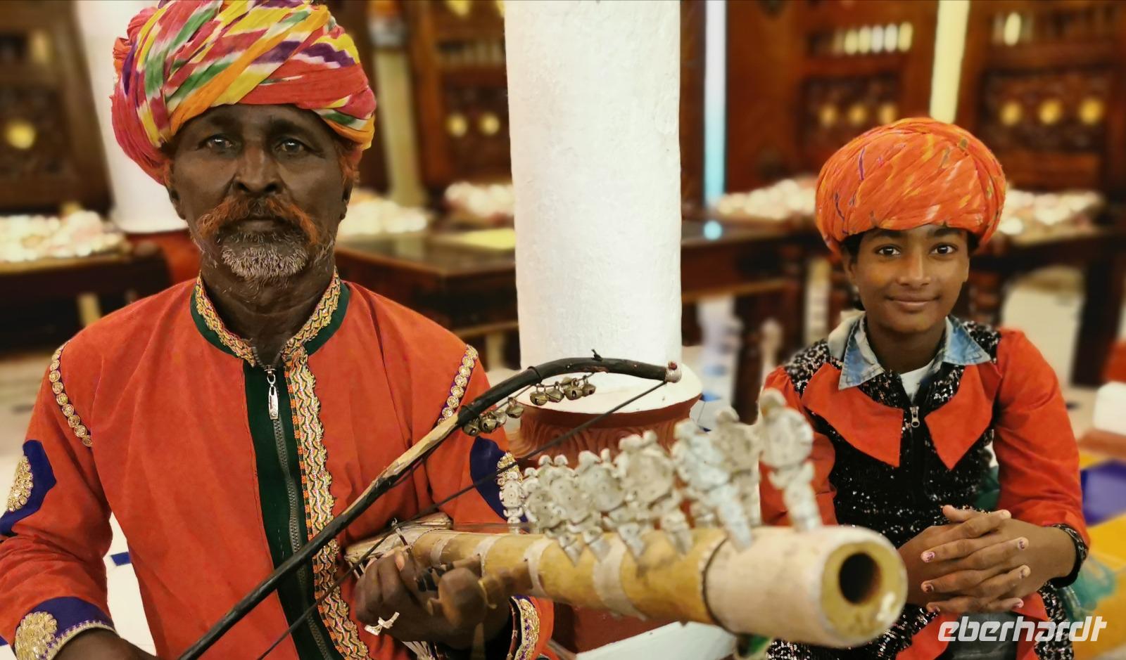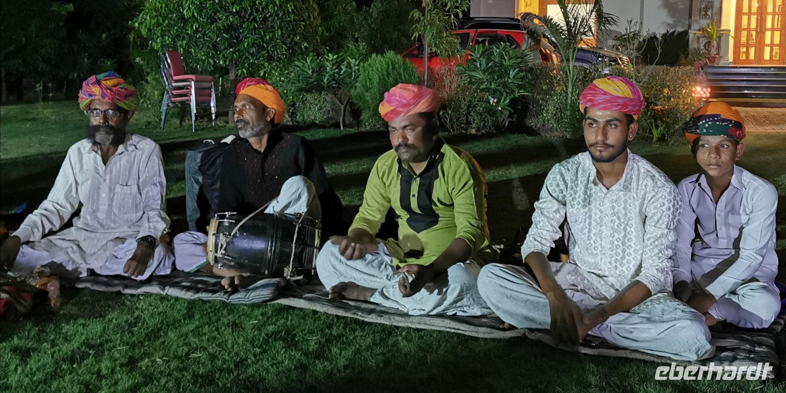 Vor dem Abendessen hatten wir die Möglichkeit, einer kleinen musikalischen Darbietung beizuwohnen. Ein Feuerspucker, fünf Musiker, Puppenspieler und ein Kamelreiter zeigten uns ihre Kunststücke.