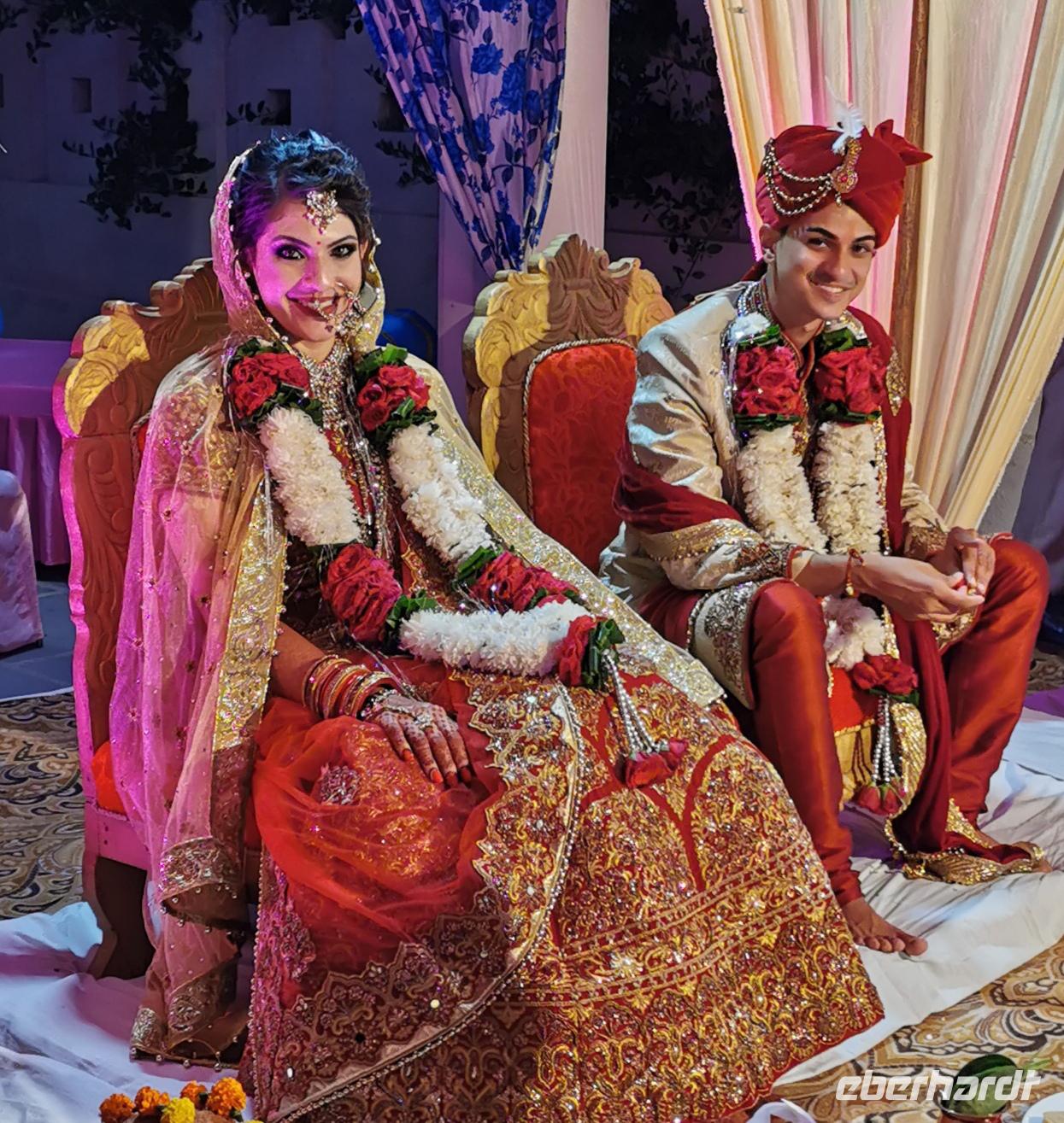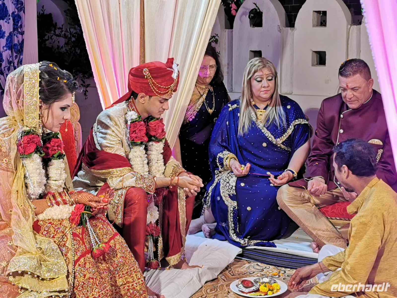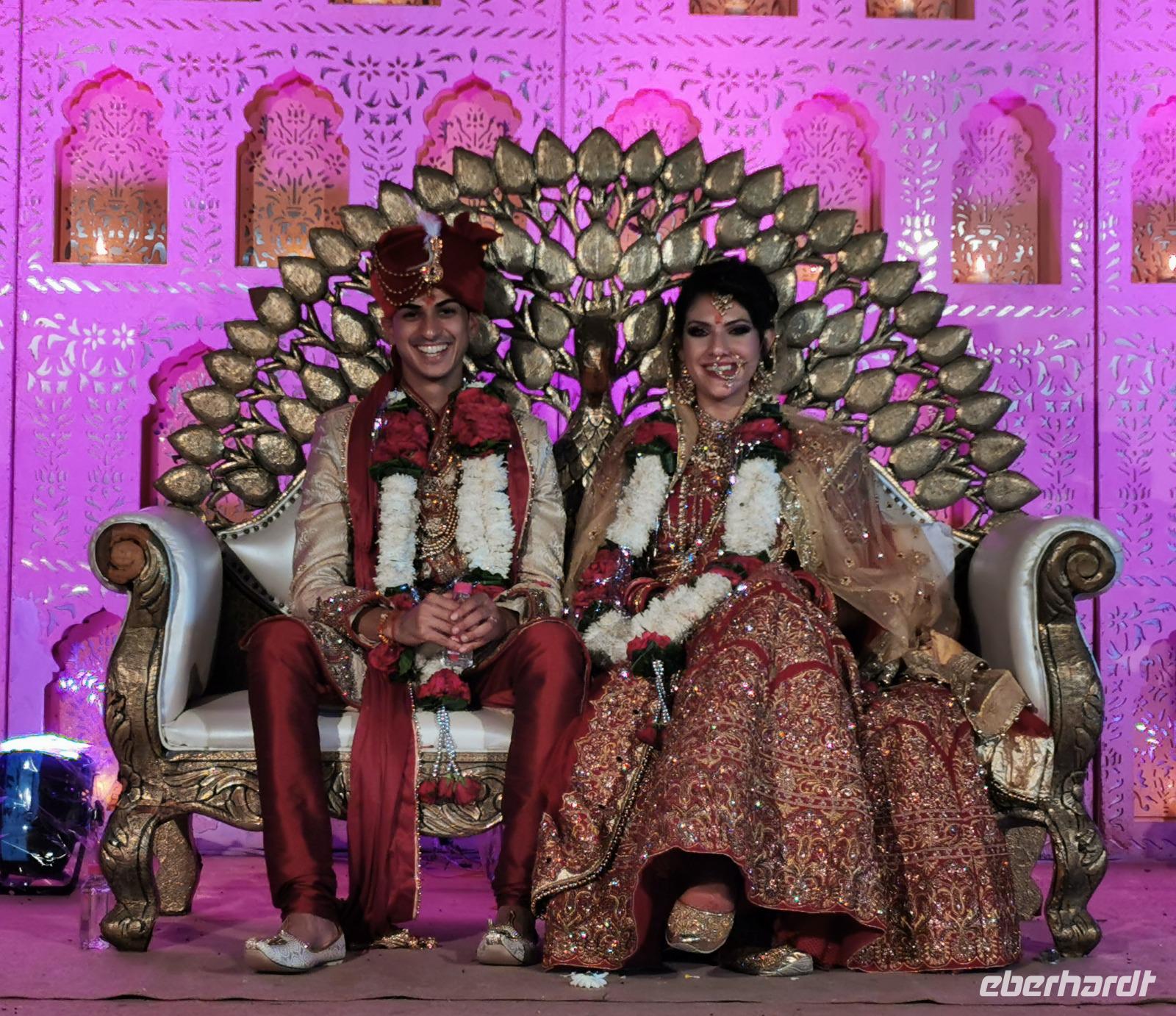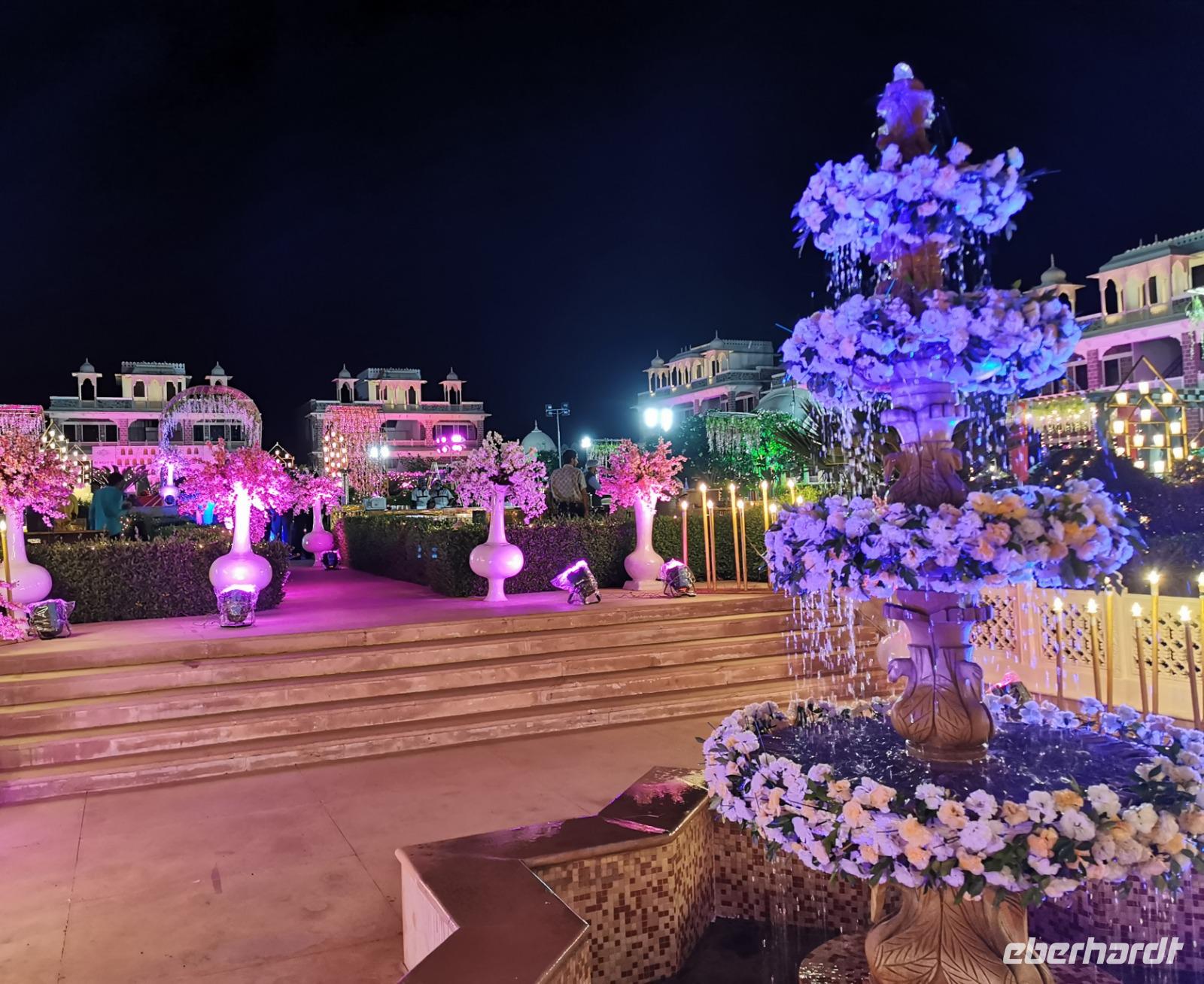 Dabei stellte unser heute zwölf Jahre alt gewordenes Geburtstagskind fest, daß es Hunger hat und so beschlossen wir, ins Hotel zu fahren. Das Bhanwar Singh Palace Hotel gleicht einer Kulisse aus einem Bollywoodfilm, noch dazu hatte sich im hinteren Teil eine Hochzeitsgesellschaft eingemietet, die die Szenerie greller und exotischer erscheinen ließ. In diesem Hotel fühlten wir uns einmal mehr wie die Maharadjas in vergangenen Jahrhunderten.