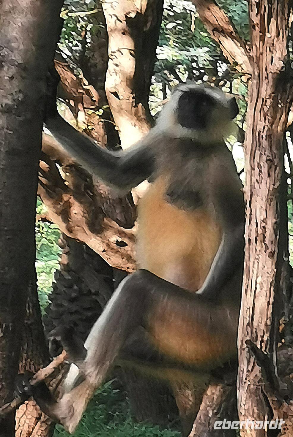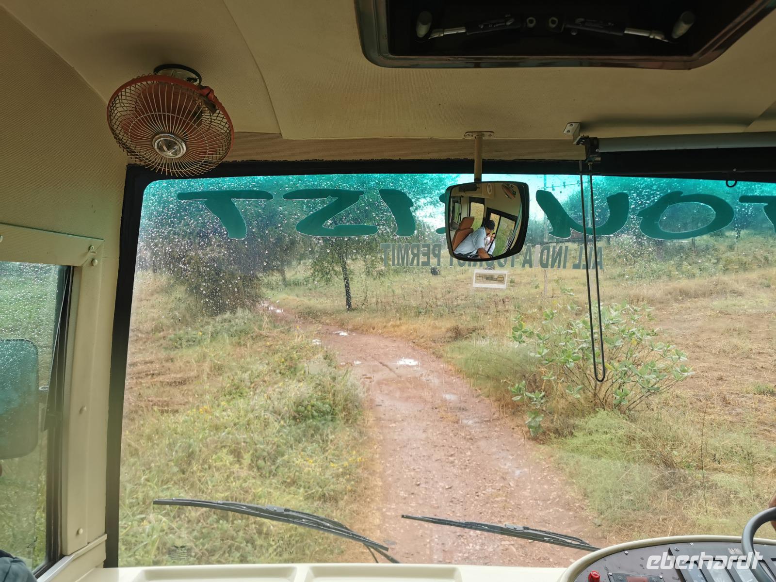 In den Bäumen sprangen Meerkatzen in weiten Sätzen von Ast zu Ast und wir schaukelten immer tiefer in den Park hinein. Er ist während der Regenzeit von Juli bis September komplett gesperrt und nach der Regenzeit sind die Wege eher tief durchfurchte Holperpisten.