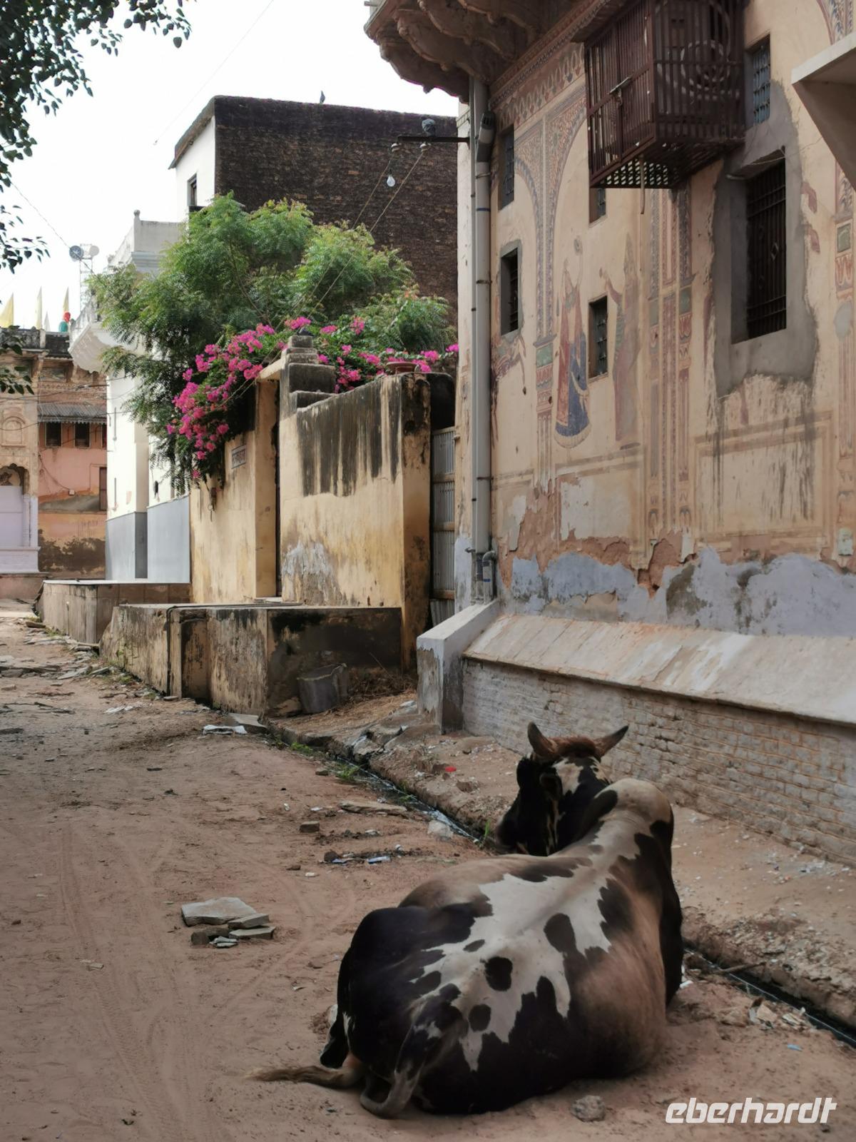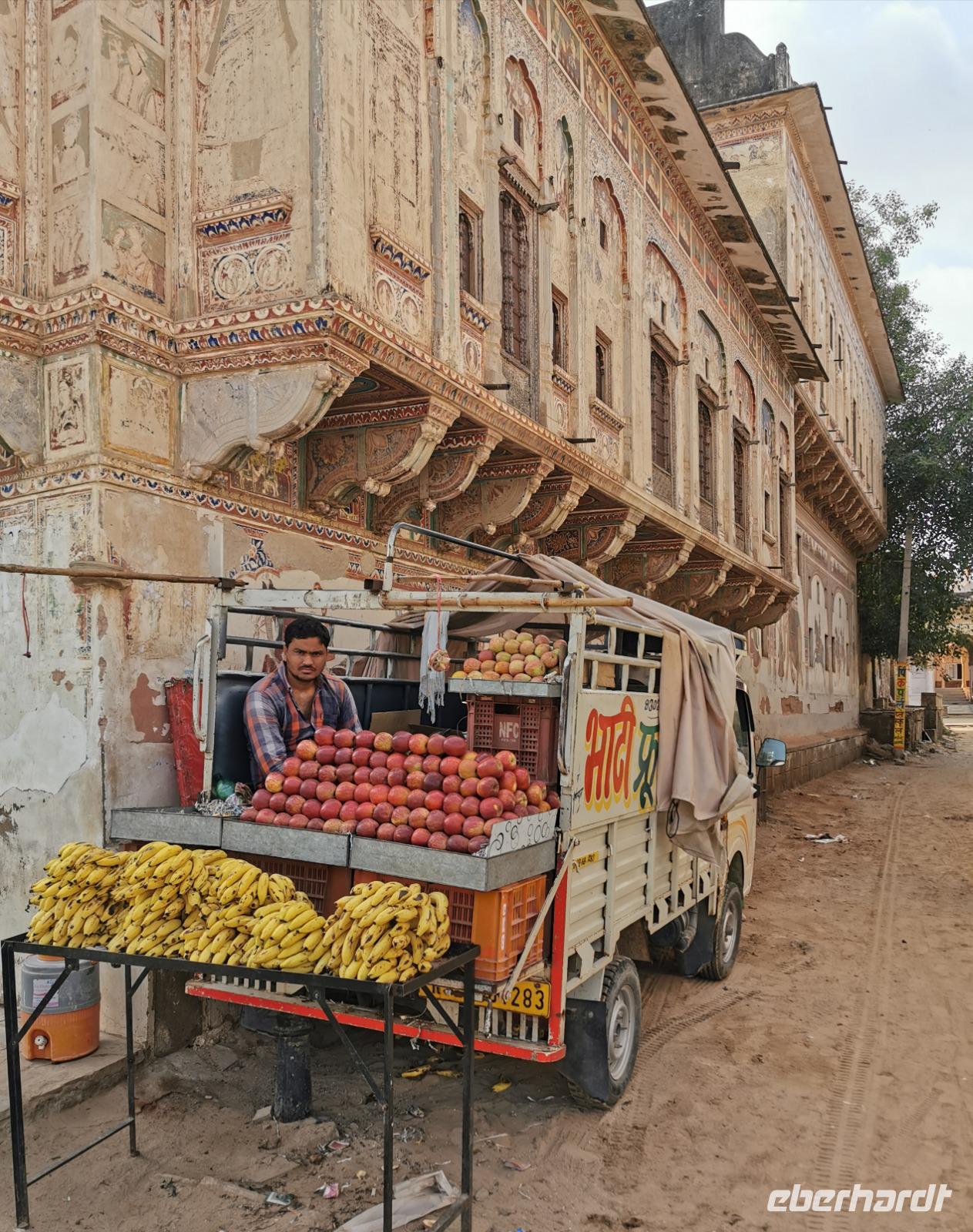 Nach einer erholsamen Nacht in unserem altehrwürdigen Haveli in Navalgarh starteten wir am frühen Morgen gleich zu Fuß in die Stadt, um noch mehr dieser alten Häuser besichtigen zu können.