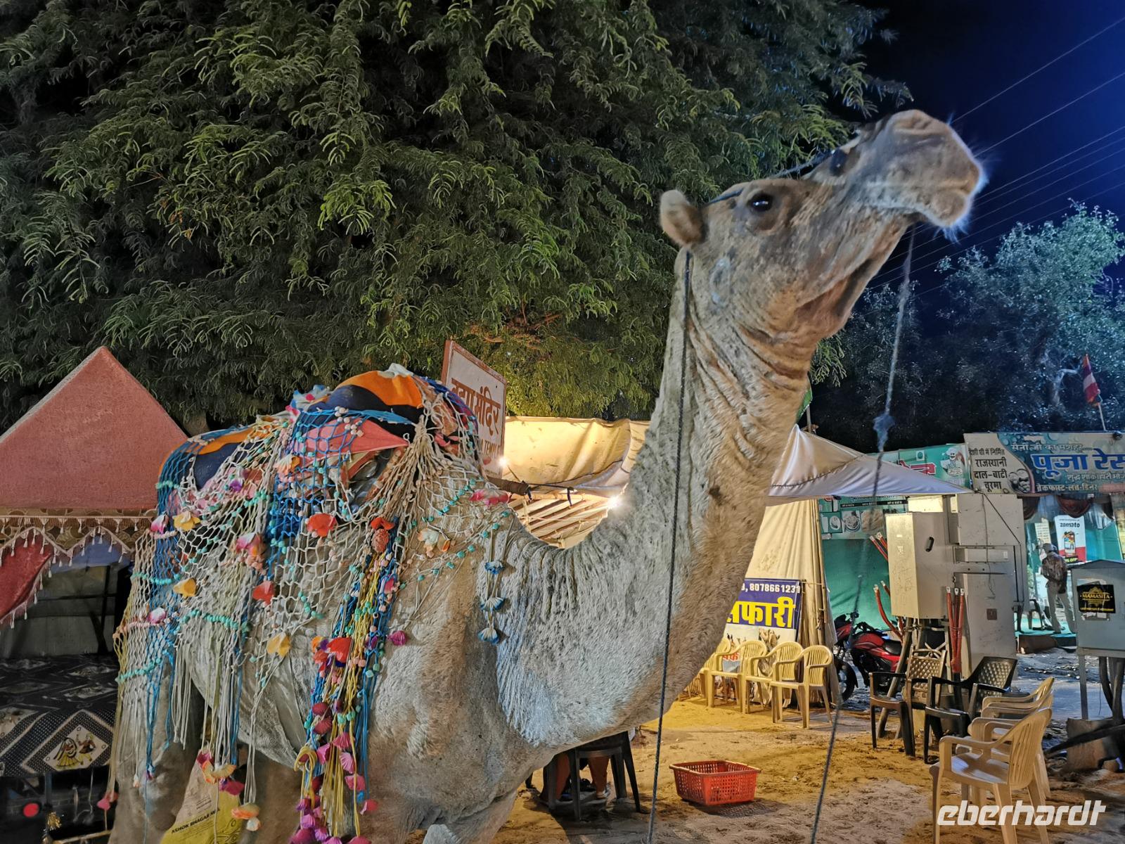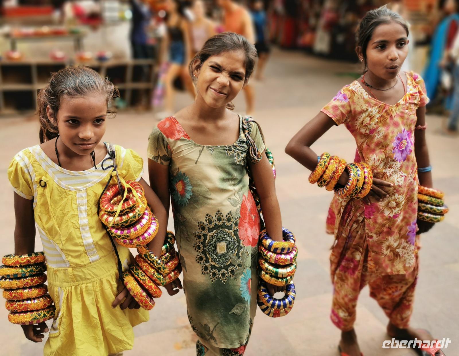 Am Nachmittag erreichten wir Pushkar und tauchten in diese alte Karawanenstadt ein, die für ihren Kamelmarkt bekannt ist. Ein Meer von Marktständen mit grellbuntem Angebot, kleine Straßenverkäuferinnen mit Ringen, hupende Mopeds, Stände mit Zuckerrohrsaft, Zitronenlimonadenverkäufer und Süßigkeitenstände überfluteten uns mit Eindrücken und wir ließen uns erstmal eine Weile im Gassengewirr treiben, um alles wahrnehmen zu können.