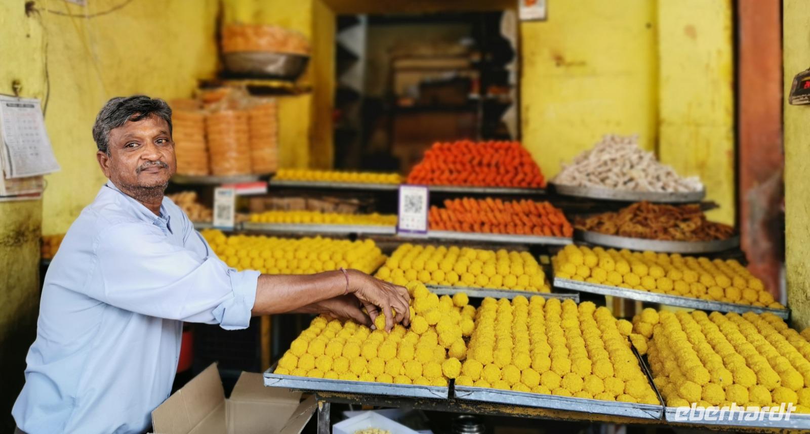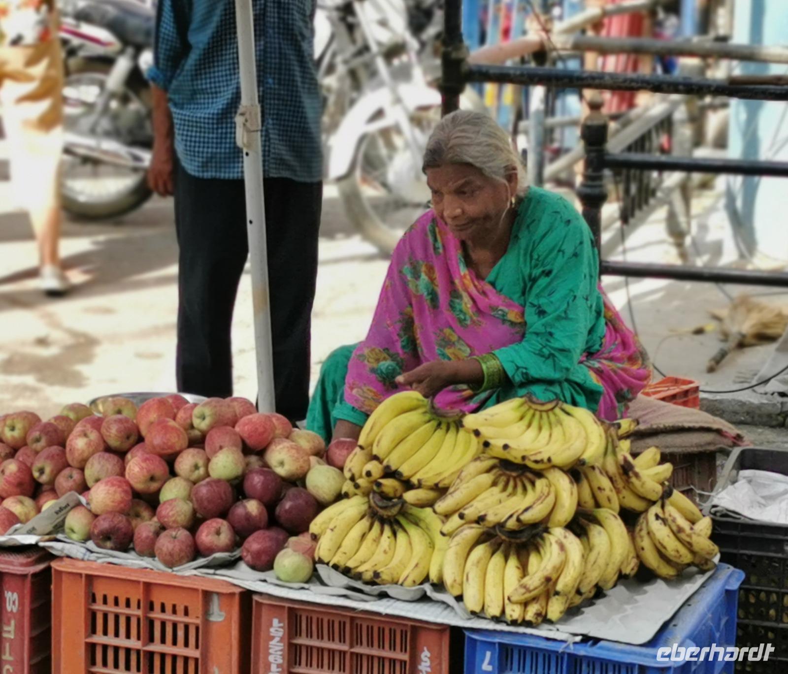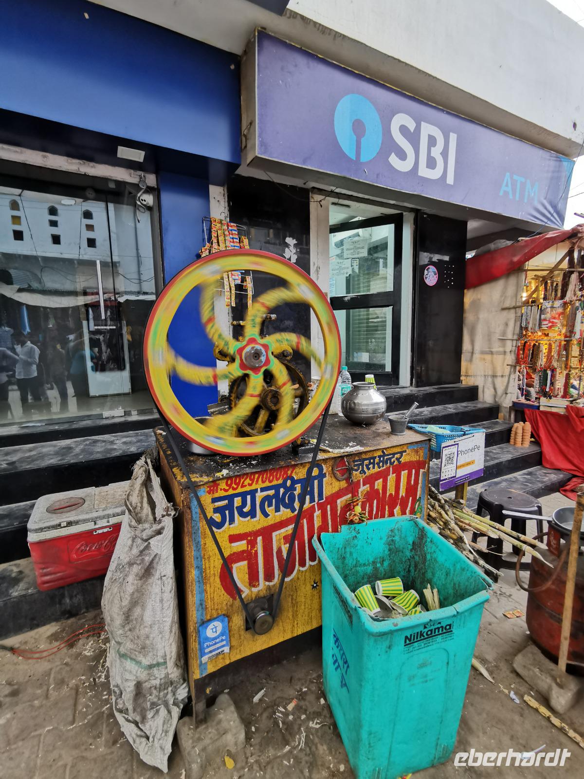 Ravinder hatte uns geschickt durch das Gewirr der Gassen gelotst an einen Stand, wo frischer Papayasaft gepresst wird und Simone spendierte eine Runde dieses erfrischenden Getränkes. Endlich ein wenig Ruhepause.