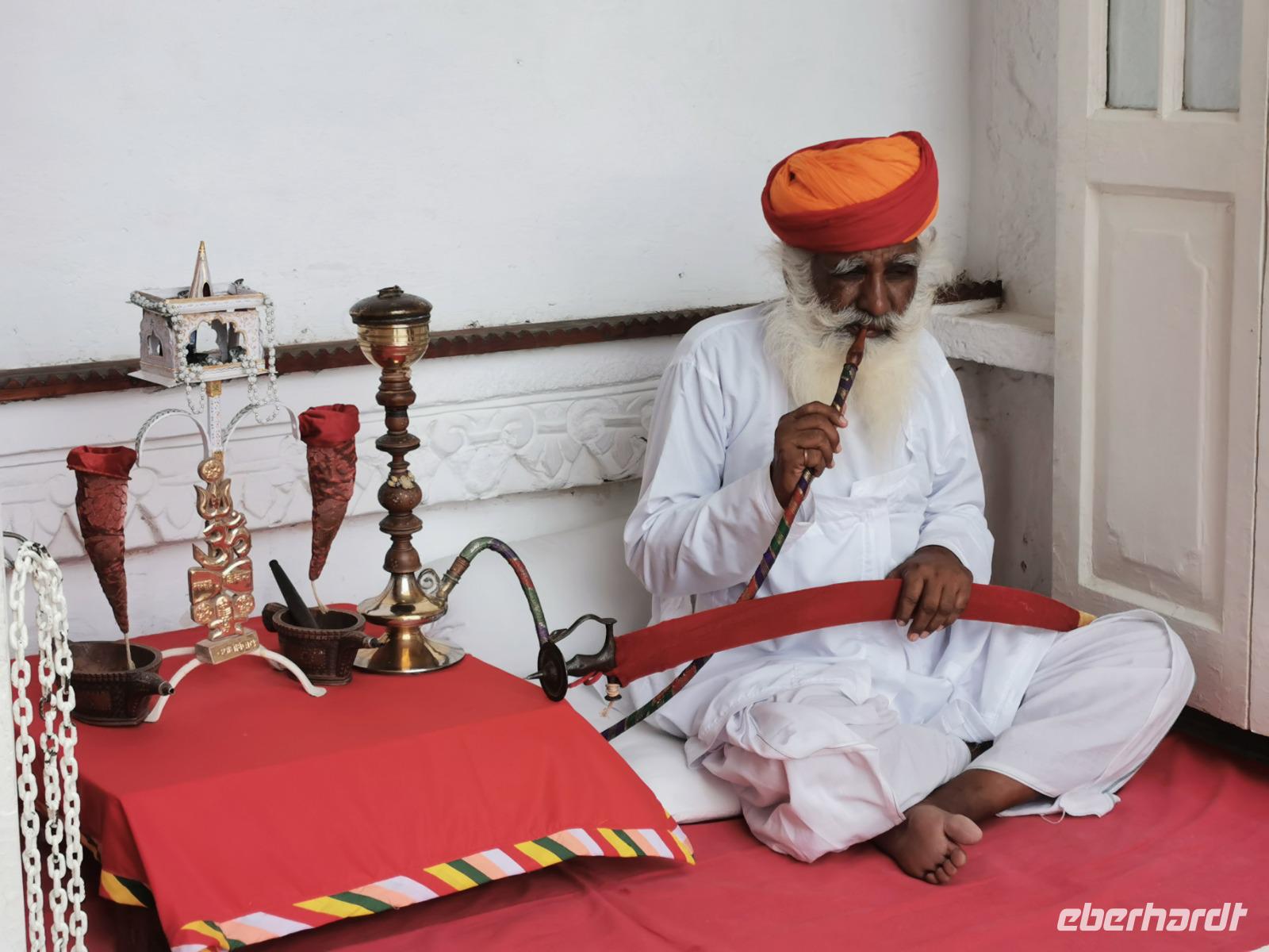 Danach hatte unser Reiseleiter Ravinder eine Puja (Gebetszeremonie) am bezaubernden See von Pushkar für uns organisiert. So beteten alle Gäste andächtig dem Hindupriester nach, mit Blick auf den See und einer Kulisse wie aus einem alten Märchenfilm. Wir bekamen den Segen in Form von roten Punkten auf die Stirn und waren ganz benommen.