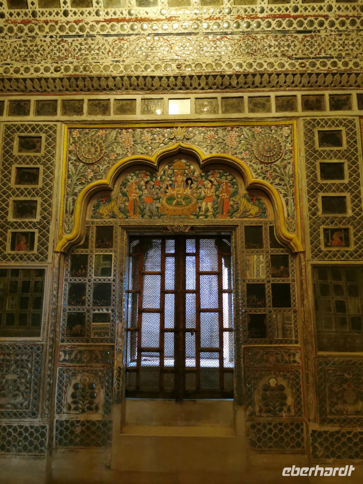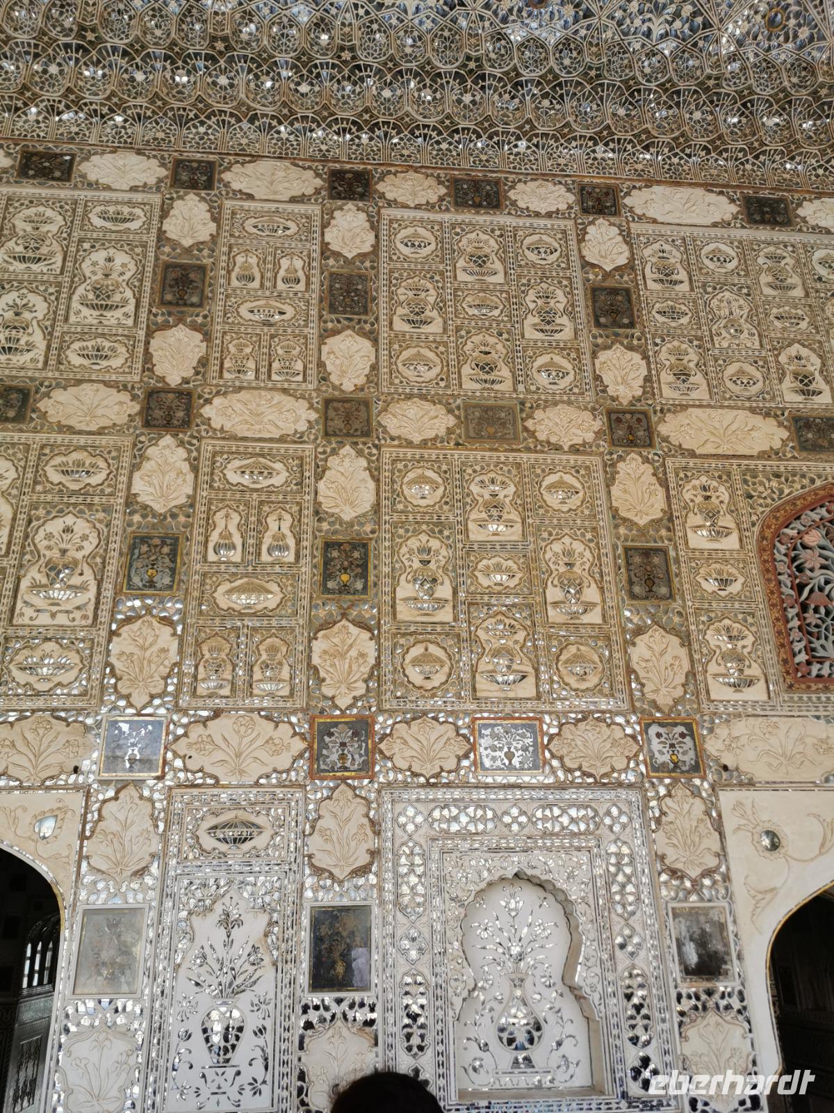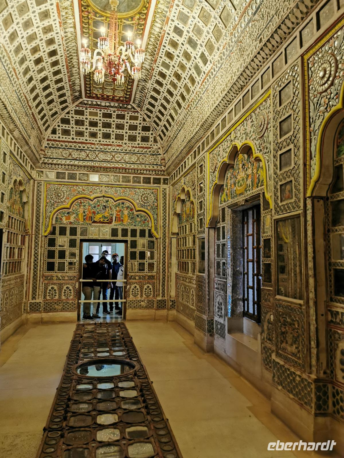 In diesem Fort waren so viele Besucher im Vorhof, daß wir den Eindruck bekamen, ganz Südindien und ganz Westeuropa hätten gerade Indienurlaub gebucht. Der eindeutige Besuchermagnet ist natürlich der Spiegelsaal mit einer Vielzahl von kleinen Spiegeln, die vom Boden bis über die Decke eine ganze Halle überziehen. Sehr beeindruckend.
