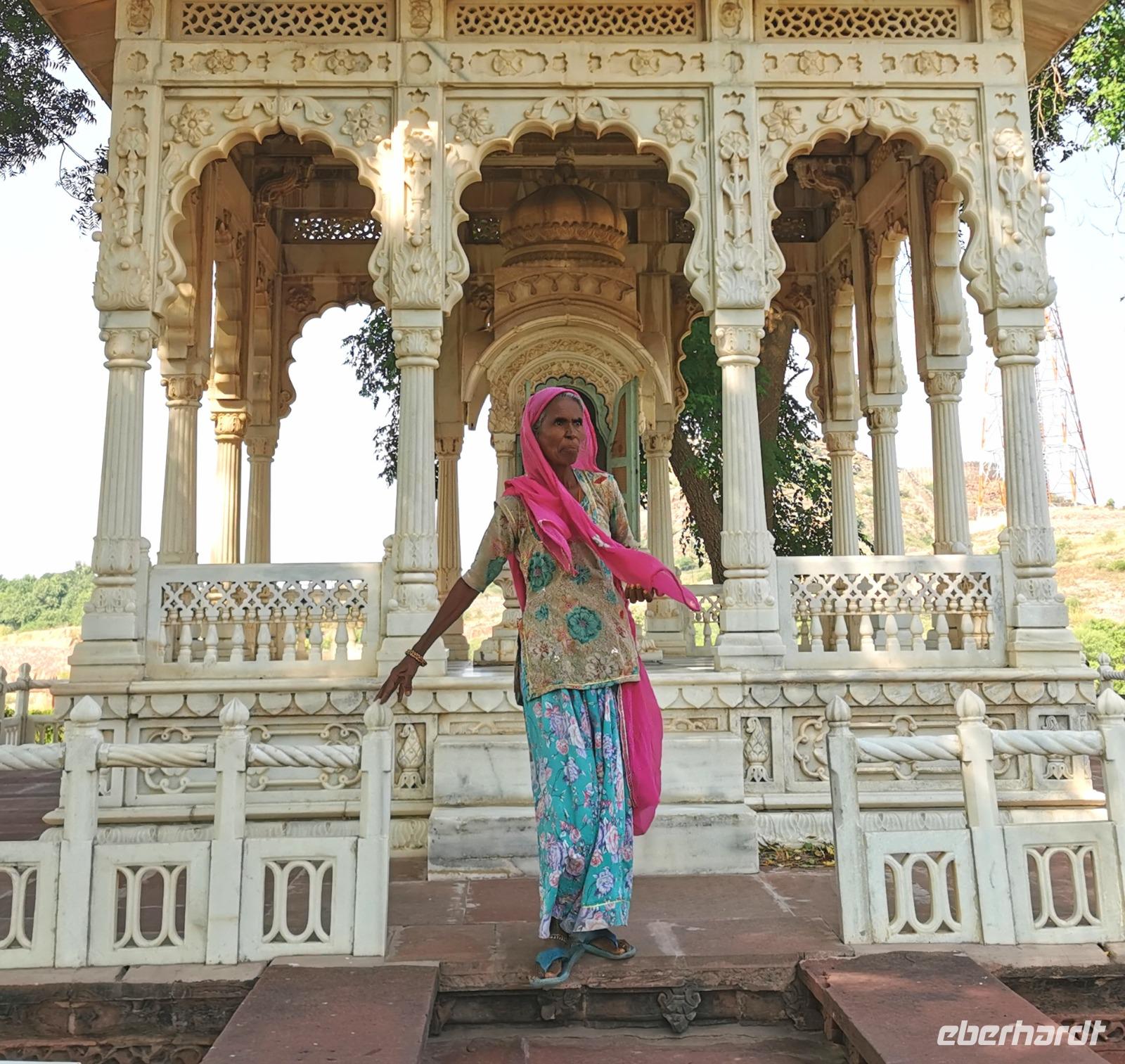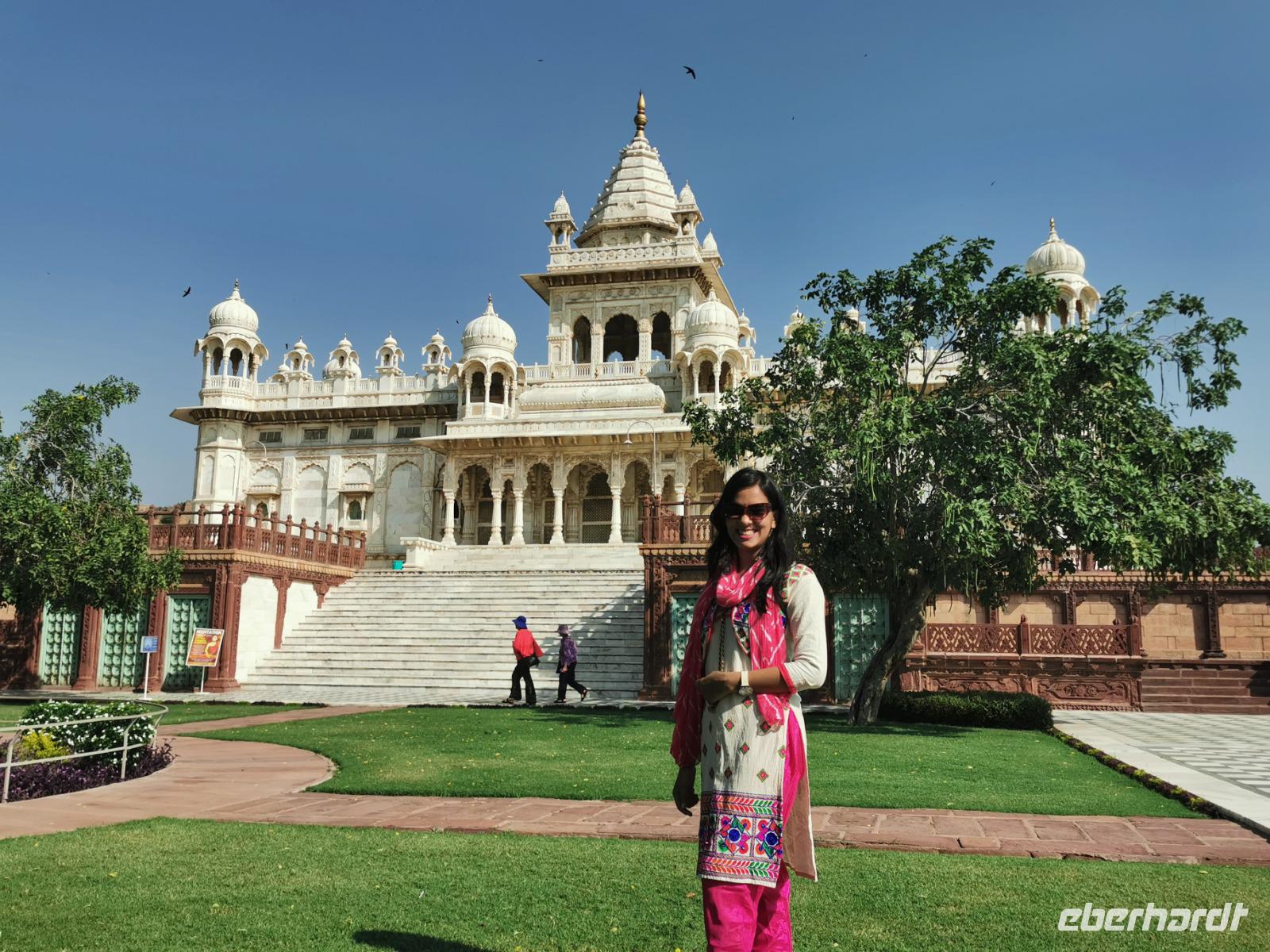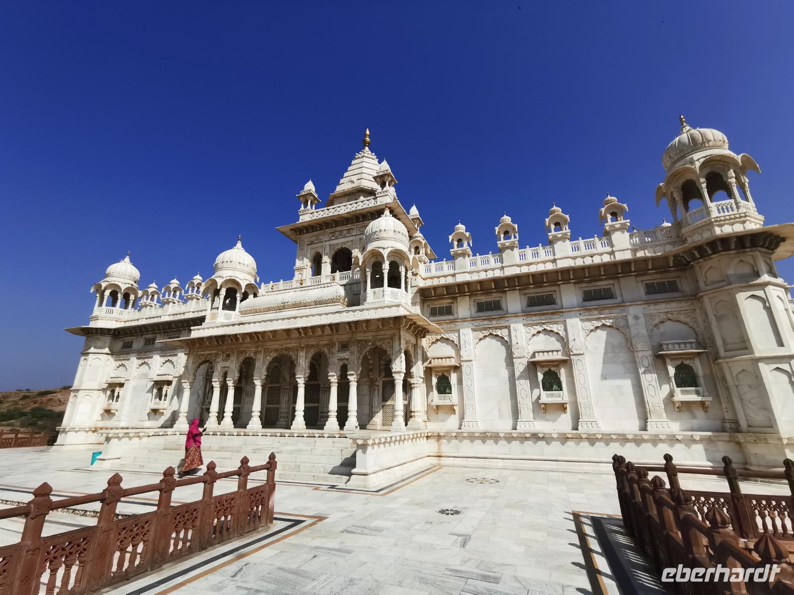 Daß wir heute erst um neun Uhr am Morgen starteten, kam uns wie Urlaub vor. Wir fuhren zum Wahrzeichen der Stadt Jodhpur, dem Jaswant Thada Mausoleum, einem Bau aus weißem Marmor, der von Sardar Singh 1899 in Erinnerung an den Maharadja Jaswant Singh II. erbaut wurde.