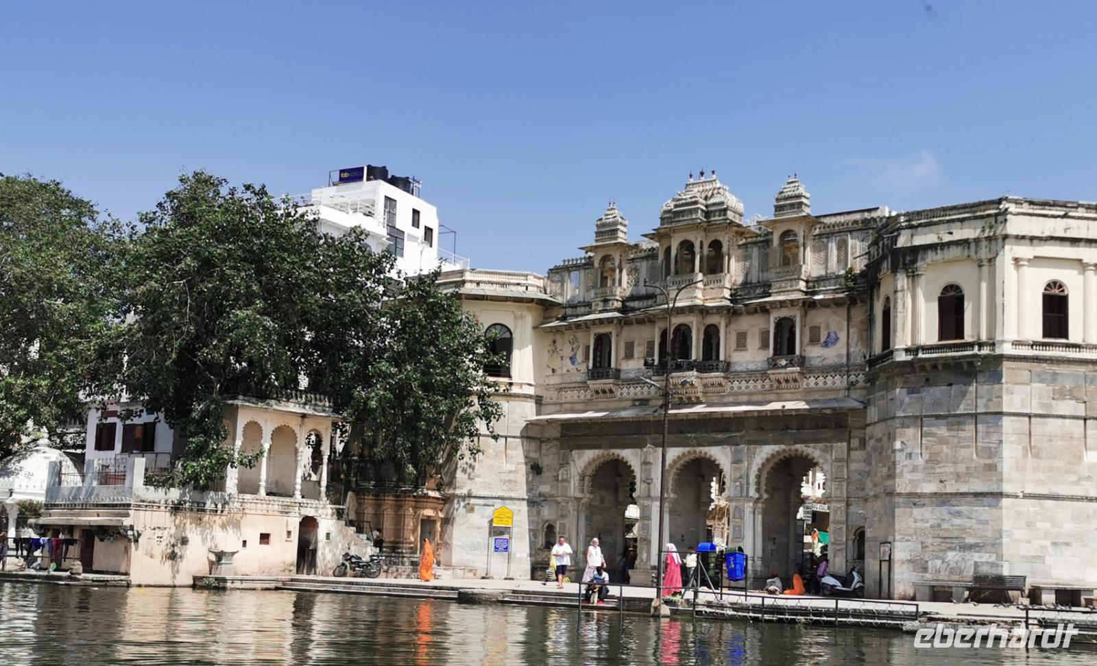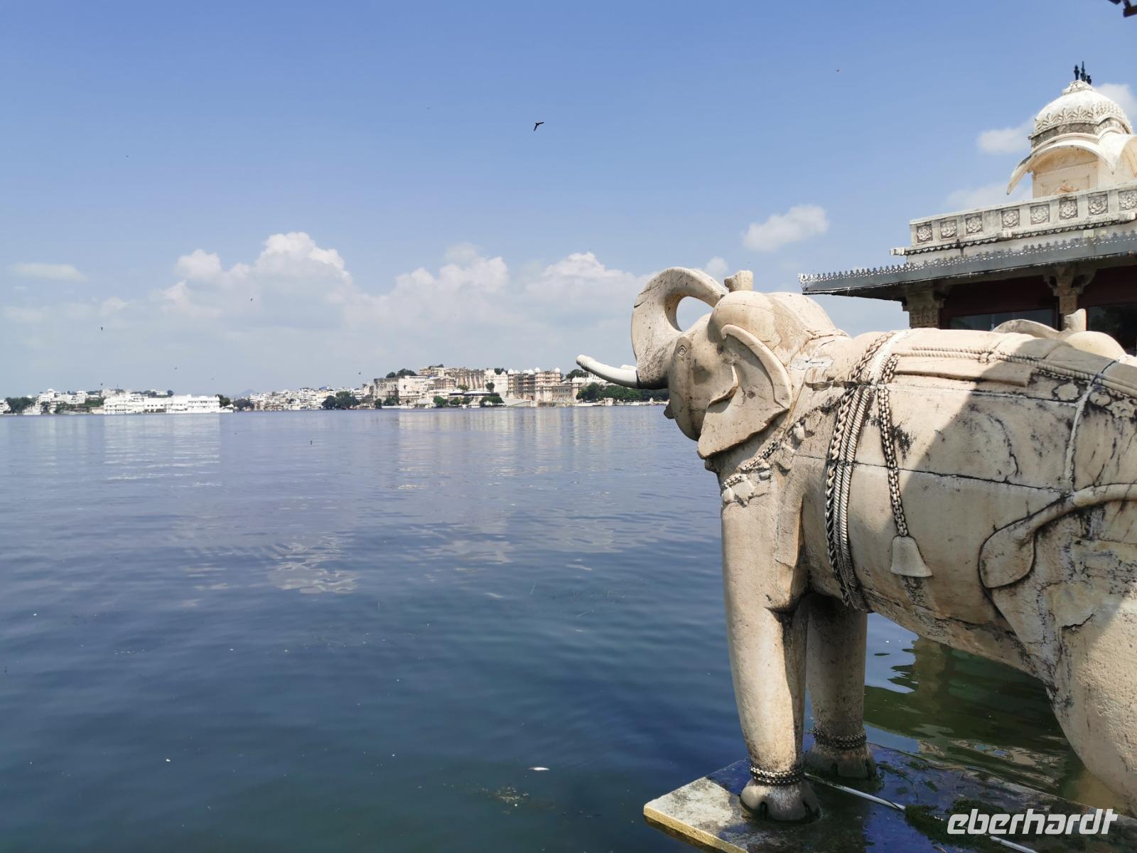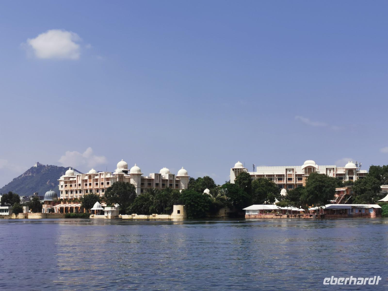 Nun unternahmen wir eine Bootsfahrt auf dem Picholasee, schipperten vorbei am Palace Hotel, dem zweitteuersten seiner Art in ganz Indien. Hier wurden legendäre Filme wie "Der Tiger von Eschnapur" 1958 und "Das indische Grabmal" von 1959 gedreht. Udaipur war sogar James Bond Kulisse im Jahre 1983 für den Dreiteiler "Octopussy" gewesen.
