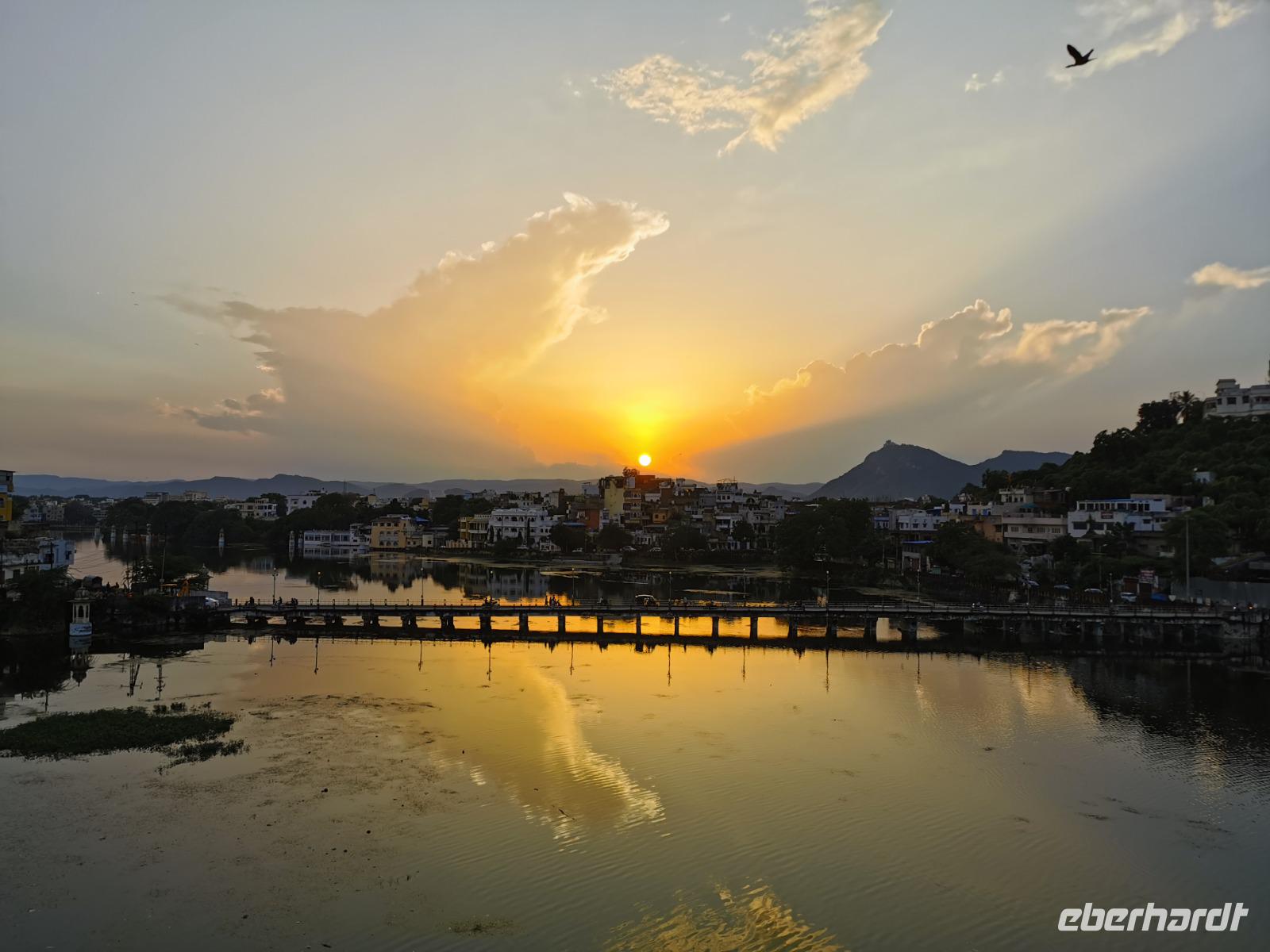 Am Nachmittag mußten wir uns dann allerdings lösen vom Tempelanblick, Udaipur wartete auf uns. Diese Stadt war die einstige Hauptstadt des Reiches Mewar und wurde 1559 von Udai Sing II gegründet. Uns Europäern ist sie meist aus alten Filmen wie beispielsweise "Der Tiger von Eschnapur" bekannt, in denen man immer wieder das mitten im Pichholasee gelegene weiße Luxushotel mit seinen Kuppeln sieht.