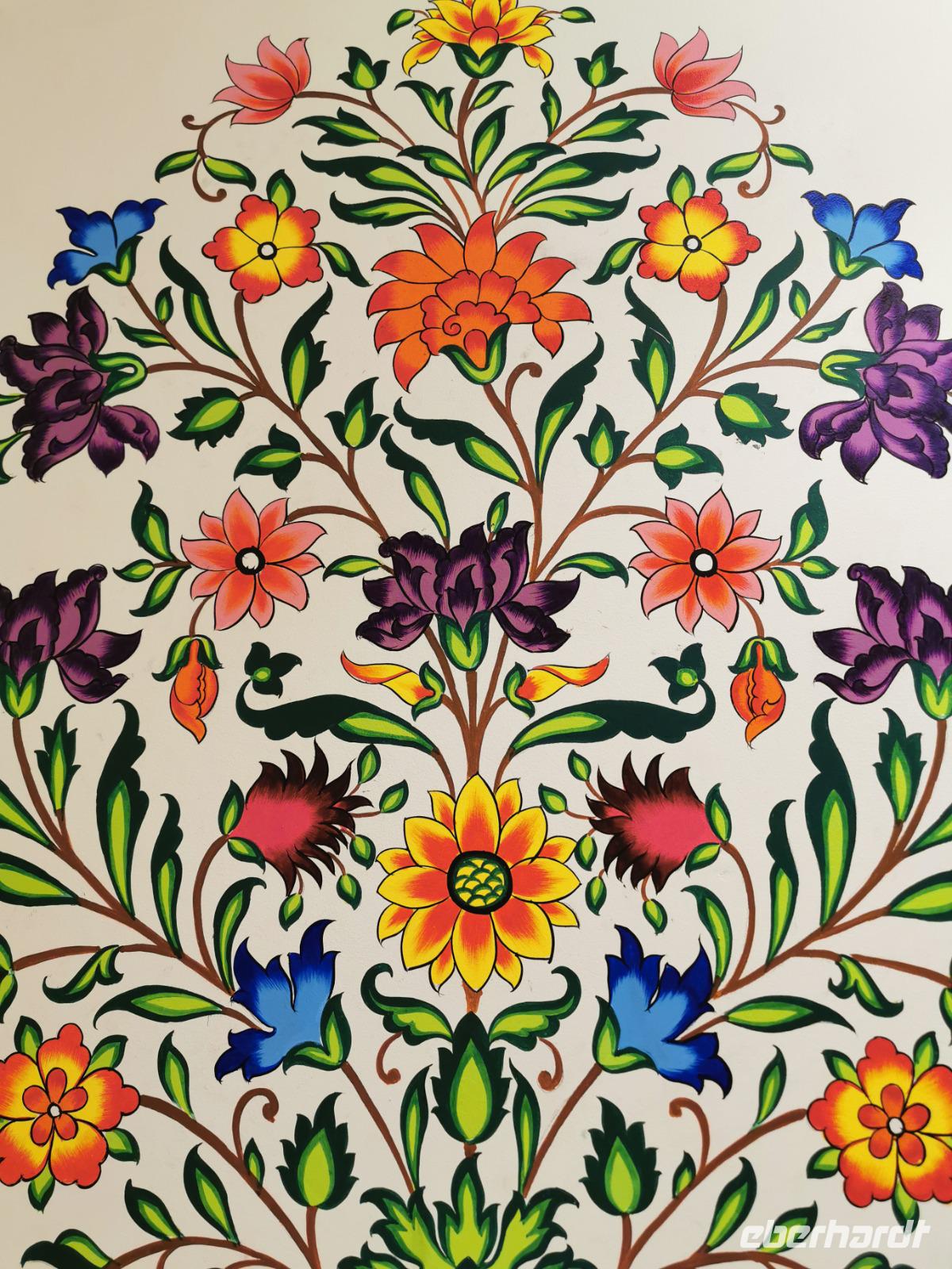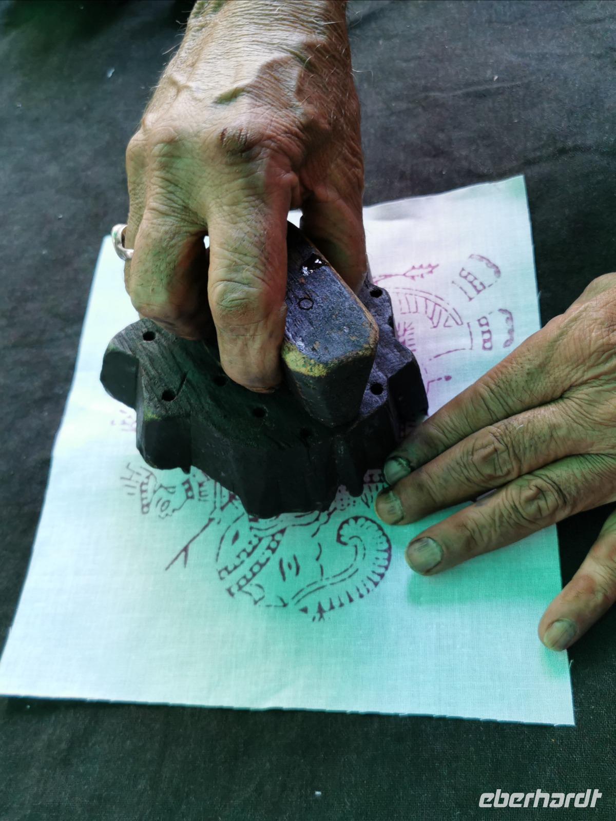Nach der Fortbesichtigung hatten wir in einer großen Halle die Chance, mal ganz live Teppichknüpfern und den traditionellen Stemplern bei ihrer Arbeit über die Schultern zu schauen. Hier entstehen die Kunstwerke, die uns immer wieder in Ekstase versetzen, unsere Schweizer erwarben hier gleich die Möbel für ihr neues Haus und die anderen Gäste übten sich im Stempeln.