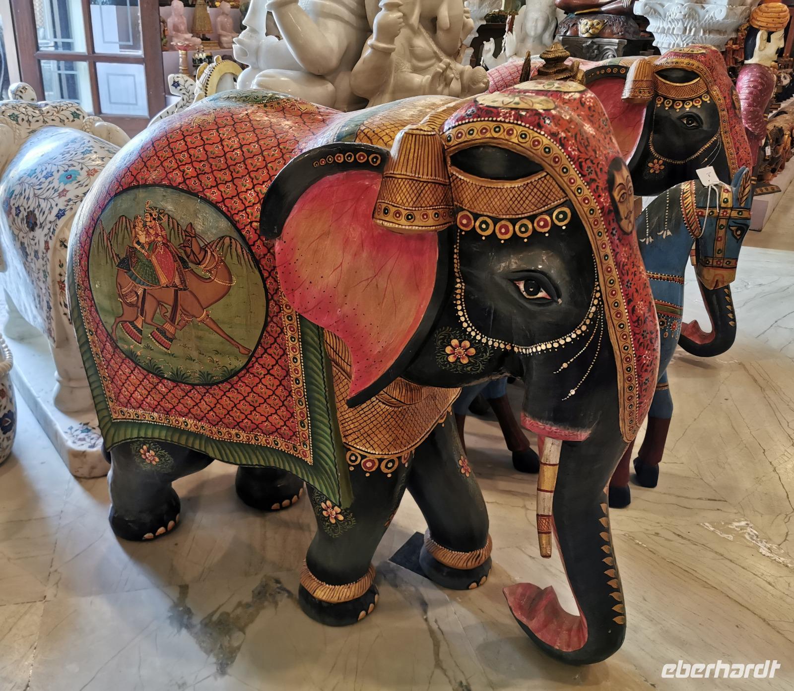 So schlenderten wir fasziniert an Regalen voller kleiner Silberdosen, orientalischer Hängelampen und Holztruhen mit prächigen Intarsienarbeiten vorbei. Wir bereuten es, keine Millionäre zu sein, um alles kaufen zu können. Noch mehr bereuten wir es, keinen Elefanten unser Eigen zu nennen, der alles nach Hause transportieren könnte.