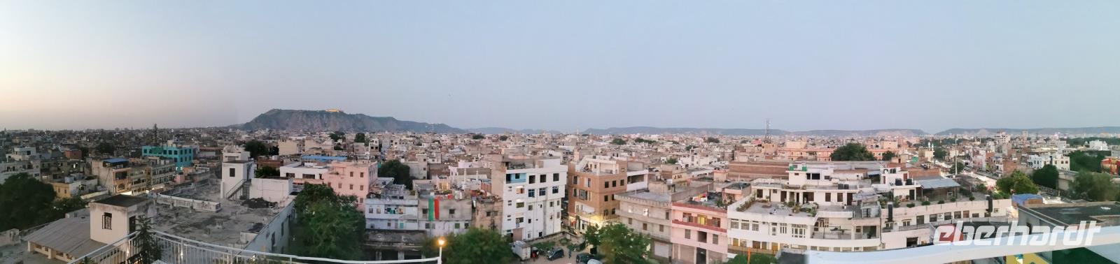 Wir waren am Nachmittag so überfordert von all den Geräuschen und Eindrücken, daß wir uns nochmals auf die Dachterrasse des alten Haveli flüchteten, um dort in Ruhe den Tag ausklingen zu lassen und die Abendstimmung unter freiem Himmel zu genießen.
