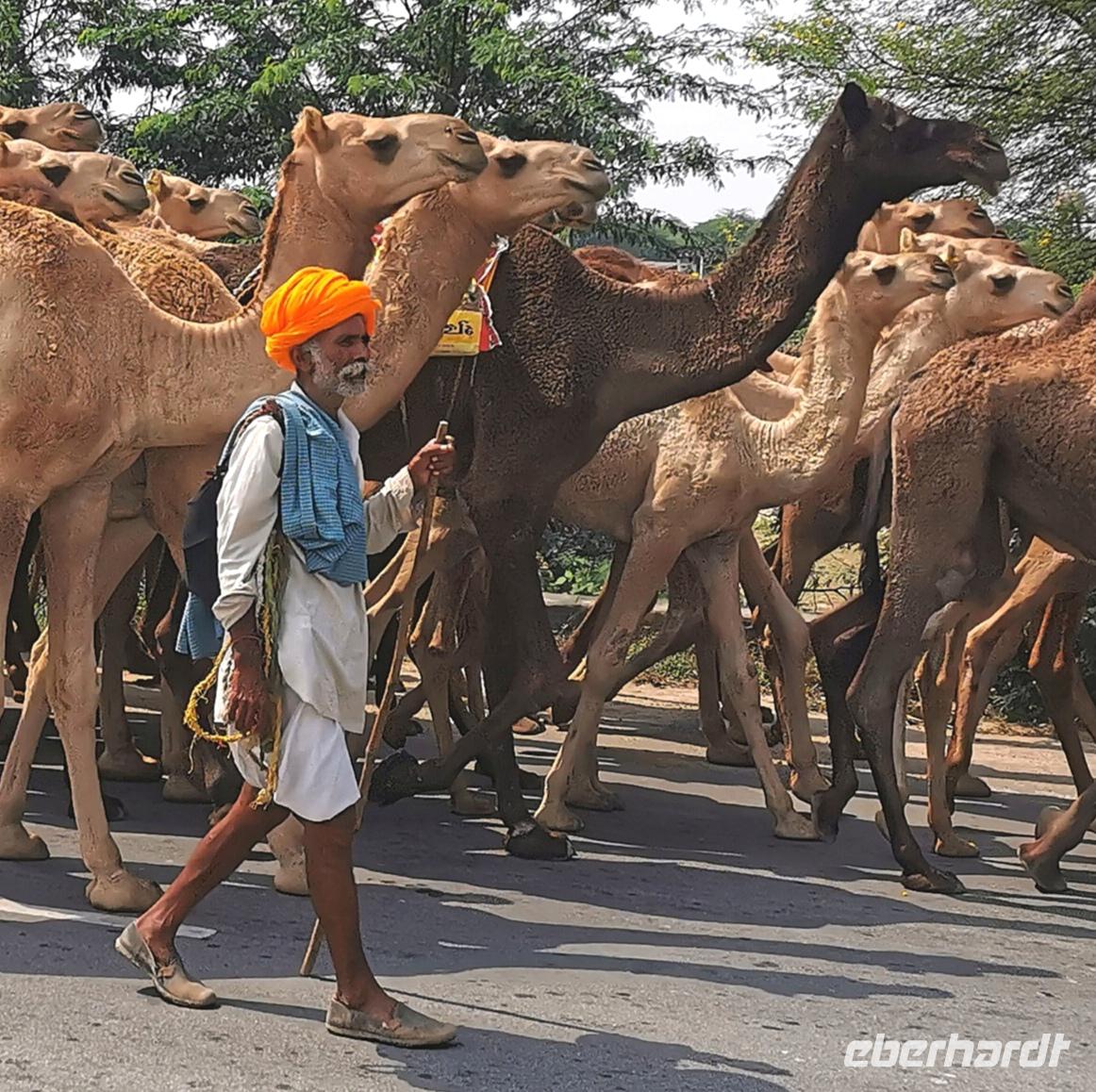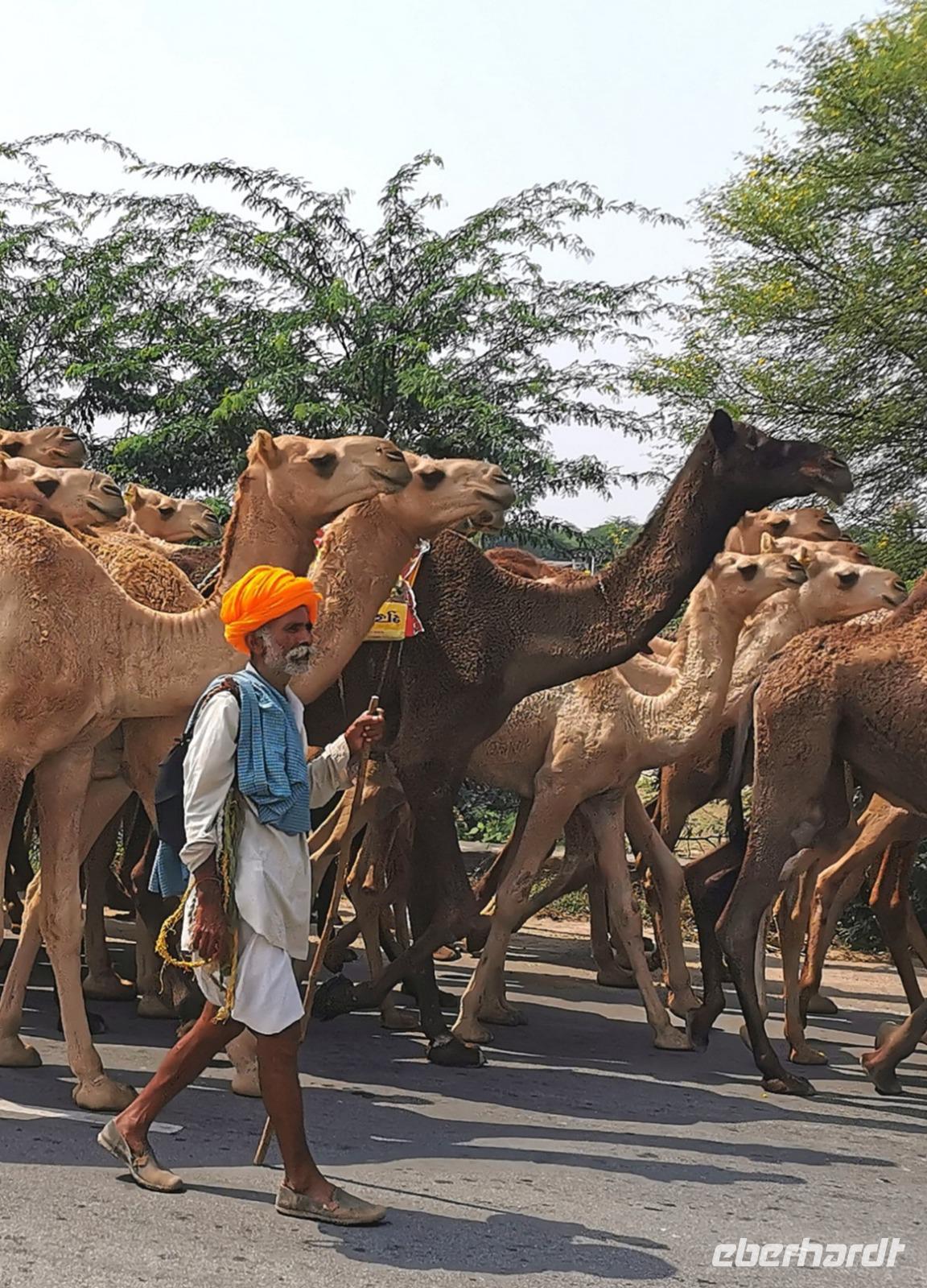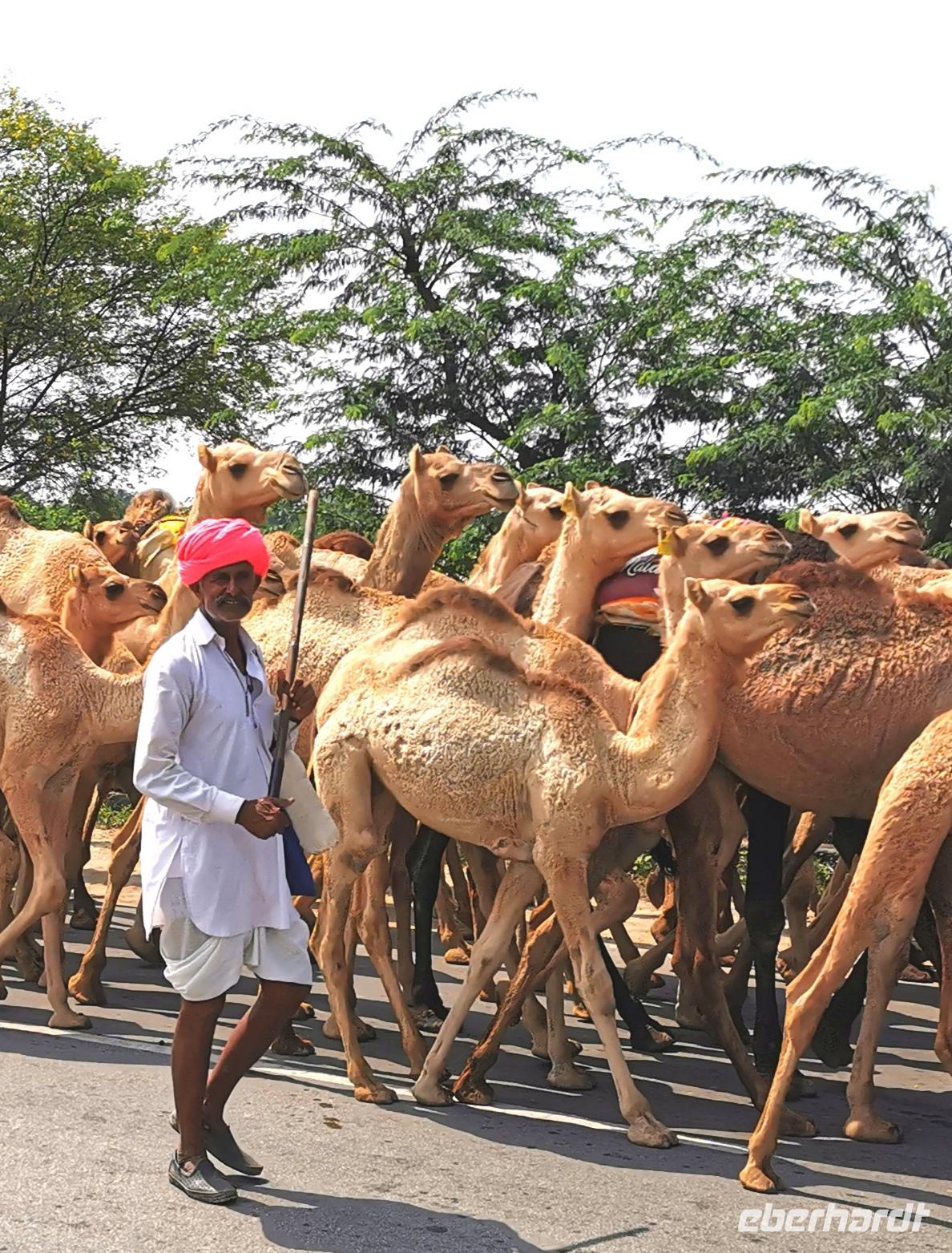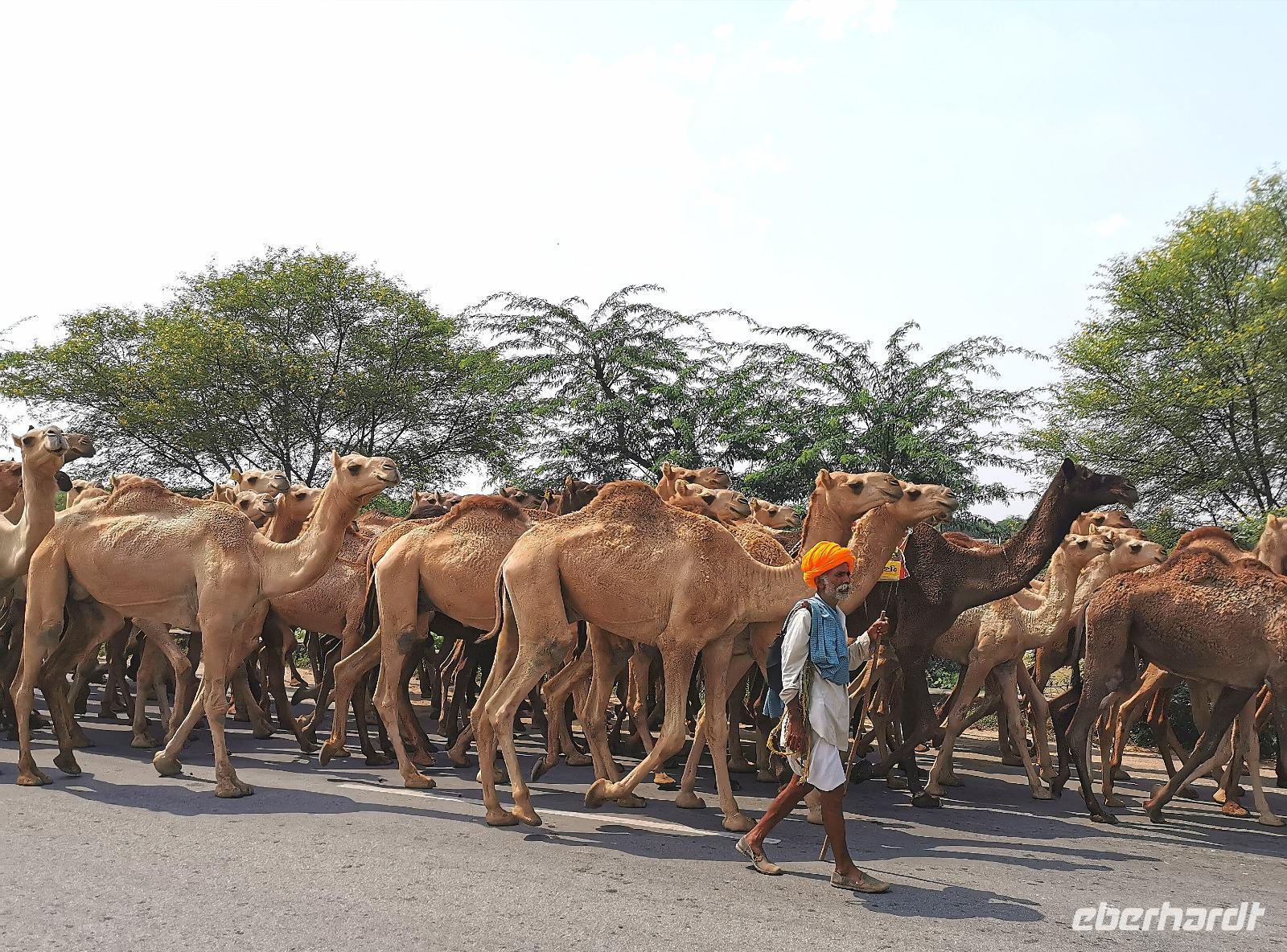 Wir setzten unsere Fahrt ins 180 km entfernte Ranthambore fort, eine Strecke, für die man bei indischen Straßenverhältnissen ungefährt vier Stunden benötigt. Mitten auf der Hauptstraße begegneten uns einige Männer mit bunten Turbanen, die eine große Kamelherde begleiteten. Man stelle sich solch einen Anblick auf einer deutschen Bundesstraße vor!!! In Indien ist das völlig normal.
