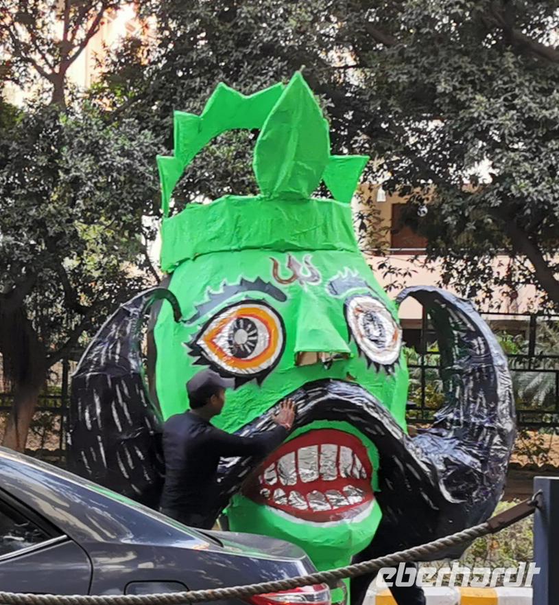 Wir hatten allerdings am Nachmittag geplant, uns zuerst das Fort in Agra anzuschauen. Gegen 15 Uhr erreichten wir es und trauten unseren Augen nicht. Die Schlange am Eingang war so lang, daß es ungefähr eine halbe Stunde gedauert hätte, allein die Eintrittskarten zu erstehen, ganz davon abgesehen, daß wir kein einziges Wort einer Führung verstanden hätten. Durch das Fest für die Göttin Durga waren unglaublich viele indische Besucher da. Also beschlossen wir, den Besuch des Forts auf den morgigen Tag zu verschieben.