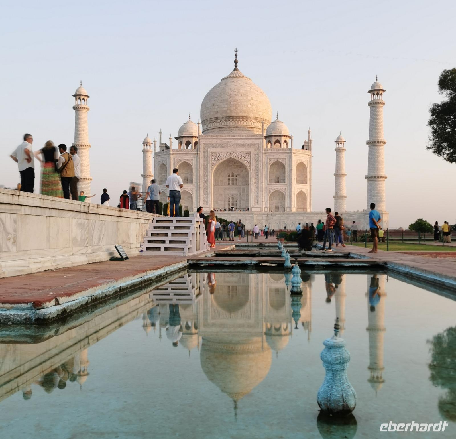 Wohl kaum ein anderes Bauwerk verkörpert für Gäste aus aller Welt so sehr Indien wie die in den Jahren 1631 bis 1648 errichtete "Krone des Palastes", was Taj Mahal übersetzt bedeutet.