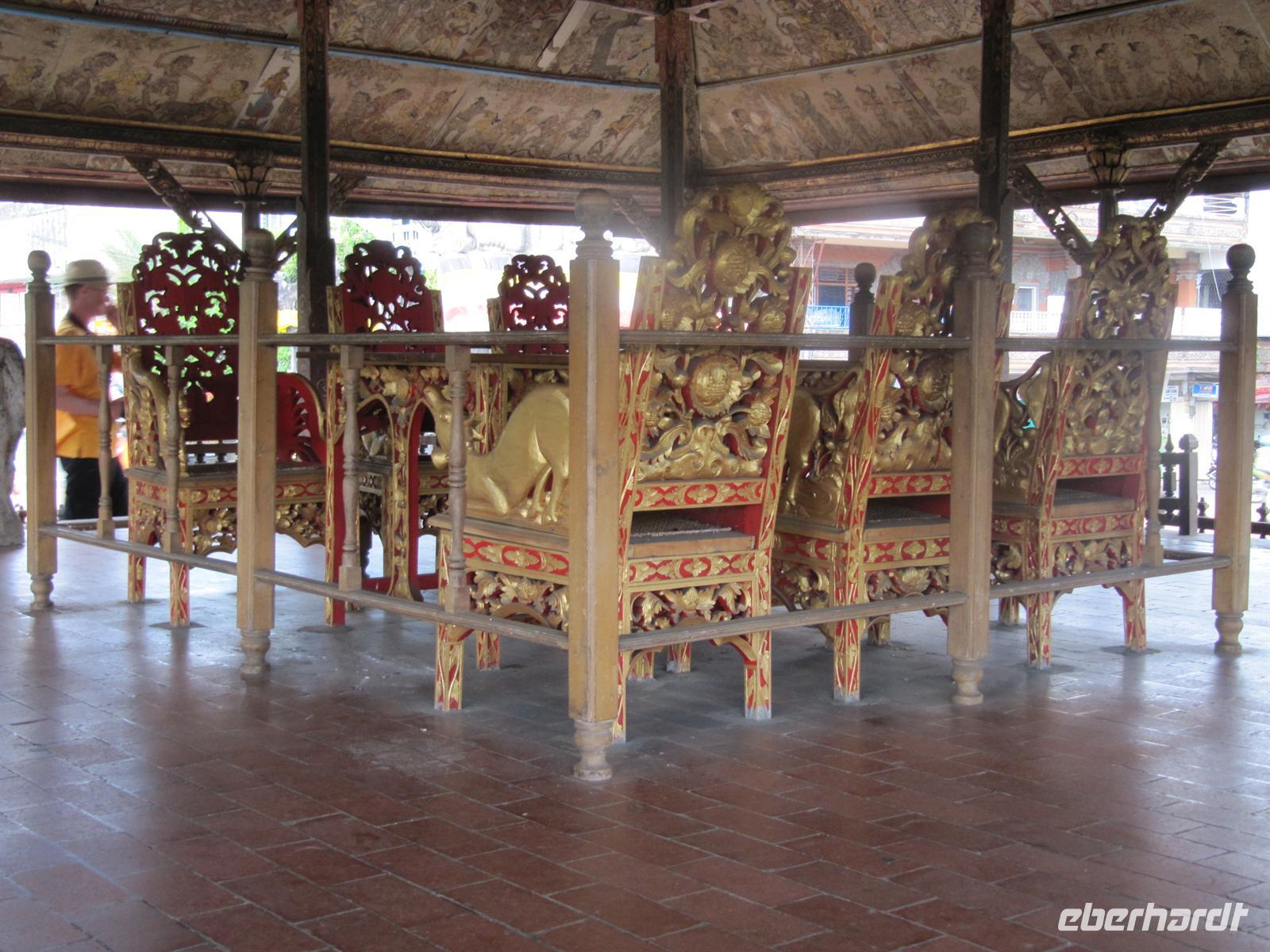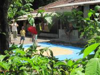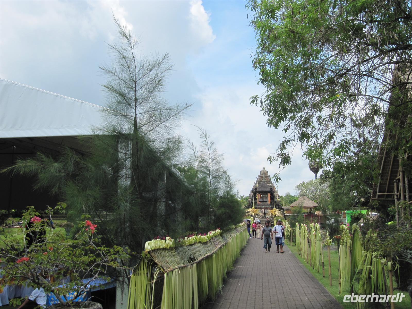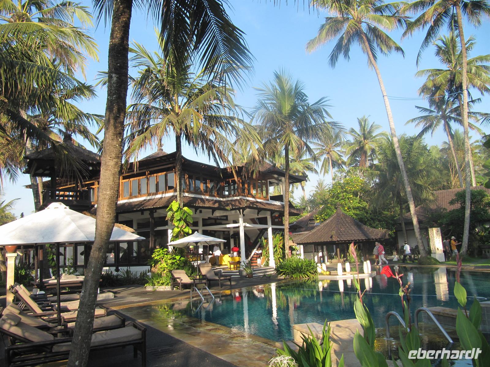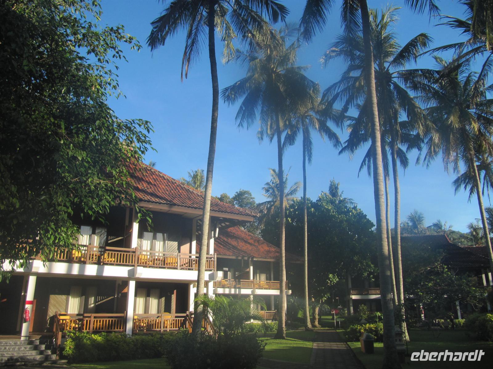 Im Osten Balis, zwischen Candi Dasa und Klungkung, erstreckt sich an der Küste schwarzer vulkanischer Sand. Dieser stammt vom Ausbruch des Vulkans Agung im Jahre 1963. Unweit des Strandes befindet sich die Fledermausgrotte Goa Lawah, die von großer religiöser Bedeutung ist und von balinesischen Gläubigen verehrt wird. In ihr leben zwei „heilige" Schlangen, die selten zum Vorschein kommen. Nicht zu übersehen sind Fledermäuse, welche die Decke der Höhle bis auf den letzten Flecken bedecken. Wir benötigen für den Besuch einen Sarong. Am heutigen Sonntag waren viele Einheimische unterwegs und nahmen an einer Prozession teil. Anschließend fuhren wir weiter nach Klungkung und besuchten die Gerichtshalle. Danach geht es weiter nach Tenganan. Wir besuchen ein Aga Dorf, das für seine Doppelikat-Weberei bekannt ist. Das Dorf ist jedoch sehr auf den Tourismus ausgelegt und nicht wirklich authentisch. Am Nachmittag waren wir wieder zurück im Hotel, was alle sehr begrüßt haben. Wir nutzten die Möglichkeit zum Baden oder zur Massage.