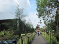 Wir haben das Programm an dem Tag ein wenig umgestellt. Aus Erfahrung ist es am Tanah Lot am Abend sehr voll, viele wollen den Sonnenuntergang sehen, aber genießen kann man den dann nicht wirklich. Zuerst fuhren wir nach Kuta, vorbei am Mahnmal für die Verstobenen des Bombenanschlages am 12.10.2002 auf Bali. Der Ort verfügt über einen kilometerlangen, breiten Sandstrand, weshalb sich dort ein Zentrum des westlichen Tourismus herausgebildet hat. Der Sandstrand Kutas eignet sich gut zum Sonnenbaden, Schwimmen und Surfen. Das Stadtbild ist vor allem durch Hotels und Diskotheken geprägt. Daher hat Kuta sich im Laufe der letzten Jahre stark „verwestlicht". Aber es war Nebensaison und kaum Touristen unterwegs. Wir fahren zum Tempel Tanah Lot. Der Hindutempel liegt an der Küste im Südwesten von Bali und ist nur bei Ebbe zugänglich. Wörtlich übersetzt bedeutet Tanah Lot „Land inmitten des Meeres". Der Tempel liegt auf einer Felsspitze im Meer dicht am Ufer. Auf dem Fußweg ist Tanah Lot - ohne dabei nass zu werden - nur bei Ebbe zu erreichen. Vom Strand aus erreicht man den Tempel nach einem 50 Meter langen Gang über rundgewaschene Steine und feinen dunklen Sand, um zur Felseninsel zu gelangen. In einer kleinen Höhle am Fuße des Tempelfelsens befindet sich eine Süßwasserquelle, die somit quasi im Meer entspringt. Sie gilt als heilig und wird ständig von Priestern bewacht. Gegenüber der Quelle befindet sich in den am Festland gelegenen Klippen eine weitere Höhle, die Ular Suci. Hier leben die heiligen Schlangen, die ebenfalls von Priestern betreut werden. Einige von uns ließen sich auch mit einer Schlange fotografieren. Nach diesem Besuch fuhren wir noch zum Tempel Tentang. Bawa erklärt uns den Aufbau des Tempels, es werden gerade Feierlichkeiten vorbereitet und wir können die Balinesinnen dabei beobachten, wie der Tempelschmuck hergestellt wird. Zurück im Hotel hatten wir noch Zeit bis zum Abendessen. Viele nutzen dies für ein Bad im Meer.
