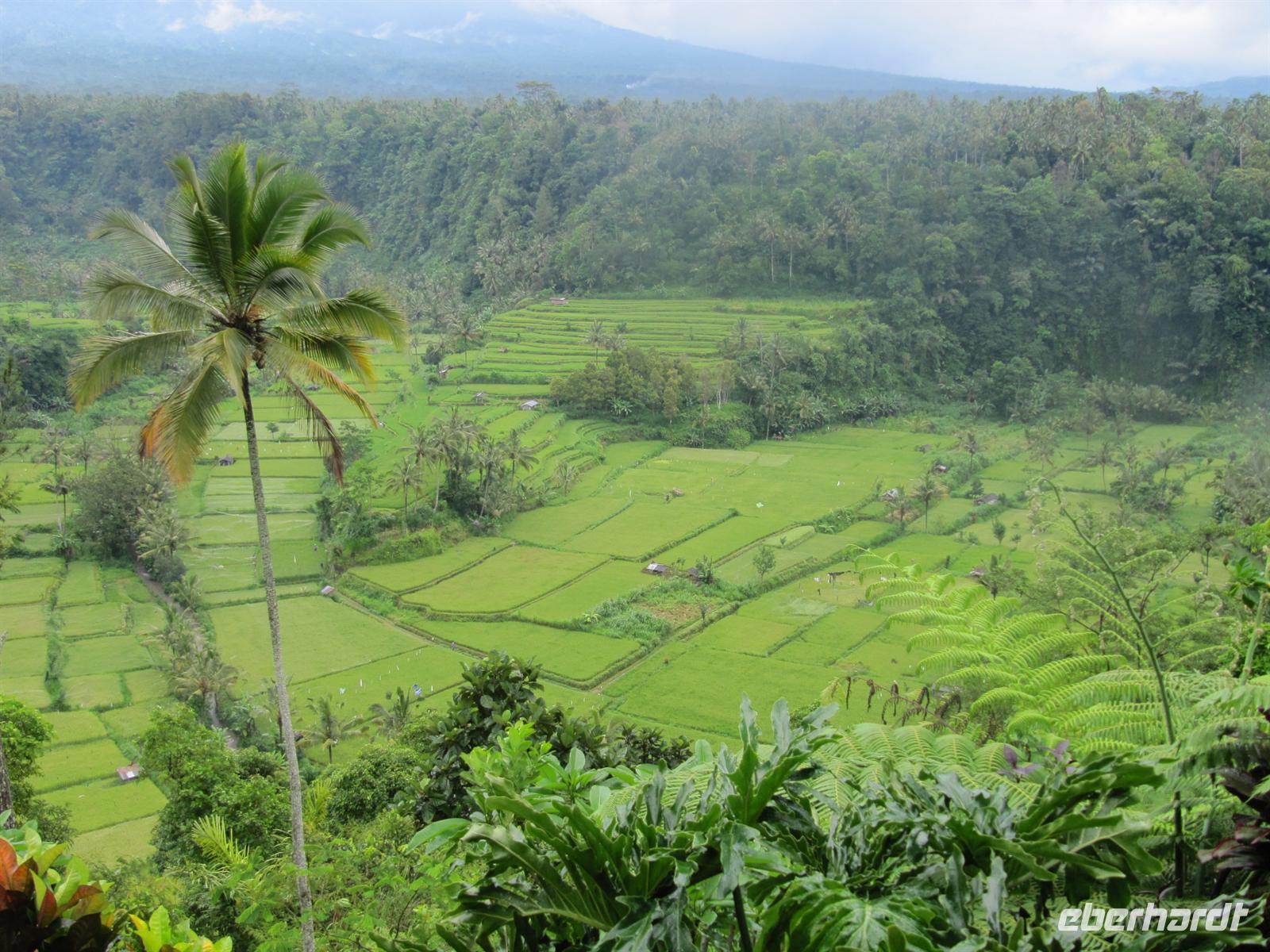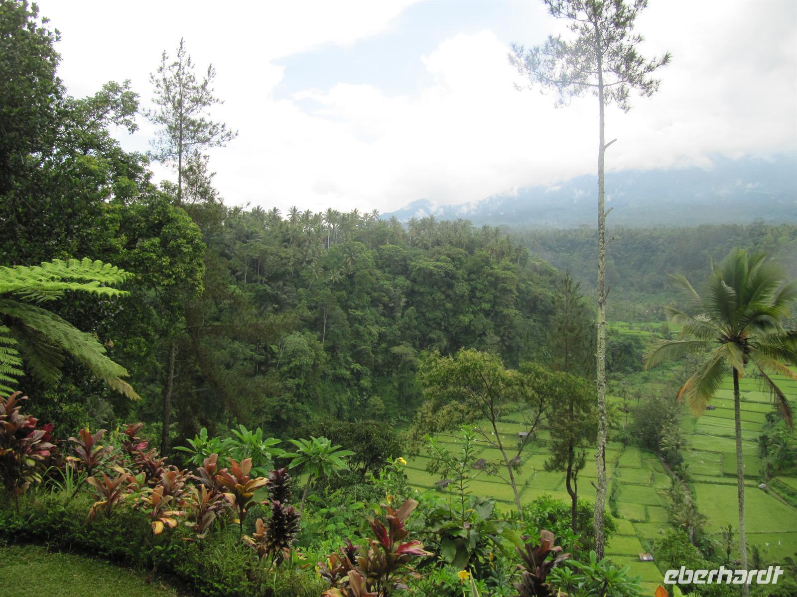 Die heutige Fahrt in den Ostteil der Insel führt uns durch die grüne Landschaft der Reisfelder. Dort war auch unser erster Halt. Auf unseren Weg nach Kintamani legten wir einen weiteren Stopp am Gewürzgarten ein. Bawa erklärte uns die Pflanzen, es war ein wunderschöner Garten. Wir kosteten verschiedene Teesorten, Kakao und den teuersten Kaffee der Welt - den Luwak Kaffee. Der teuerste Kaffee der Welt geht vom Kaffeebaum zunächst durch den Verdauungstrakt der Zibetkatze und erst dann in die Rösterei. Doch Kenner von Kopi Luwak sind begeistert: Der Kaffee hat ein unvergleichlich volles Aroma. Ich kaufte eine große Tasse Luwak-Kaffee, von der alle mal probieren konnten (1 Tasse = 100.000 IDR ca. 10 €). Diese Stunde Aufenthalt in dem Garten gehörte mit zu den absoluten Höhepunkten der Reise. Anschließend fuhren wir weiter Richtung Kintamani - die Berge hinauf. In den Bergen ist es etwas bewölkt und auch etwas kühler. Es bot sich ein schöner Blick auf den Batur-See und den Vulkan. Zum Mittagessen kehrten wir in ein Restaurant mit einem wunderschönen Blick über die Reisterassen ein. Anschließend besuchten wir den Muttertempel Pura Besakih. Diese Tempelanlage ist das Hauptheiligtum der mit reichlich Tempeln gesegneten Insel und wurde bereits im 8. Jahrhundert am Hang des Agung Vulkans errichtet. Der geheimnisvolle Komplex besteht aus mehr als 200 Gebäuden und ist faszinierend. Wir übernachten in Candi Dasa an der Ostküste Balis.