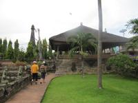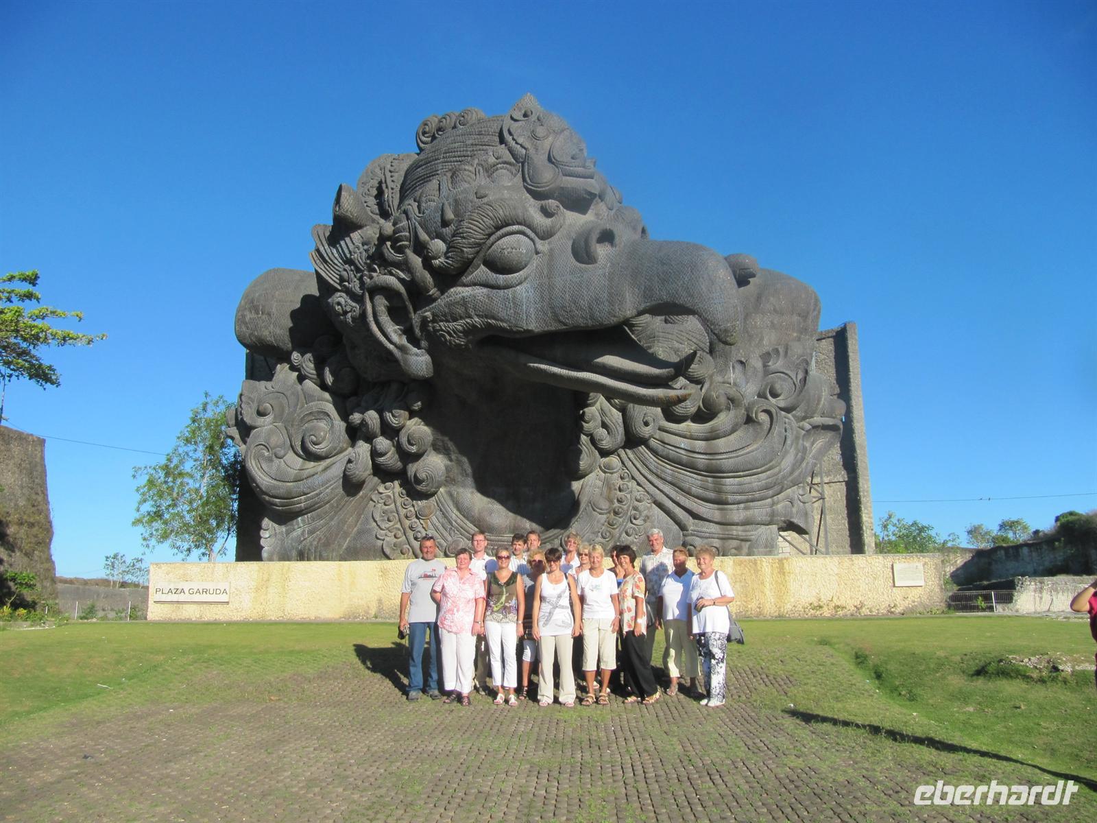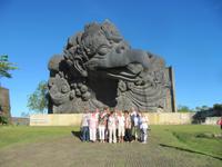 Wir genießen den Vormittag am Senggigi-Strand und am Pool im Hotel, bevor wir mit Garuda Airlines den kurzen Flug (ca. 25 Minuten) antreten. Von oben haben wir einen traumhaften Blick über die Meeresstraße zwischen Lombok und Bali. Wir bezogen das Hotel direkt am Strand der Halbinsel Nusa Dua. Am Nachmittag besuchten wir eine Kulturanlage, in der wir eine 23 Meter hohe Statue der Gottheit Vishnu besichtigen. Zudem bestaunen wir das Vishnus Reittier, das aus der indischen Mythologie entsprungene vogelartige Wesen „Garuda". In einem Restaurant im Fischerdorf Jimbaran essen wir Fisch und frische Meeresfrüchte. Das Restaurant liegt direkt am Strand und wir genießen den wunderschönen Sonnenuntergang. Eine Folkloregruppe zeigte ihre traditionellen Tänze und jeder konnte sich fotografieren lassen. Als wunderschönen Abschluss unserer Reise sahen wir noch ein Feuerwerk direkt am Strand.
