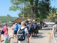 Unweit von Lombok befinden sich die Gili-Inseln, kleine Idylle, die durch ihr türkisblaues Wasser und schneeweißen Strände geschätzt werden. Mit dem Boot fahren wir zur kleinsten Insel, Gili Air, zur „Wasserinsel". Hier verläuft" das Leben sehr ruhig, das schnellste Verkehrsmittel sind Pferdekutschen. Wir nutzten die Zeit zum baden und relaxen. Einige unternahmen eine Rundfahrt mit der Kutsche. Zudem konnten wir die Unterwasserwelt beim Schnorcheln kennenlernen. Aber es lohnte sich nicht. Der Himmel verdunkelte sich und es fing an zu regnen und zu gewittern. Am späten Nachmittag kehrten wir mit dem Boot zurück und fuhren mit dem Bus zum Hotel.