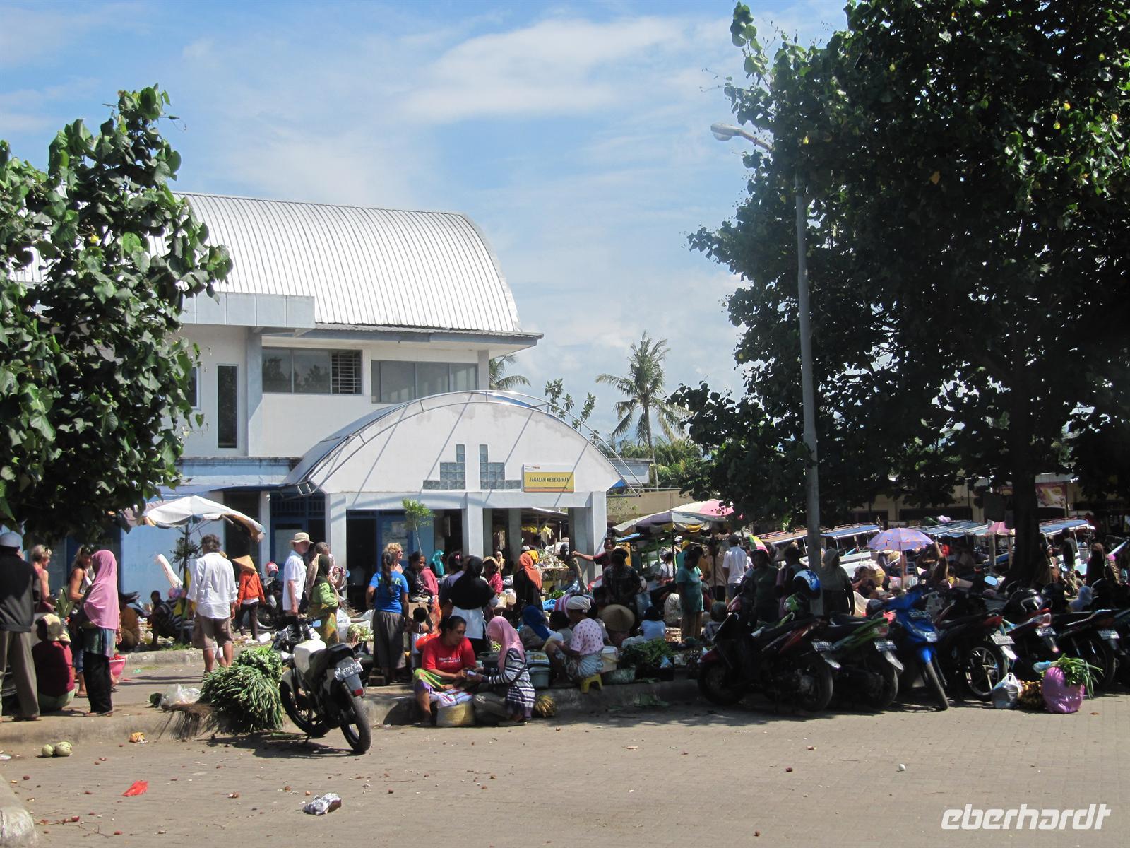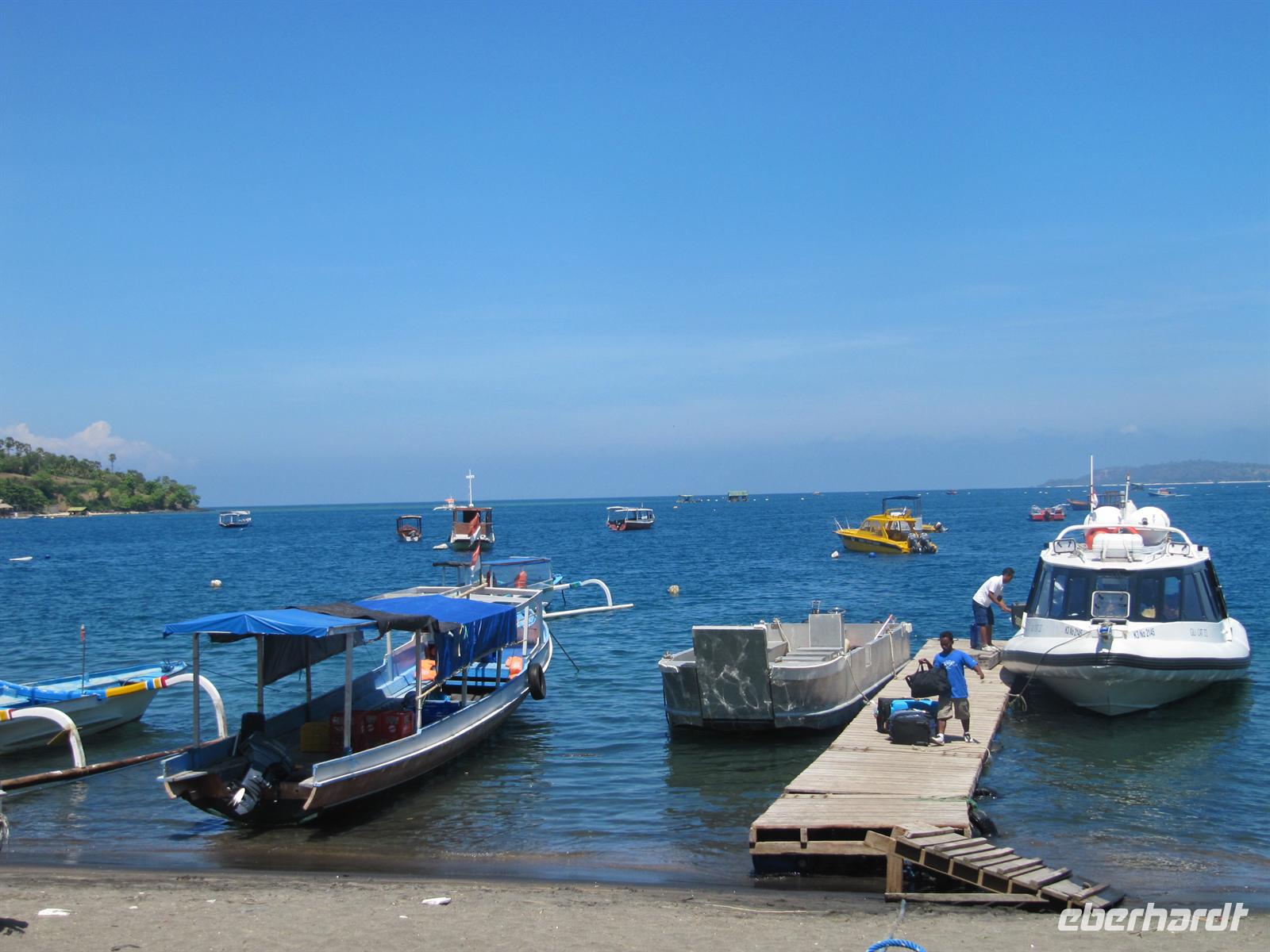 Heute überqueren wir mit einem Schnellboot die 35 Kilometer breite Meeresstraße zwischen Bali und Lombok - und passieren damit die naturwissenschaftliche Grenze zwischen Asien und Australien. Am Morgen holten uns 2 Kleinbusse von der Schifffahrtsgesellschaft „Gili Cat" am Hotel ab. Wir fuhren zum Hafen nach Padangbai. Dort haben wir noch ein wenig Zeit bevor das Schiff ablegt. Das Gepäck wird mit Handwagen von den Angestellten der Fährgesellschaft zum Boot gebracht. Wir fahren mit einem Schnellboot und überquerten die berühmte Wallace-Linie. Diese Grenze, benannt nach dem Naturwissenschaftler Alfred Russel Wallace, geht auf die sehr unterschiedlich geprägte Flora und Fauna der Inseln zurück: Während Balis Tier- und P!anzenwelt deutlich vom asiatischen Festland geprägt ist, trägt Lomboks Natur australische Züge. Nach etwa zwei Stunden erreichten wir den Hafen von Lombok. Dort erwartet uns unser Reiseleiter - Lalu Mahsun. Die Koffer werden in einem Gepäckfahrzeug verstaut und wir gingen zum Bus. Dieser brachte uns in das Hotel Sengiggi Beach. Das Senggigi Beach Hotel liegt auf 12 Hektaren tropischer Parklandschaft und am schönen Sandstrand von Senggigi. Diesen nutzten wir am Nachmittag zum baden und erholen. Das Abendessen nahmen wir im Restaurant Bassilico, das direkt am Sandstrand liegt, ein.