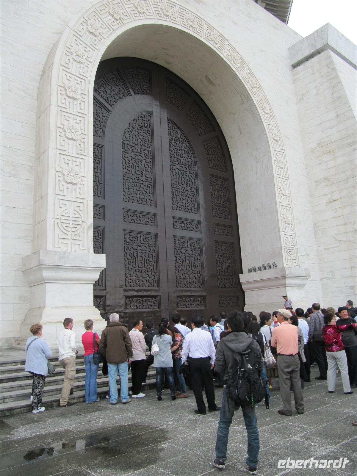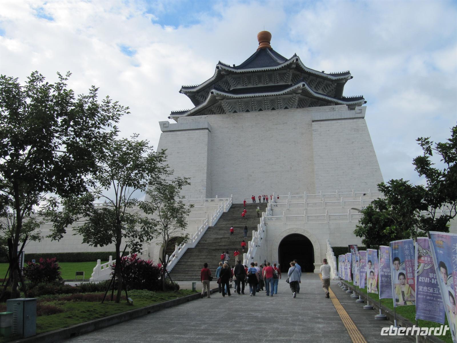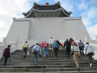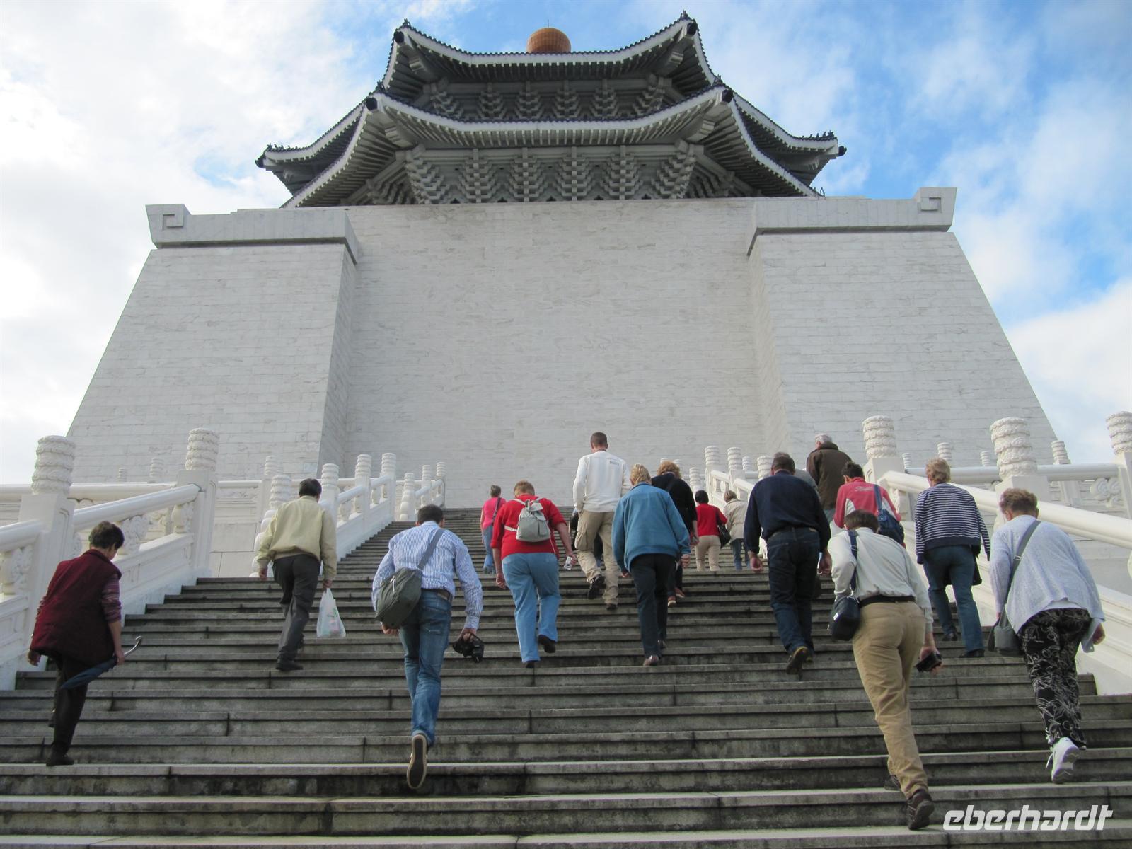 Am frühen Morgen kamen wir pünktlich in Taipeh an. Nachdem alle Ihren Koffer in Empfang genommen hatten erwartete uns bereits unser örtlicher Reiseleiter Jonny. Und so starteten wir unser Programm. Ein großer moderner Bus stand bereit und so hatte fast jeder seine eigene Bankreihe. Sehr positiv war das für alle Trinkwasser an Bord war. Da heute Sonntag war besuchten wir gleich am Morgen den Longshan Tempel - es fand gerade eine Zeremonie statt, von daher ein absoluter Höhepunkt und ein schönes Einstieg für Asien. Weiter ging es zum Chiang Kai-Shek Palast, der Gedenkhalle zu Ehren des Staatsgründers Chiang-Kai-Shek. Die 76Meter hohe Halle wird bedeckt von blauen Keramikdächern und hinauf führen 89 Stufen - was genau dem Alter des umstrittenen Ex-Präsidenten entspricht, der sich mit einer 25 Tonnen schweren Bronzestatue verewigen ließ. Mittlerweile heißt die Halle offiziell "Nationale Taiwan-Demokratie-Gedächtnishalle". Auf dem Areal steht auch das Nationaltheater mit Ausstellungen aus dem Privatbesitz des ehemaligen Staatsoberhauptes, u.a. mit einem imposanten Cadillac. Jetzt brauchten wir eine kleine Cafe-Pause, schließlich waren wir alle nach dem langen Flug ein wenig müde. Auf dem Weg zum Bus besuchten wir ein kleines Cafe. Der Kaffee wurde traditionell in einem Dampfverfahren hergestellt. Der Kaffee schmeckte sehr gut und weckte einwenig unsere Lebensgeister. Dazu erhielten wir selbstgebackene Cookies. Weiter ging es zum Nationalmuseums-Palast, wir werden müder und müder, unsere Aufnahmefähigkeit für die schönen Dinge lässt zusehends nach. Unsere nächste Station ist der Tower 101. Mit 509,2 m Höhe ist der Taipei 101 Tower eines der weltweit höchsten Gebäude. Taipei 101 ist nach seinen 101 oberirdischen Stockwerken benannt. Leider ist es Wolken verhangen. Dennoch offenbart sich uns ein schöner Ausblick auf Taipeh. Den geplanten Nachtmarkt streichen wir heute aus dem Programm und fahren zum Hotel. Zum Abendessen sind 2 Runde Dreh-Tische gedeckt für je 8 Mann, darauf werden 8 verschiedene Speisen angerichtet, von denen sich jeder nehmen kann so viel er will. Ich spendiere 1 Flasche Reisschnaps. Danach fallen alle ins Bett.