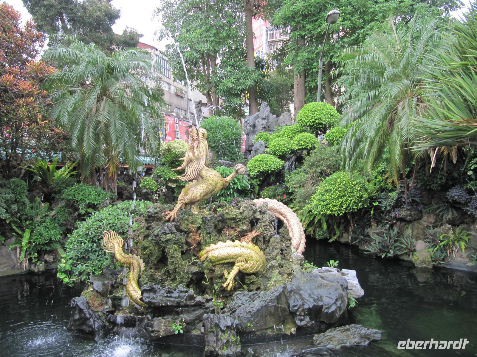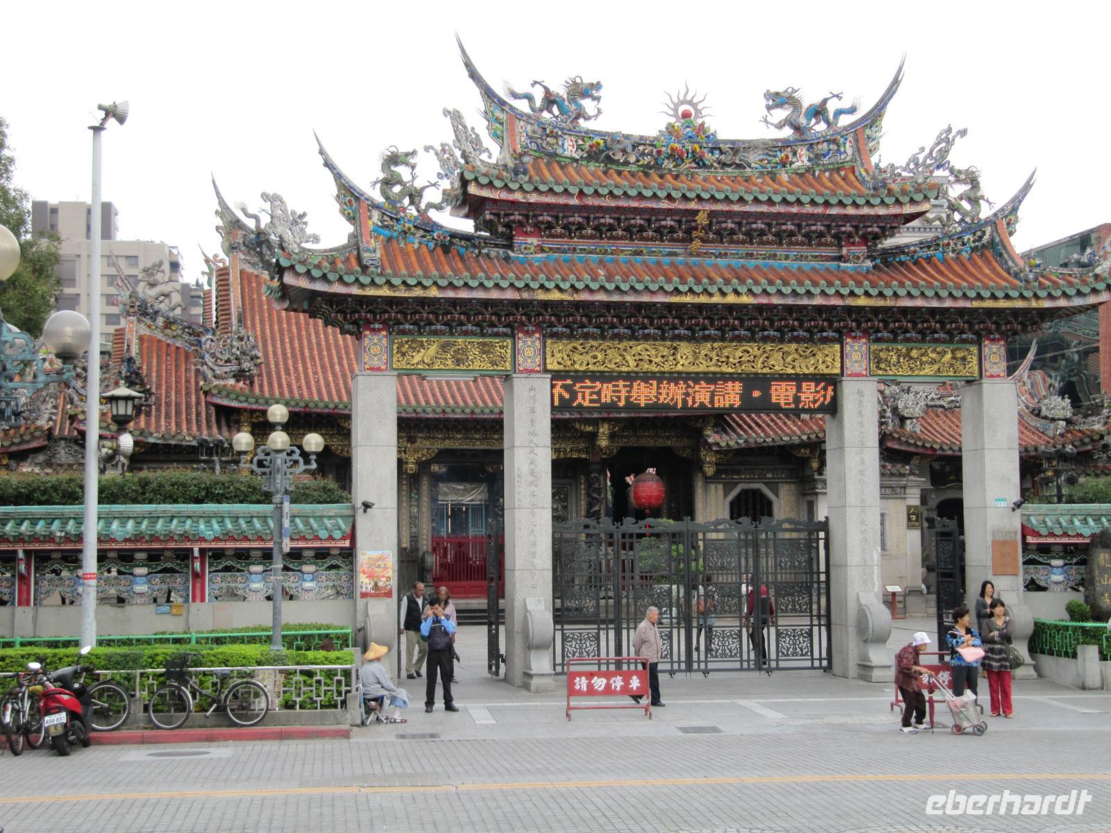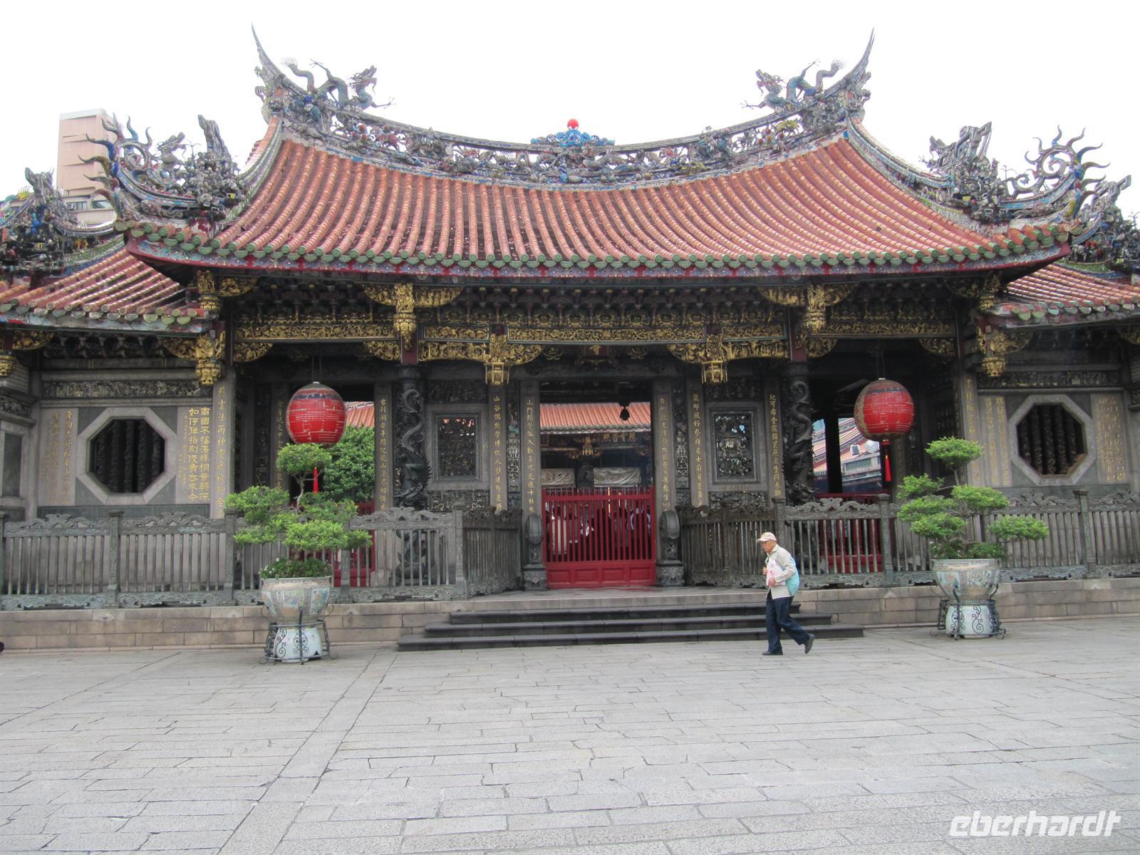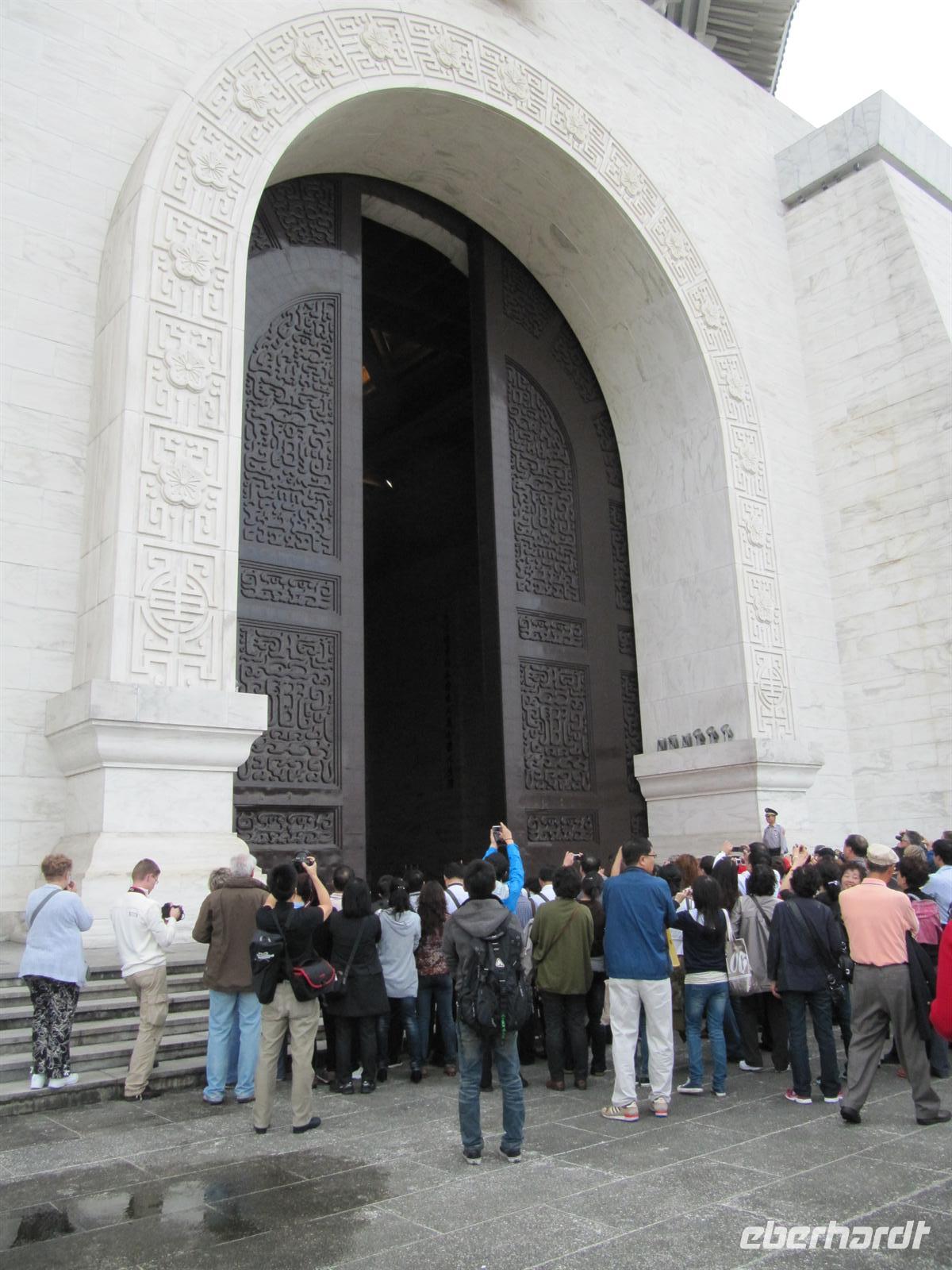 Am frühen Morgen kamen wir pünktlich in Taipeh an. Nachdem alle Ihren Koffer in Empfang genommen hatten erwartete uns bereits unser örtlicher Reiseleiter Jonny. Und so starteten wir unser Programm. Ein großer moderner Bus stand bereit und so hatte fast jeder seine eigene Bankreihe. Sehr positiv war das für alle Trinkwasser an Bord war. Da heute Sonntag war besuchten wir gleich am Morgen den Longshan Tempel - es fand gerade eine Zeremonie statt, von daher ein absoluter Höhepunkt und ein schönes Einstieg für Asien. Weiter ging es zum Chiang Kai-Shek Palast, der Gedenkhalle zu Ehren des Staatsgründers Chiang-Kai-Shek. Die 76Meter hohe Halle wird bedeckt von blauen Keramikdächern und hinauf führen 89 Stufen - was genau dem Alter des umstrittenen Ex-Präsidenten entspricht, der sich mit einer 25 Tonnen schweren Bronzestatue verewigen ließ. Mittlerweile heißt die Halle offiziell "Nationale Taiwan-Demokratie-Gedächtnishalle". Auf dem Areal steht auch das Nationaltheater mit Ausstellungen aus dem Privatbesitz des ehemaligen Staatsoberhauptes, u.a. mit einem imposanten Cadillac. Jetzt brauchten wir eine kleine Cafe-Pause, schließlich waren wir alle nach dem langen Flug ein wenig müde. Auf dem Weg zum Bus besuchten wir ein kleines Cafe. Der Kaffee wurde traditionell in einem Dampfverfahren hergestellt. Der Kaffee schmeckte sehr gut und weckte einwenig unsere Lebensgeister. Dazu erhielten wir selbstgebackene Cookies. Weiter ging es zum Nationalmuseums-Palast, wir werden müder und müder, unsere Aufnahmefähigkeit für die schönen Dinge lässt zusehends nach. Unsere nächste Station ist der Tower 101. Mit 509,2 m Höhe ist der Taipei 101 Tower eines der weltweit höchsten Gebäude. Taipei 101 ist nach seinen 101 oberirdischen Stockwerken benannt. Leider ist es Wolken verhangen. Dennoch offenbart sich uns ein schöner Ausblick auf Taipeh. Den geplanten Nachtmarkt streichen wir heute aus dem Programm und fahren zum Hotel. Zum Abendessen sind 2 Runde Dreh-Tische gedeckt für je 8 Mann, darauf werden 8 verschiedene Speisen angerichtet, von denen sich jeder nehmen kann so viel er will. Ich spendiere 1 Flasche Reisschnaps. Danach fallen alle ins Bett.