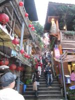 Auf Grund eines Erdrutsches ist die Zufahrtsstraße zur Tarokoschlucht zum Teil gesperrt. Wir disponieren um und bieten den Geopark „The wild Yehliu" an der Nordküste Taiwans an. Yehliu ist das Kap der Nordküste von Taiwan und befindet sich in der Stadt Wanli, zwischen Taipeh und Keelung. Doch vorher besuchen wir das Gold Museum im Gold Ecological Park in Chinkuashih Rueifang. In der ersten Etage befindet sich die Dauerausstellung. Der größte Schatz ist der große Goldziegelstein - der immerhin 220 Kilogramm wiegt und aus 999,9 Feingold besteht. Im Jahr 2004 wurde er im Guinness Buch der Rekorde eingetragen. Anschließend besuchten wir das kleine Bergdorf „Chiufen Village". Hier spazieren wir durch eine kleine belebte Einkaufsstraße. Geschäft an Geschäft reihen sich auf einer Länge von ca. 2 Kilometer aneinander. Obwohl es sehr eng ist fahren auch noch Mopeds hindurch. An den Ständen probieren wir die einen oder anderen „Köstlichkeiten". In einem kleinen versteckten Restaurant mit einigen Antiquitäten kehren wir zum Mittagessen ein. Gut gestärkt fuhren wir weiter zur Nordküste. Das Kap, von Geologen als Yehliu Promontory bekannt, ist Teil des Taliao Miozän Formation. Es erstreckt sich ca. 1.700 Meter in das Meer und bildete sich durch geologische Kräfte aus dem Meer heraus. Eine Besonderheit des Kaps sind die Hoodoo Steine, die die an der Wasseroberfläche zu sehen sind. Eine Reihe von Felsformationen haben fantasievolle Namen aufgrund Ihrer Formen. Die bekannteste ist "Der Kopf der Königin", das ikonische Bild in Taiwan und eine inoffizielles Emblem der Stadt Wanli. Weitere Formationen sind: "The Fairy Schuh", "The Bee Hive", "The Ginger Rocks" und "The Sea Kerzen. Wir hatten Glück die meisten Touristen befanden sich schon auf dem Heimweg. So konnten wir die phantastischen Ausblicke auf die Formationen bis zum Sonnenuntergang in Ruhe genießen. Nach dem Abendessen erwartete uns noch ein besonderes Erlebnis. Wir fuhren mit Jonny mit der U-Bahn zum Nachtmarkt. Nach einem gemeinsamen Spaziergang hatte jeder noch die Möglichkeit für einen individuellen Bummel. Einige Nutzen die Zeit für eine Fußmassage.