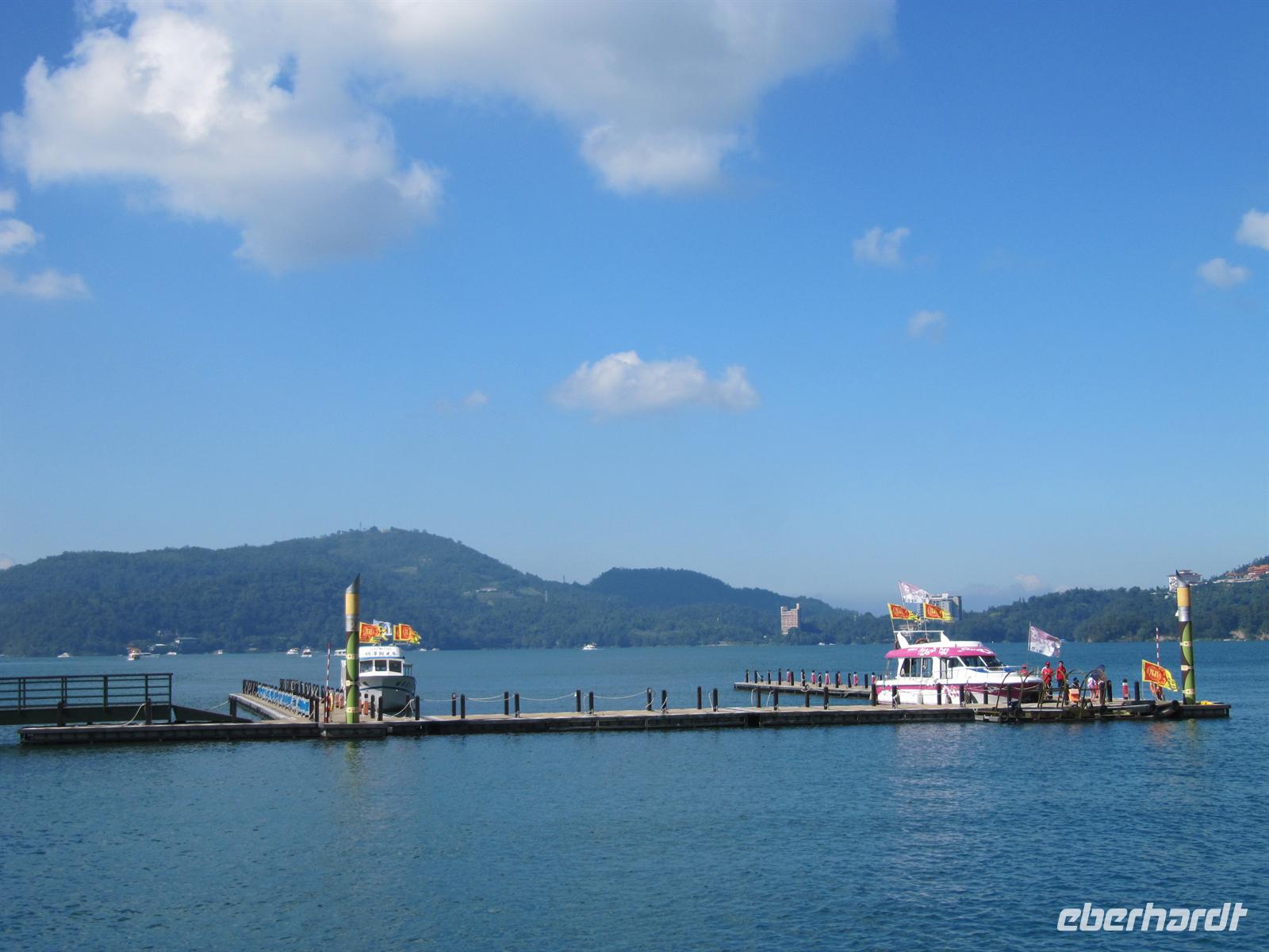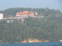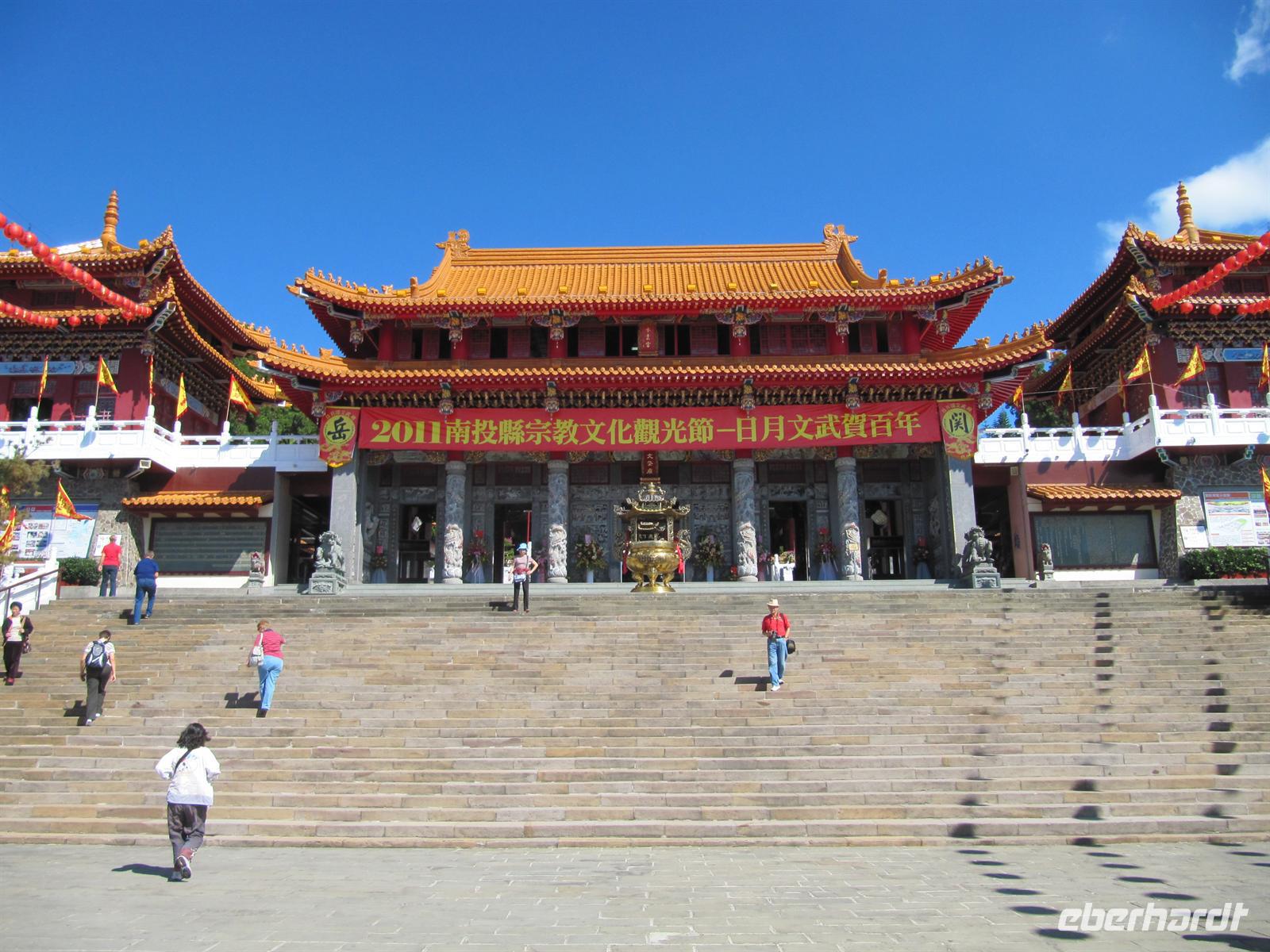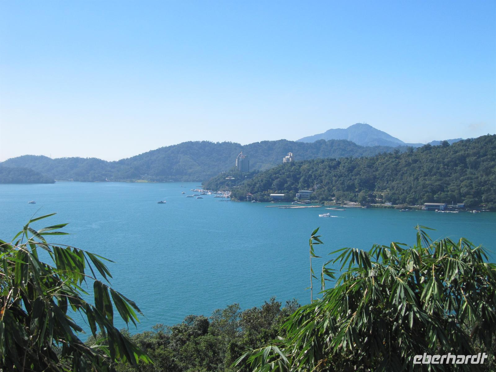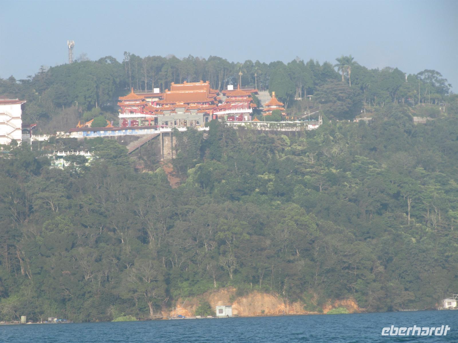 Heute besuchten wir den Sonne-Mond-See. Mit über 11km² ist er das größte Binnengewässer Taiwans. Zentral gelegen auf einer Höhe von ca. 760 m über NN bietet der See eines der schönsten Naherholungsgebiete Südost-Asiens. Der Name des Sees geht zurück auf die zwei Gewässer Sonnensee und Mondsee, deren Umrisse und chinesische Schriftzeichen den jeweiligen Himmelskörpern gleichen. 1939 wurden beide Seen durch eine Überstauung zusammengeführt. Um den See ranken sich einige Mythen und Legenden, so auch die Geschichte der „White Deer Hunter" (Weißhirsch-Jäger). Ein Stamm taiwanischer Ureinwohner, die „Ita Thao", sollen vor einigen hundert Jahren auf der Jagd nach einem seltenen weißen Hirsch gewesen sein. Die Jagd nach dem Tier hat den Stamm zum Sonne-Mond-See geführt. Überwältigt von dessen Anblick und dem reichhaltigen Angebot an Trinkwasser und Nahrung sollen die Ita Thao fortan ihr Stammeszentrum an den See verlagert haben. Zuerst besuchten wir am Nordufer des Sees den Wen Wu Tempel. Zwei jeweils 6 Meter hohe rote Löwen bewachen den Tempel. Auf 360 Stufen erklommen wir die Treppe zum Tempel-Eingang, wo uns ein farbenprächtiges Innenleben unter goldenen Dächern erwartet. Nach etwas Freizeit besuchten wir eine Tanzshow der Ureinwohner. Jetzt hieß es Leinen los und wir unternahmen eine Rundfahrt auf dem See. Auch wenn es schon etwas spät war spazierten wir noch zur Tzeen-Pagode ("Pagode der kindlichen Pietät"). Nach dem Aufstieg wurden wir mit einer grandiosen Aussicht belohnt. Nun wurde es dunkel und wir fuhren zurück nach Taipeh in das Flughafenhotel.