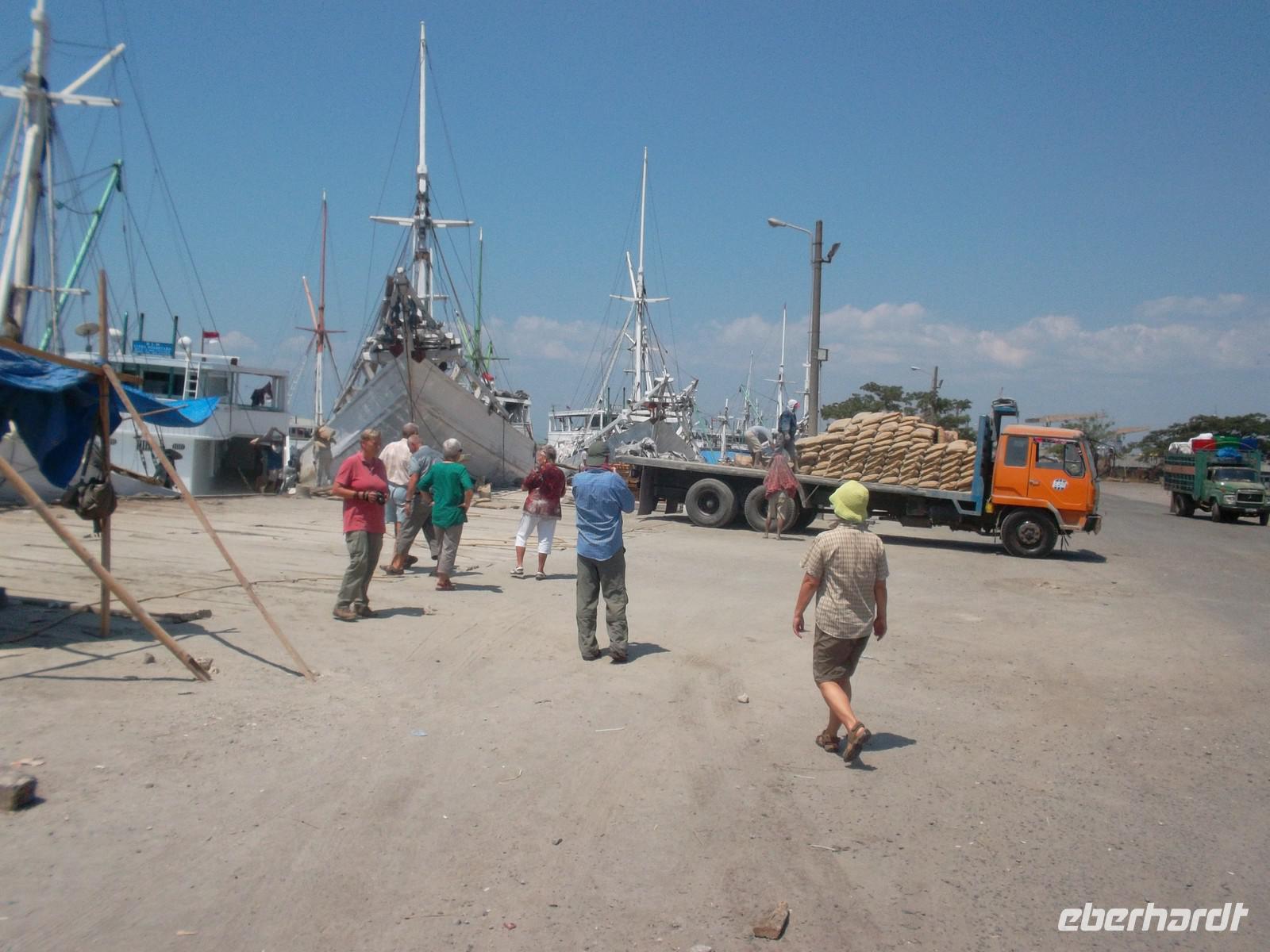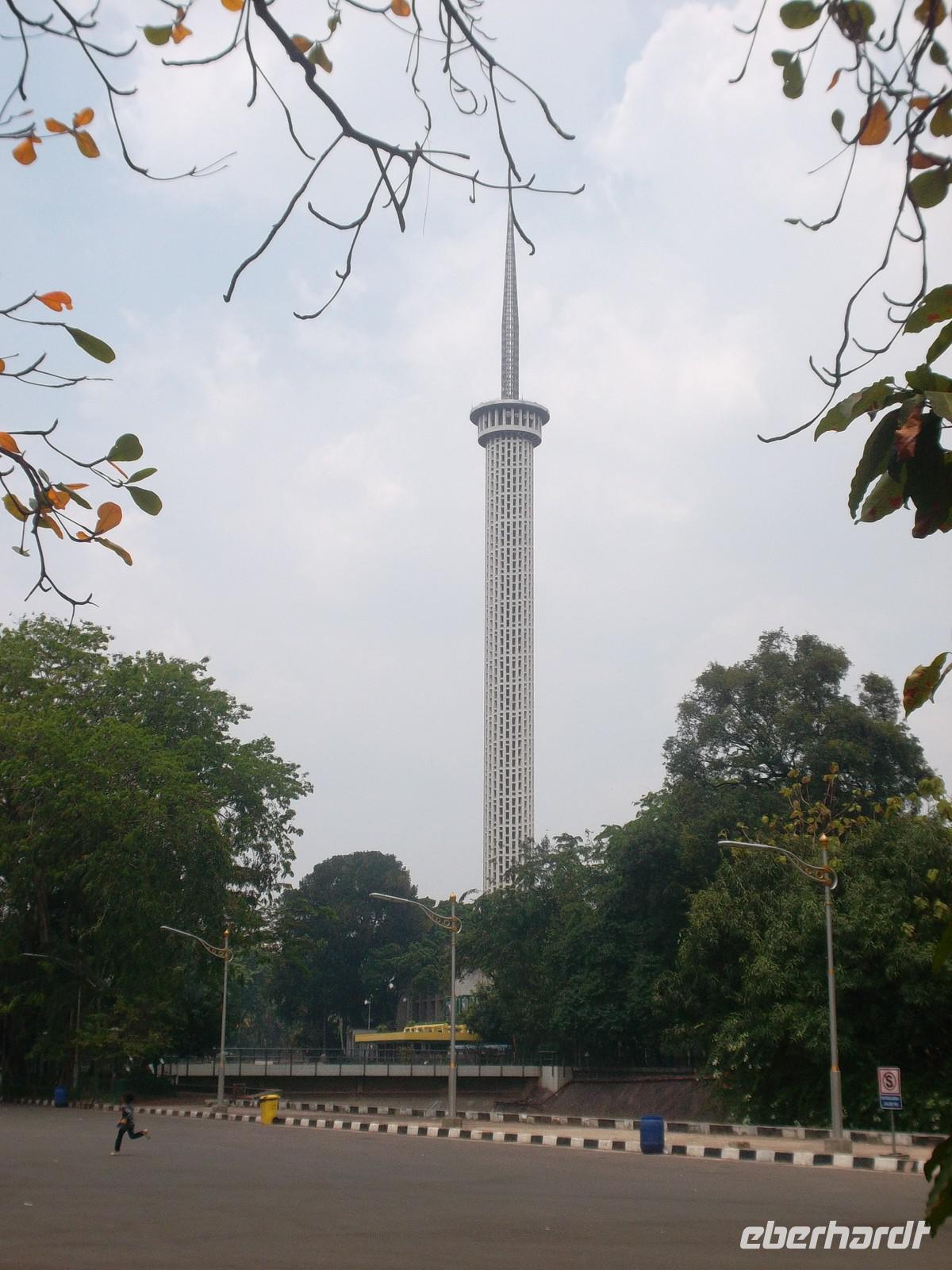Die Metropole Jakarta platzt aus allen Nähten - der Verkehr nebenbei gesagt auch! Von sechs über 12 bis 20 Millionen - ohne Vortorte oder als Metropolregion - Einwohnern reichen die Schätzungen. Hier wohnen fast doppelt so viele Menschen, wie die gesamte ehemalige Kolonialmacht Niederlande an Einwohnern hat. Sunda Kelapa hieß unser erstes Ziel, der älteste Hafen Jakartas, in dem man die weltweit größte noch existente Flotte von Lastensegelschiffen (Pinisi genannt) findet. Seit Jahrhunderten versorgen diese Küsten-Lastschiffe fast die gesamte südostasiatische Inselwelt mit Waren. Interessant ist das geschäftige Treiben hier allemal - die Schiffe werden oft noch komplett von Hand be- und entladen oder höchstens durch den schiffseigenen kleinen Kran. Immer noch kann man Fotos machen, wie das „Ladepersonal" gewagt über schmale Balken an und von Bord turnt. Gleich danach waren wir auf dem Weg ins Herz des alten „Batavia", so der holländische Name der einstigen kolonialen Hauptstadt. Deren Rathaus, als „Gouverneursbüro" einst festungsähnlich für den Chef der ehemaligen Niederländisch-Ostindischen Kompanie gestaltet, bildet den Mittelpunkt der „Altstadt". Die gewaltigen einstigen Speicherhäuser hingegen scheinen mehr dem Verfall preisgegeben zu sein. Wir bummelten kurz über den großen Batavia-Platz mit seinen zahlreichen Fahrradausleihen, der aber so früh am Morgen noch recht verlassen wirkte. Dann brachte uns der Bus zum etwa einen Quadratkilometer großen Unabhängigkeitsplatz (Merdekaplatz). In dessen Mitte erhebt sich unübersehbar ein 132 Meter hohes Prunkstück der Denkmalkunst der 50er Jahre. Das „Monuiment Nasional" als Nationaldenkmal kurz Monas genannt, überragt den riesigen Platz in Form einer Fackel mit einer Flamme, die mit 35 Kilogramm Gold überzogen ist und eine Aussichtsplattform in 115 Meter Höhe beherbergt.