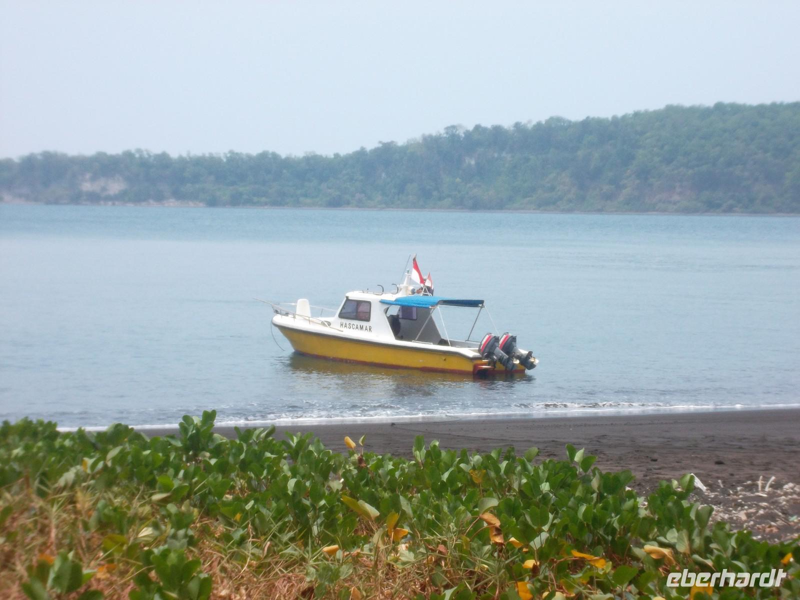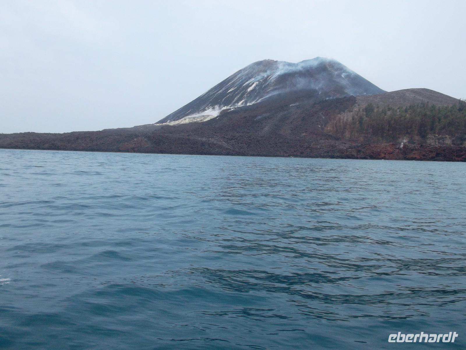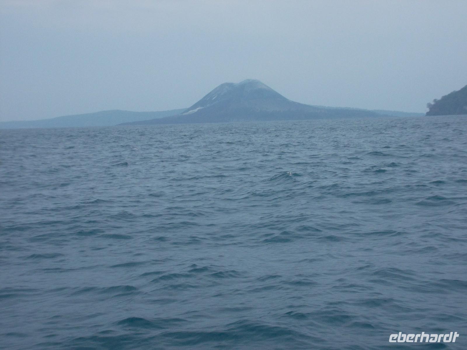 Seit 1927 entsteht am Ort des damaligen Ausbruches eine neue Insel vulkanischen Ursprungs - Anak Krakatau (Kind des Krakatau) beherbergt seit 1927 einen tätigen Vulkan und war unser erstes Ziel. Wer wollte, konnte einen Spaziergang auf die Bergflanke des Krakatau-Vulkans machen. Nach dem Mittagspicknick fuhren fuhren wir mit den Booten zu einem der Überbleibsel der Originalinsel, landeten an einer kleinen Sandbucht und hatten Möglichkeit und Zeit genug zum Schwimmen in der klaren (leider recht warmen) Sundasee und viele von uns haben die Möglichkeit genutzt. Ein bißchen erfrischend war es dann ja doch.