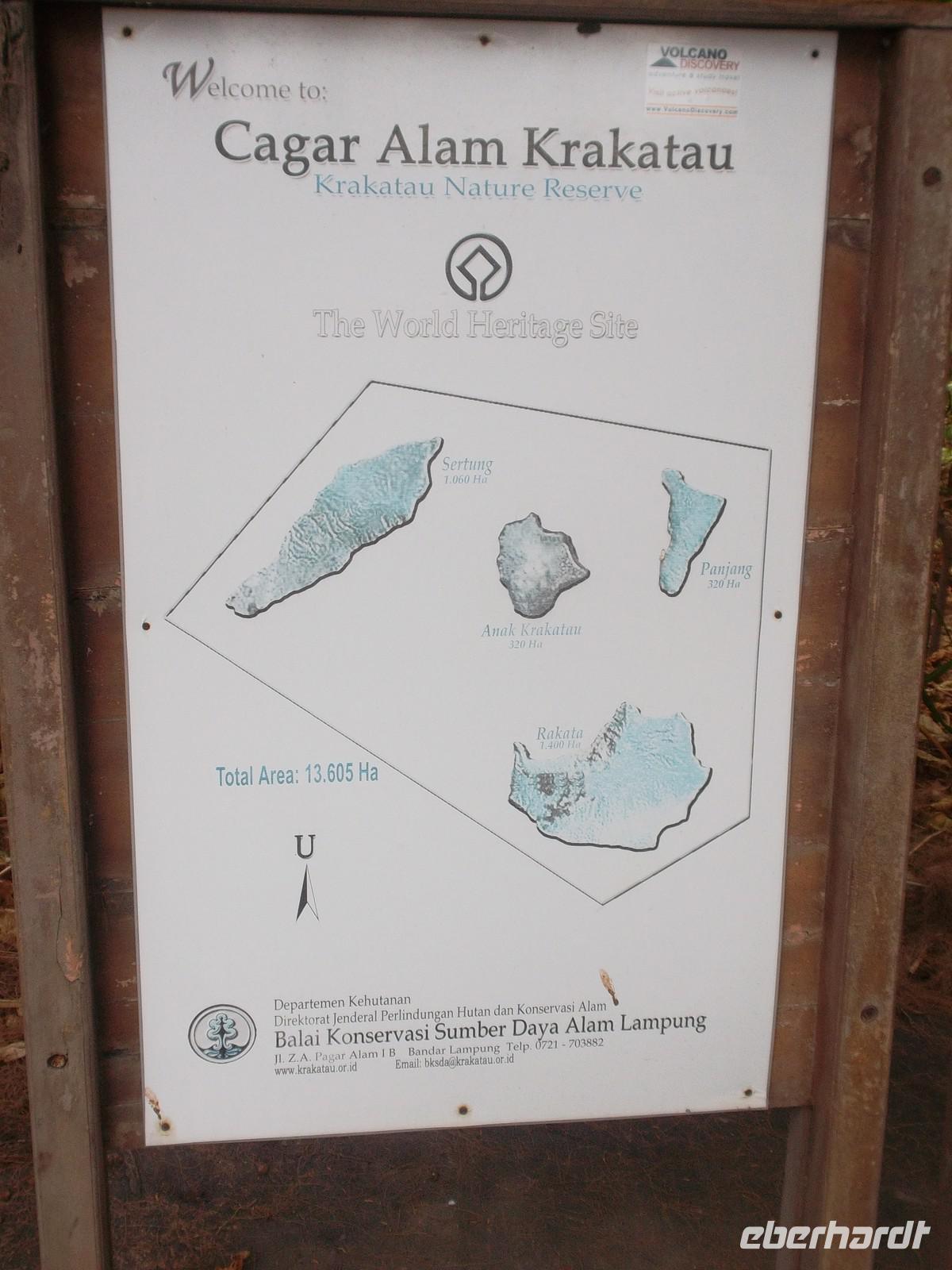 Die ungeheure Eruption, zerstörte die gesamte Vulkaninsel am 27. August 1883. Mehrere Kubikkilometer Asche und Gestein schleuderte der Vulkan damals bis in eine Höhe von 25 km in die Erdatmosphäre. Er verursachte den gewaltigsten Tsunami der Geschichte (angeblich mehr als 49 m hoch) und verwüstete die Umgebung. Als Folge der vulkanischen Explosion soll die Luftdruckwelle noch nach fünf Tagen und sieben Erdumläufen messbar gewesen sein und die Flutwelle wurde auch noch in Europa an den Pegeln im Golf von Biskaya, 17.000 Kilometer von ihrem Ursprung entfernt, und entlang des Ärmelkanals als Ausschlag von 2 cm aufgezeichnet.