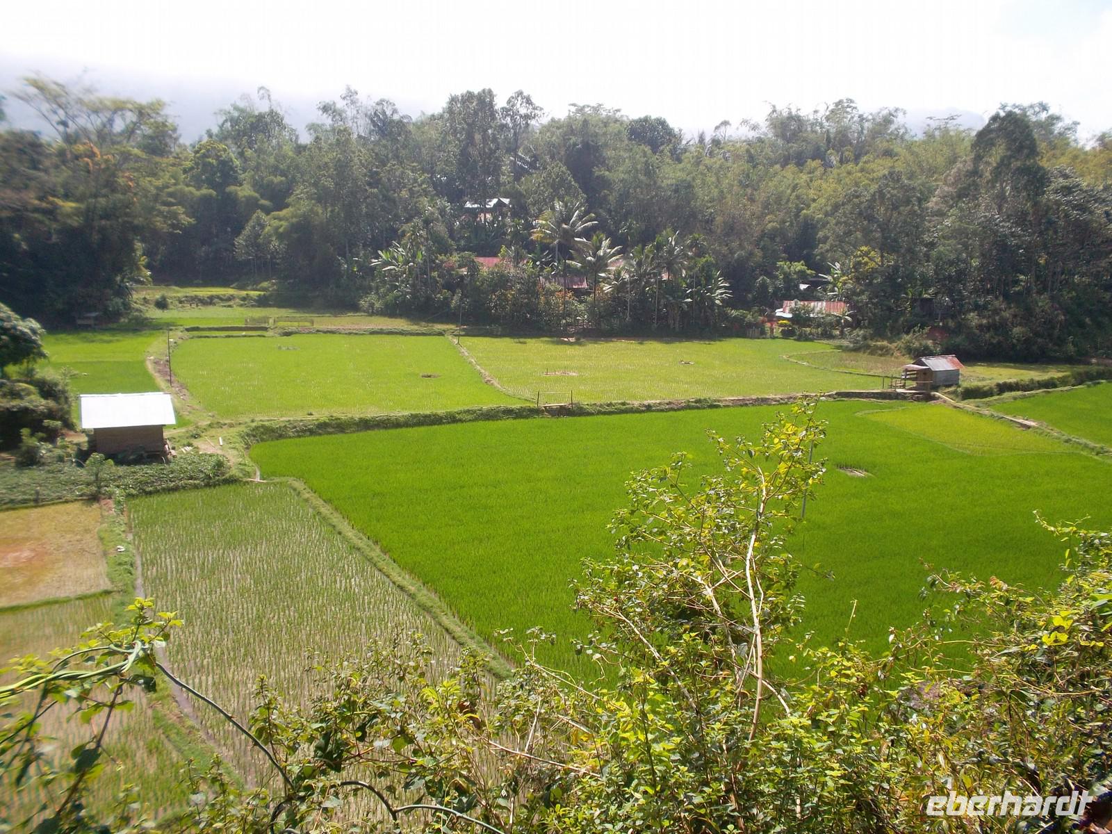 Die weitere Fahrt führte in die Berge, wo wir unser Mittagessen bei Batutumonga, den berühmtesten Reisterrassen und Brachfeldern, einnahmen. Immer wieder durch Felsen durchbrochen - in fast jeden wurden und werden Kammern für Familienbegräbnisse geschlagen - wand sich die schlechte Straße durch Reisfelder und Begräbnisfelsen. Seit Jahrhunderten ist das hier Tradition - wenn die aus dem Granit herausgearbeiteten Grabkammern zu klein werden, lässt man für neue Begräbnisse ein neues Felsengrab ausmeißeln. Mit grandiosen Blicken über die Reisterrassen brachte unser Van uns zurück zum Hotel, wo uns ein schmackhaftes Abendessen erwartete.