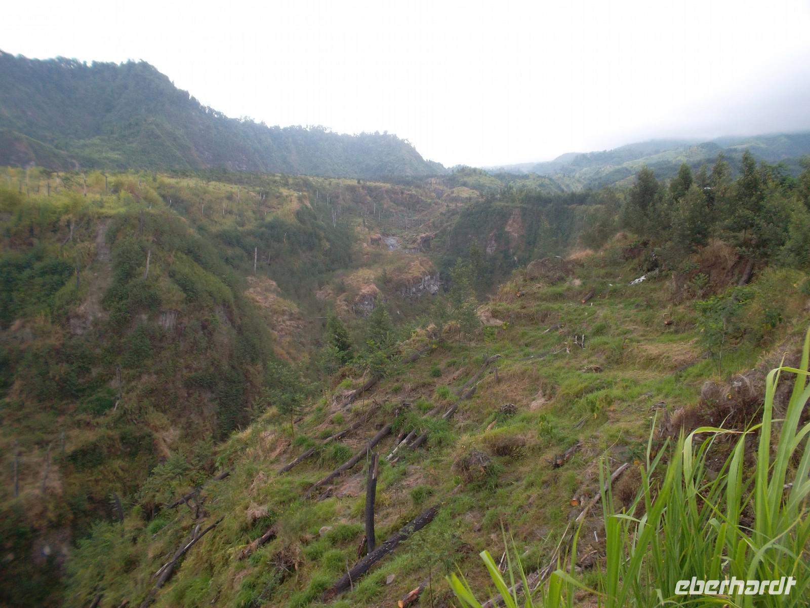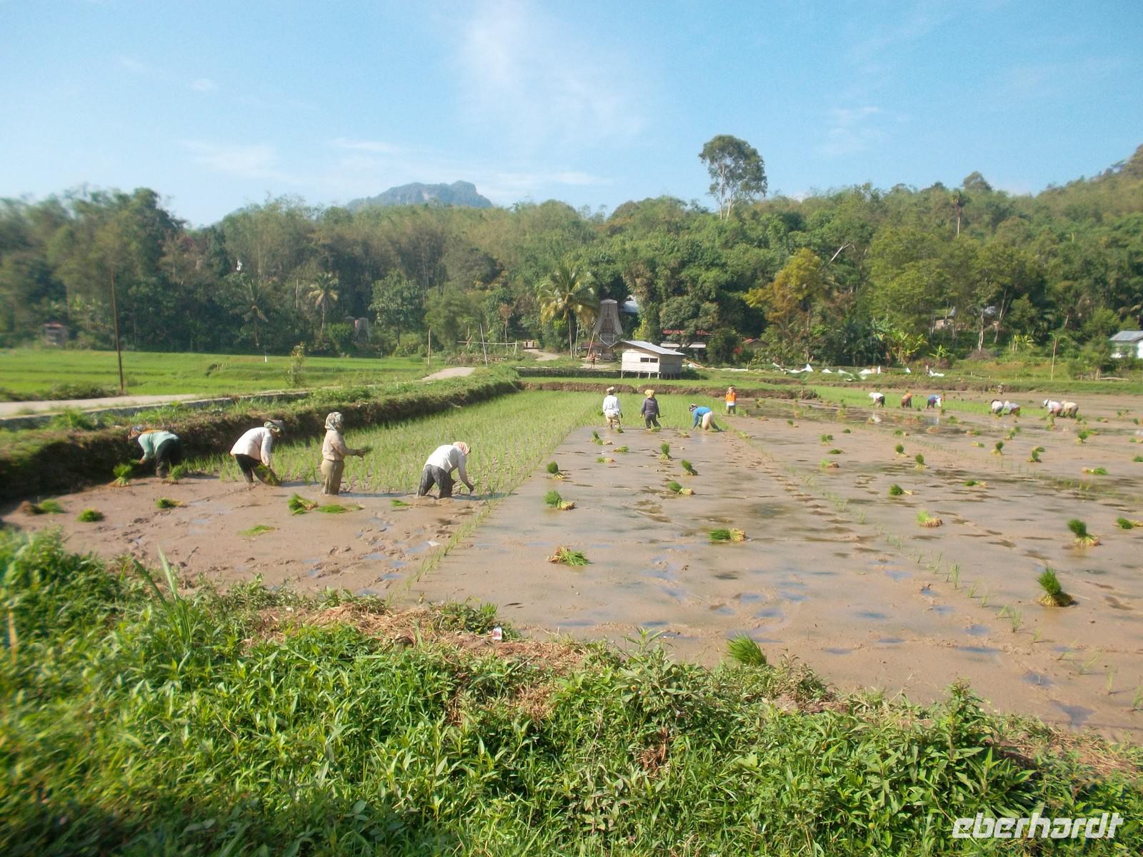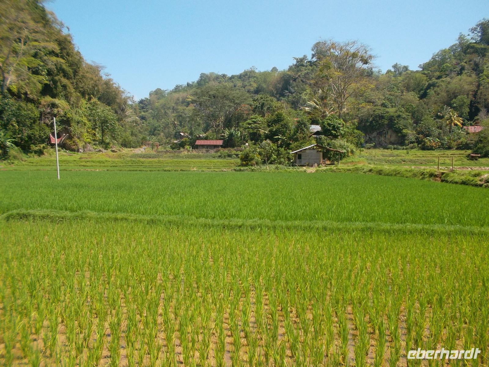 Unser Weg führte über die Hauptmagistrale an der Ostküste fast genau nach Norden. Geplant ist schon lange eine vierspurige Autobahn, aber in Wirklichkeit gibt es hier so etwas wie eine hunderte Kilometer Baustelle. Durch den teilweise schlechten Straßenbelag wurden wir ab und zu etwas durchgeschüttelt. Mehrere große Volksstämme - vor allem Makassaren und Buginesen - bevölkern den Süden Sulawesis. Altmalaien leben hier auf der Insel, von denen die Torajas in ihrem bekannten Hochland die ältesten sind. Neben den muslimischen Süd-Insulanern sind die Torajas - wiewohl offiziell Christen - noch mit ihren alten, aus der Steinzeit übernommenen Bräuchen verbunden. Für Touristen interessant und weithin bekannt sind sie vor allem für ihre prächtigen Häuser, Zeremonien und Bestattungsriten.