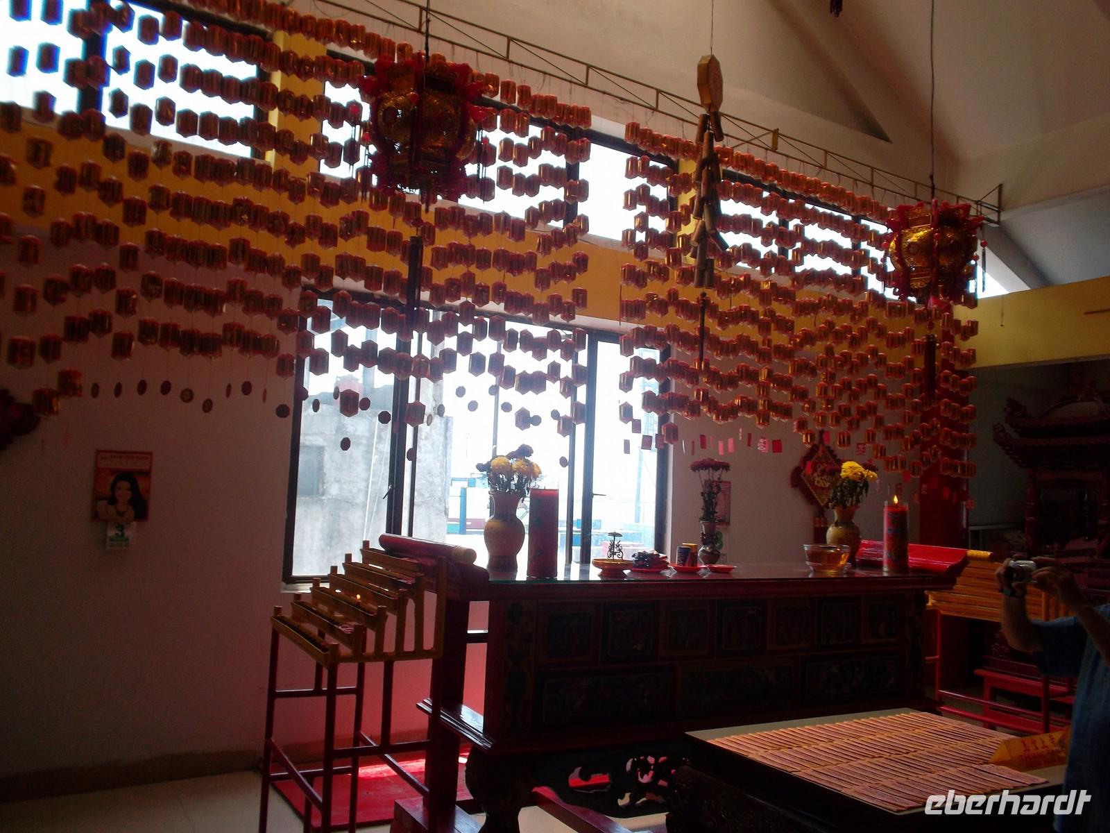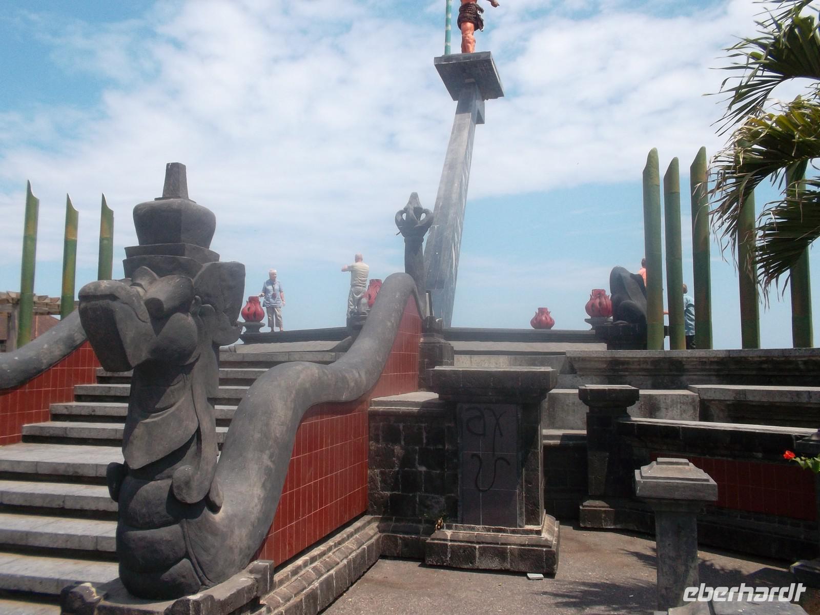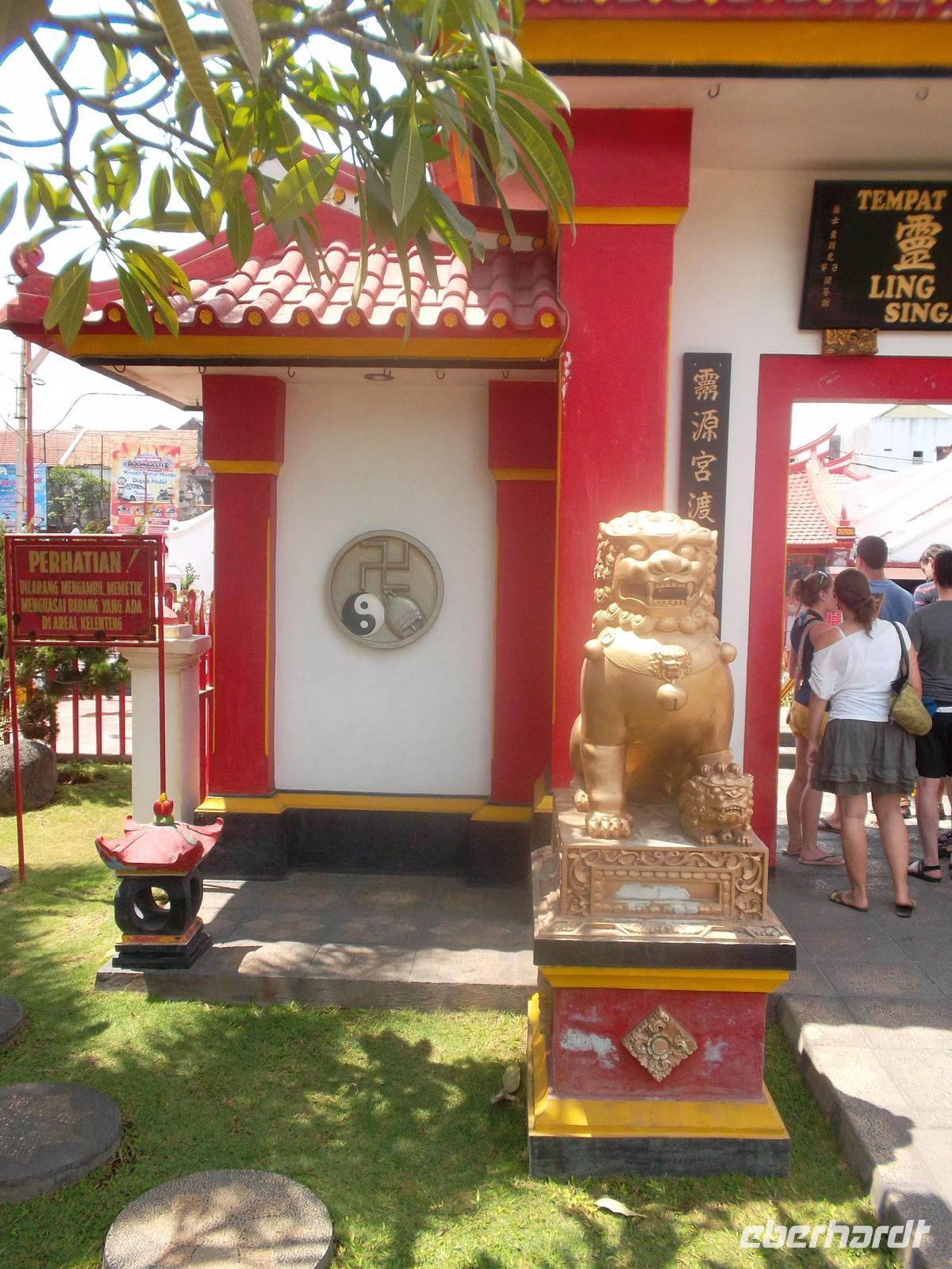 Nach dem tollen Frühstück begann das eigentliche Tagesprogramm mit einer kleinen Rundfahrt. Balis alte Hauptstadt Singaraja, ist noch in vielen Teilen von einstiger kolonialer Architektur geprägt, auch wenn der Hafen heute nur noch an einigen Anlegestellen und dem großen Hafenmonument als solcher zu erkennen ist. Nahebei konnten wir noch den bekanntesten chinesischen Tempel besuchen, den es im Norden Balis gibt.