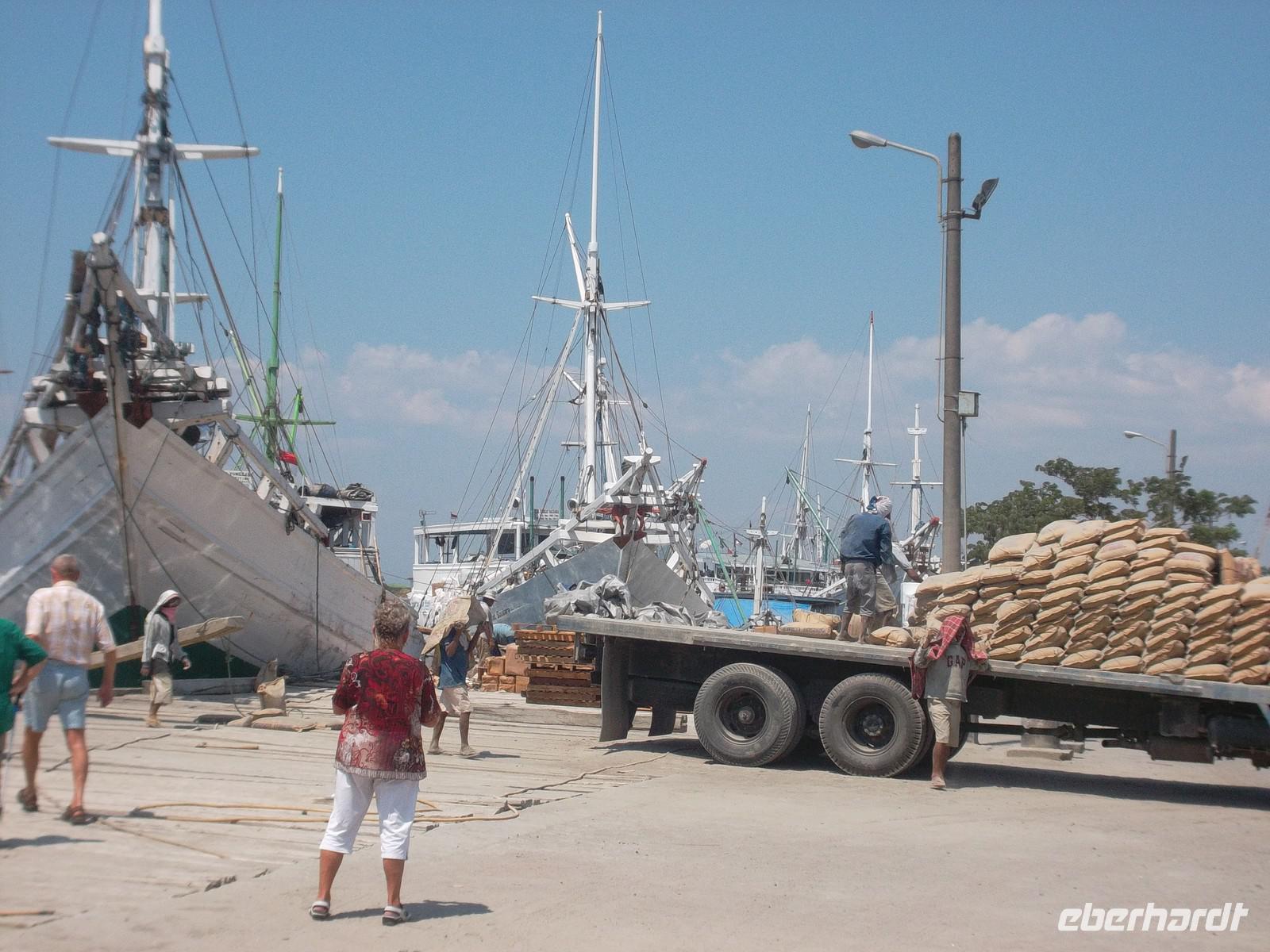Erst abends würden wir zum Flughafen fahren, also konnten wir einen erholsamen Vormittag genießen. Gegen Mittag machten wir uns zu einem kleinen Stadtrundgang in Makassar auf. Seit mehreren hundert Jahren als Handels- und als Machtzentrum lokaler Könige bekannt, errichteten schon früh europäische Handelsmächte hier Niederlassungen. Die Portugiesen begannen hier um 1532, später folgten 1603 die Holländer, dann ging es weiter 1613 mit Errichtung des englischen und sogar 1618 des dänischen und eines chinesischen Handelspostens. Makassar wurde zur „Drehscheibe des Gewürzhandels" - um 1620 lebten bereits rund 500 portugiesische Händler hier, weswegen 1633 der Bau der ersten katholischen Kirche erfolgte, die erst später mit der Zerstörung des Stadtzentrums durch Holländer verschwand.