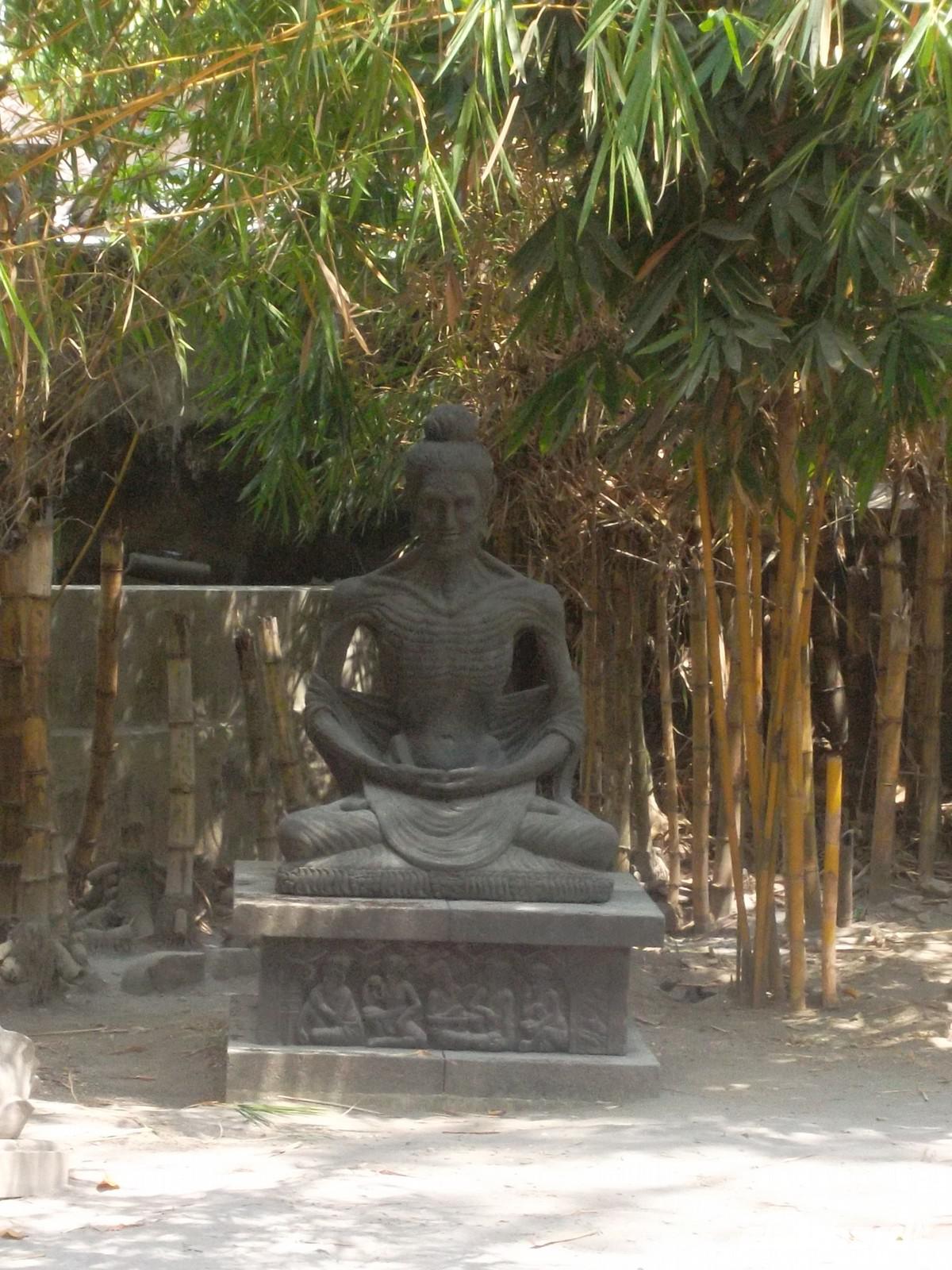 Am Mendut-Tempel gab es nicht nur allerlei Händler, sondern auch ein noch ein aktives, von Mönchen bewohntes Kloster, in dem wir allerlei interessante Fotos - wie z.B. vom lebensspendenden Lotos, der Figur des „Buddha als Asket" oder von hübschen Nebentempeln machen konnten.