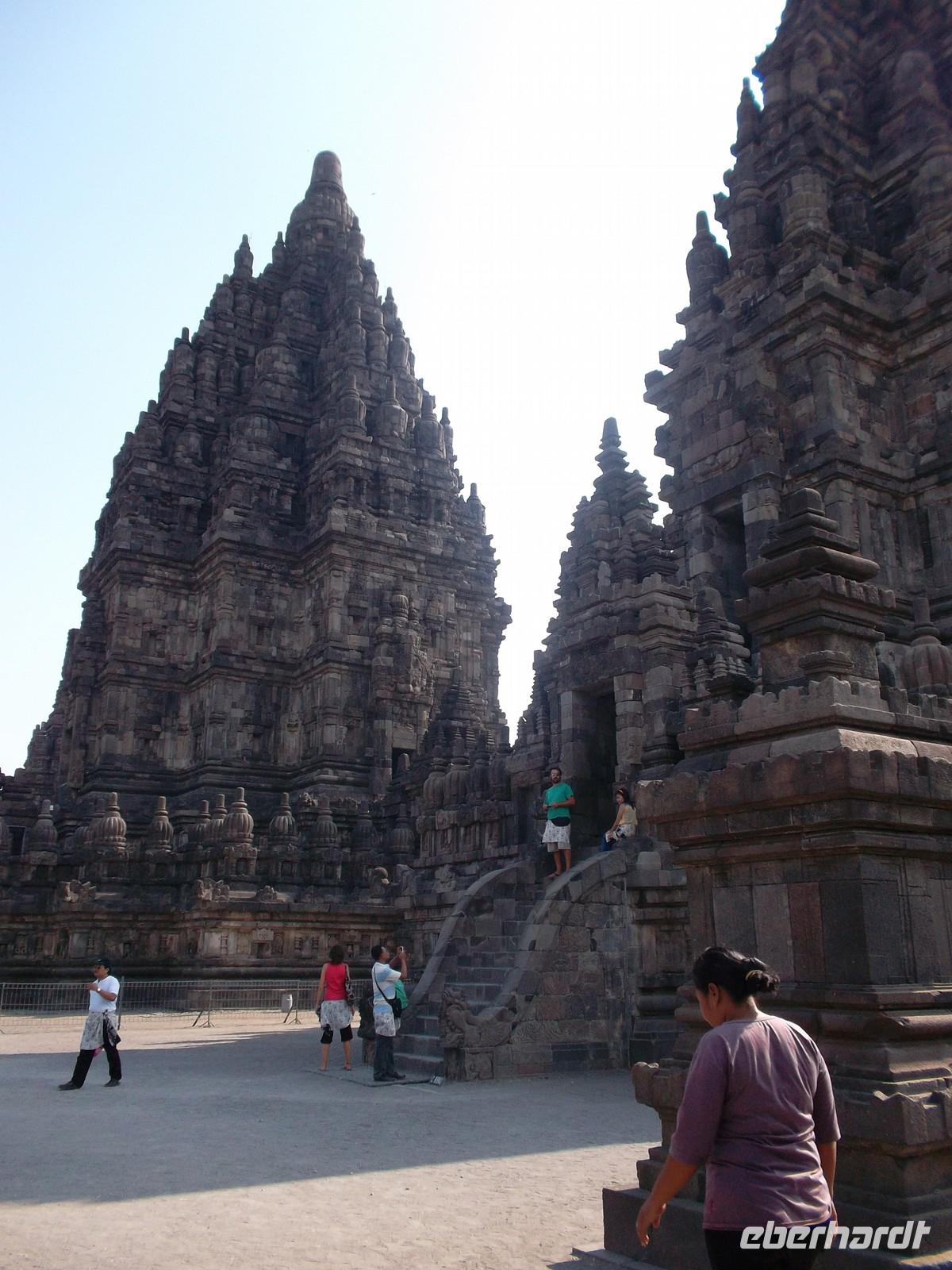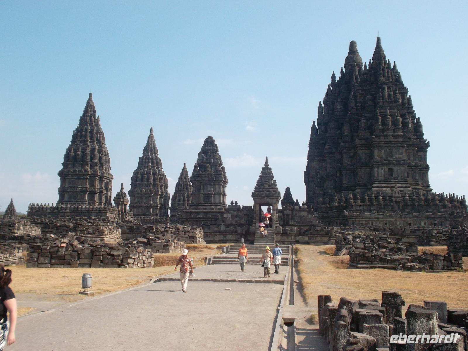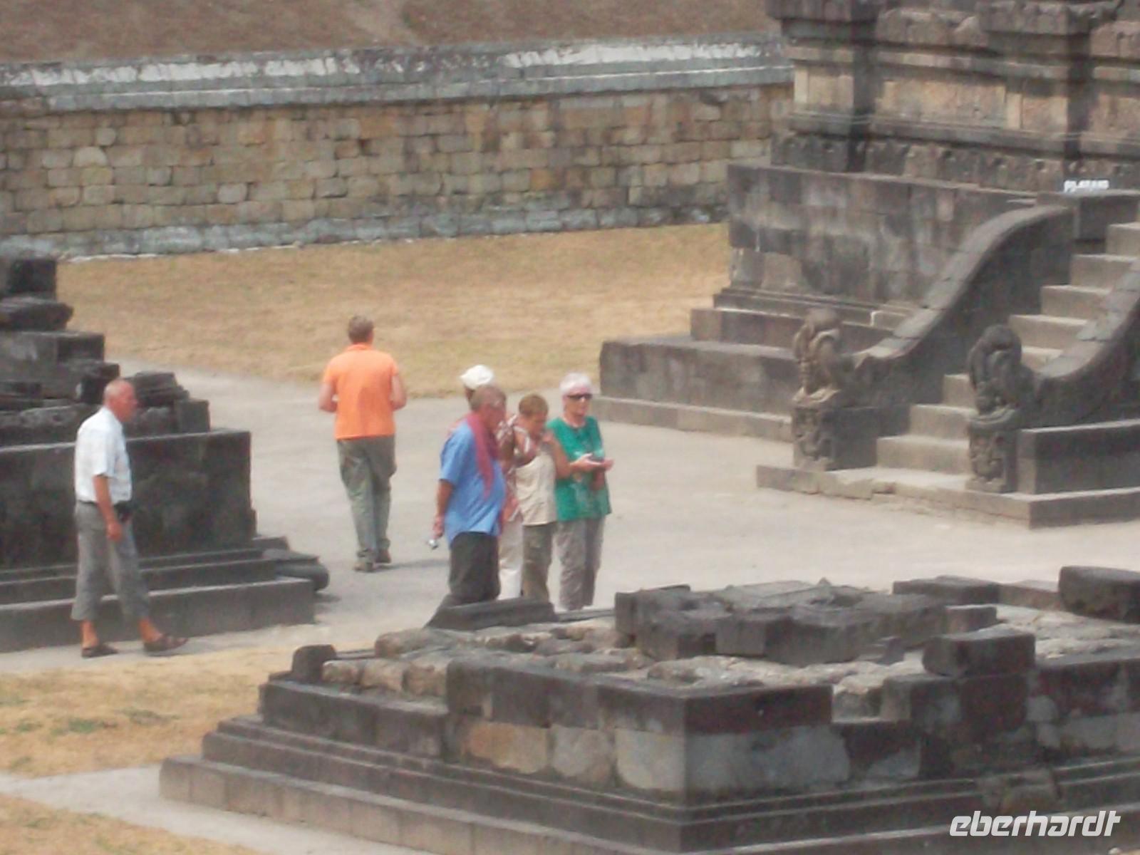 Danach ging es zu einem weiteren Höhepunkt, dem Besuch des Tempelbezirkes von Prambanan. Die größte hinduistische Tempelanlage Indonesiens, etwa 18 km östlich von Yogyakarta, wurde um das Jahr 850 erbaut, aber schon bald nach seiner Fertigstellung verlassen und begann zu verfallen.