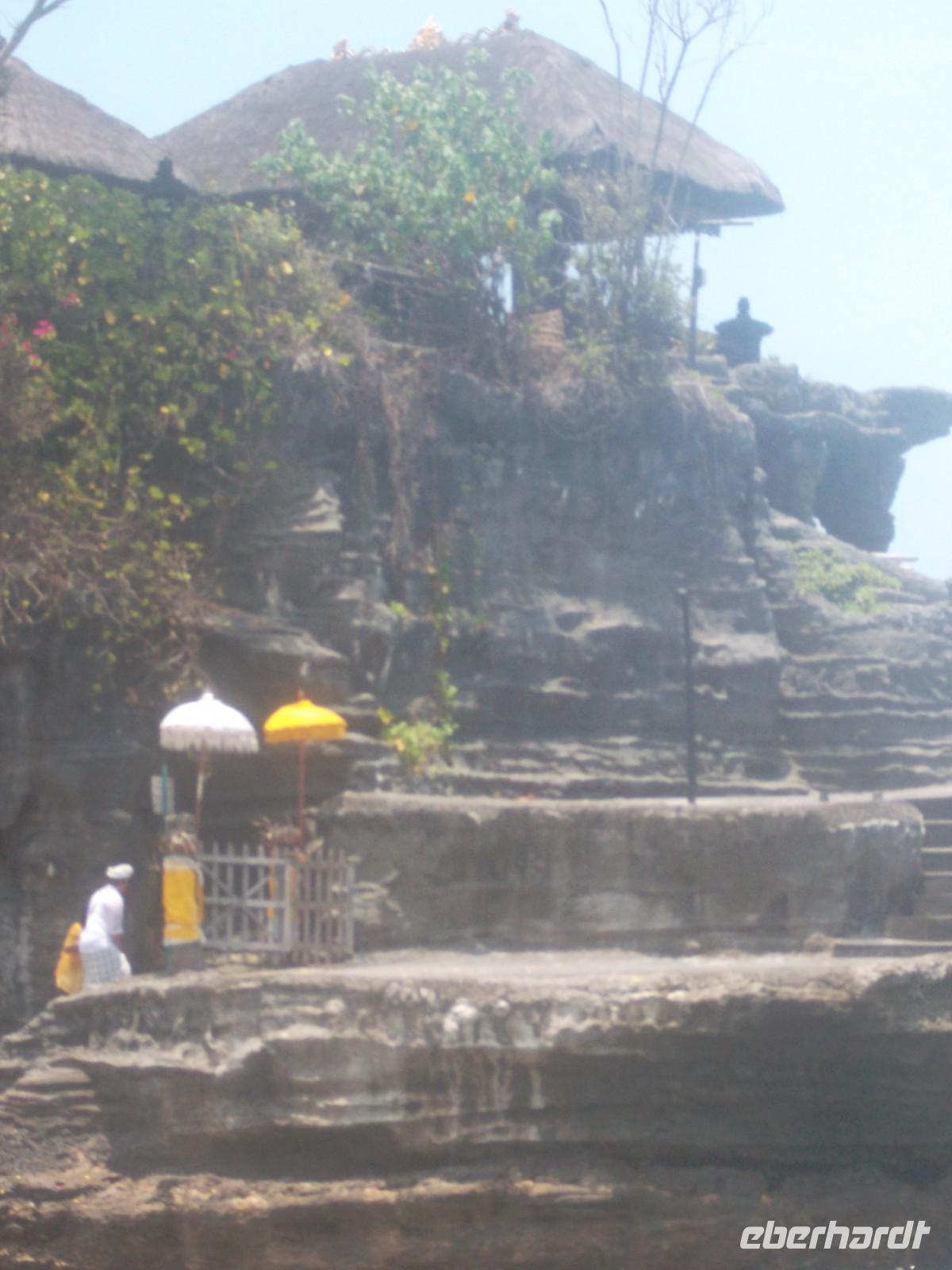 Es lohnt sich, an der Küste gegenüber Tanah Lot zu bummeln und an der Landspitze phantastische Aufnahmen vom in der Brandung liegenden Meerestempel zu machen.