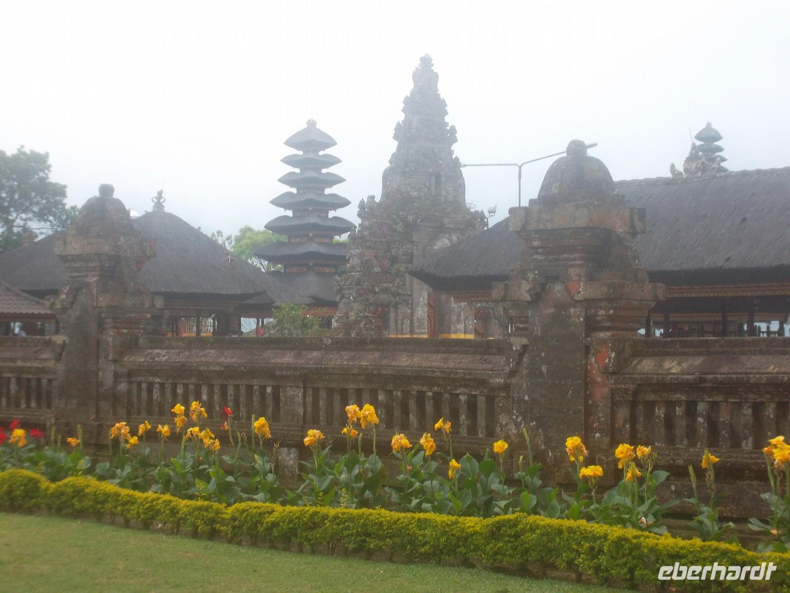 Anschließend fuhren wir durch das Hochland von Bedugul und statteten dem scönhen Temperl Ulun Dalu einen Besuch ab. Seine filigranen pagodenähnlichen Türme mit demn mehrstufigen palmenbast-gedeckten Dächern scheinen geradezu auf den Wassern des Vulkansees Bratan zu schwimmen.
