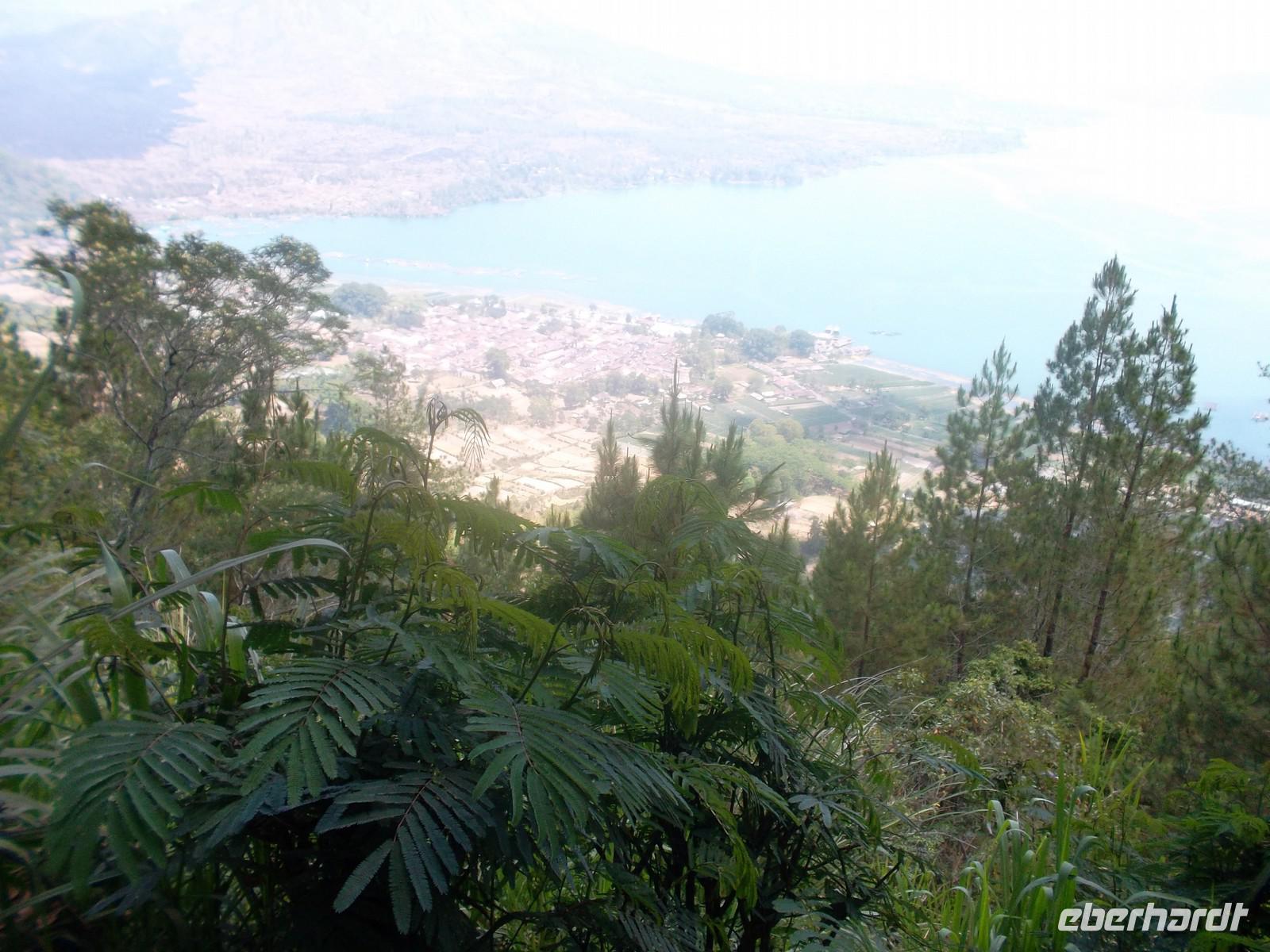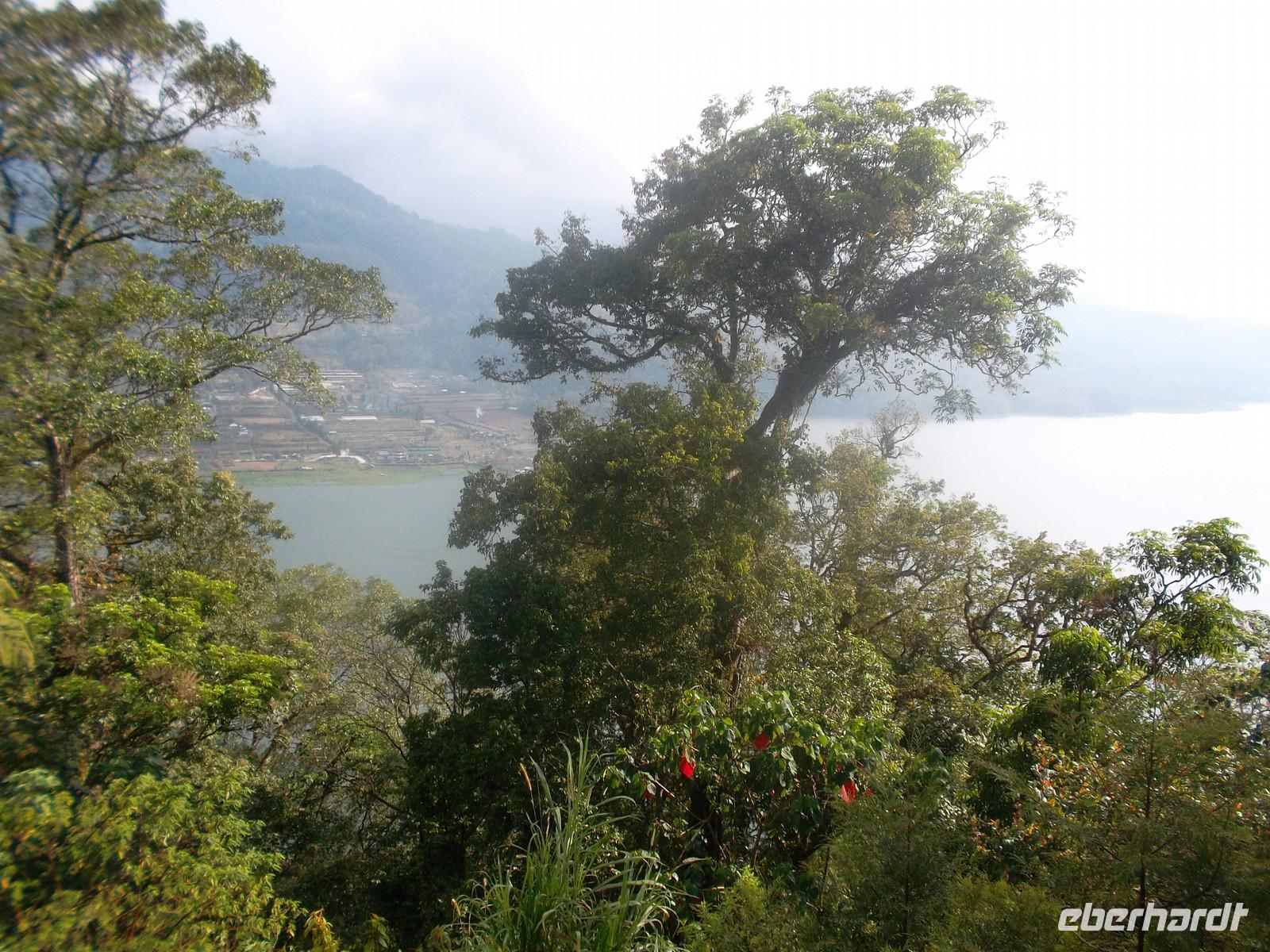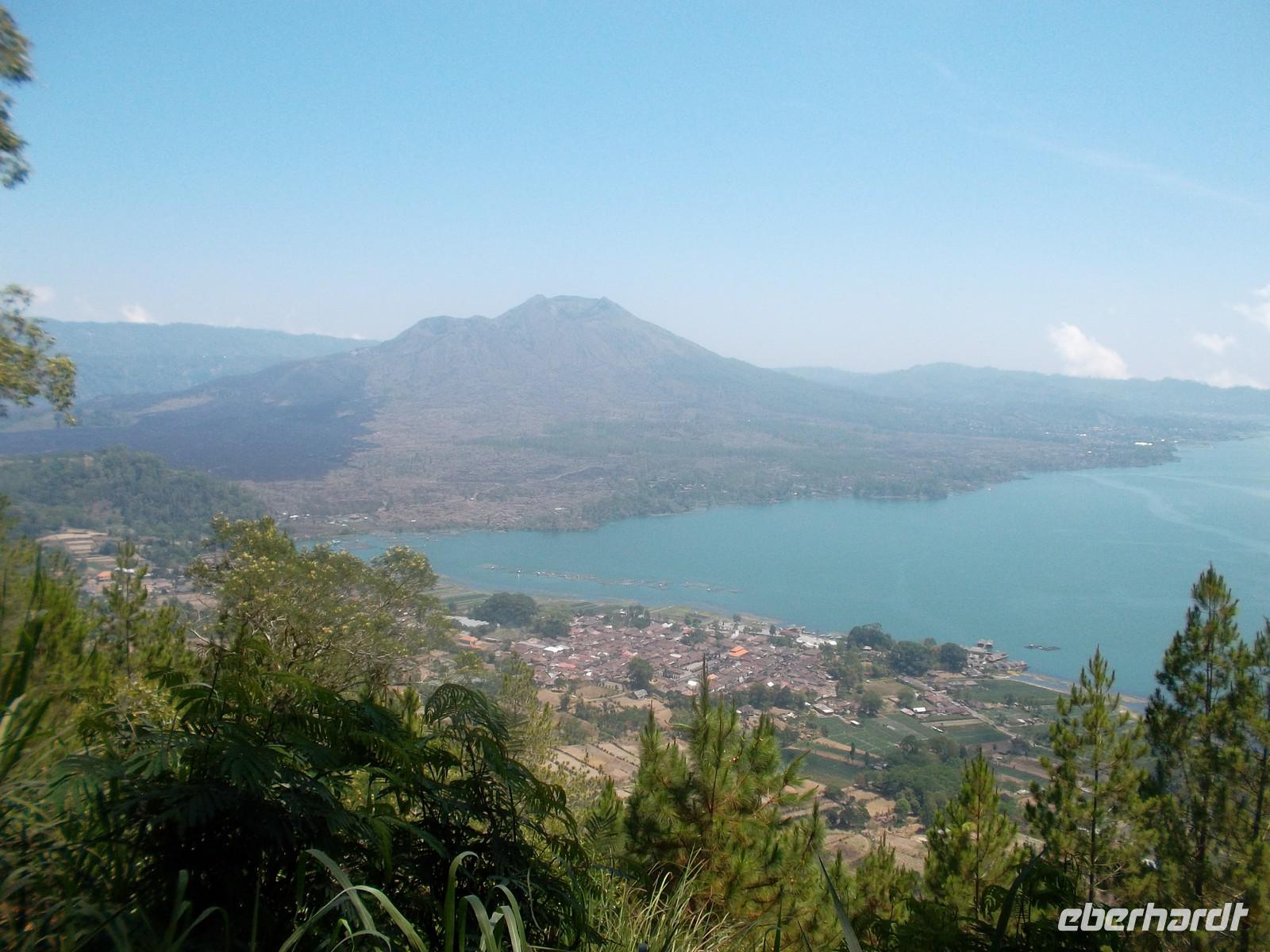 Leider mussten wir uns heute vom Puri Bagus Hotel verabschieden. Auf der Weiterreise durchquerten wir Bali erneut, die 5.561 km² große Insel mit ihren vier Millionen Einwohnern.Wie die meisten indonesischen Inseln ist auch Bali vulkanischen Ursprungs, deren ersten bedeutenden Vertreter, den Gunung Batur, wir gut sehen konnten. Der 1717 m hohe eigentlichen Batur liegt inmitten eines wesentlich größeren Vulkankraters und man kann ihn von der Höhenstraße aus gut sehen und fotografieren. Dicht dabenen liegt der Gunung Agung („Großer Berg"), mit 3.142 Meter höchster Berg der Insel und für die Balinesen der Sitz der Götter.