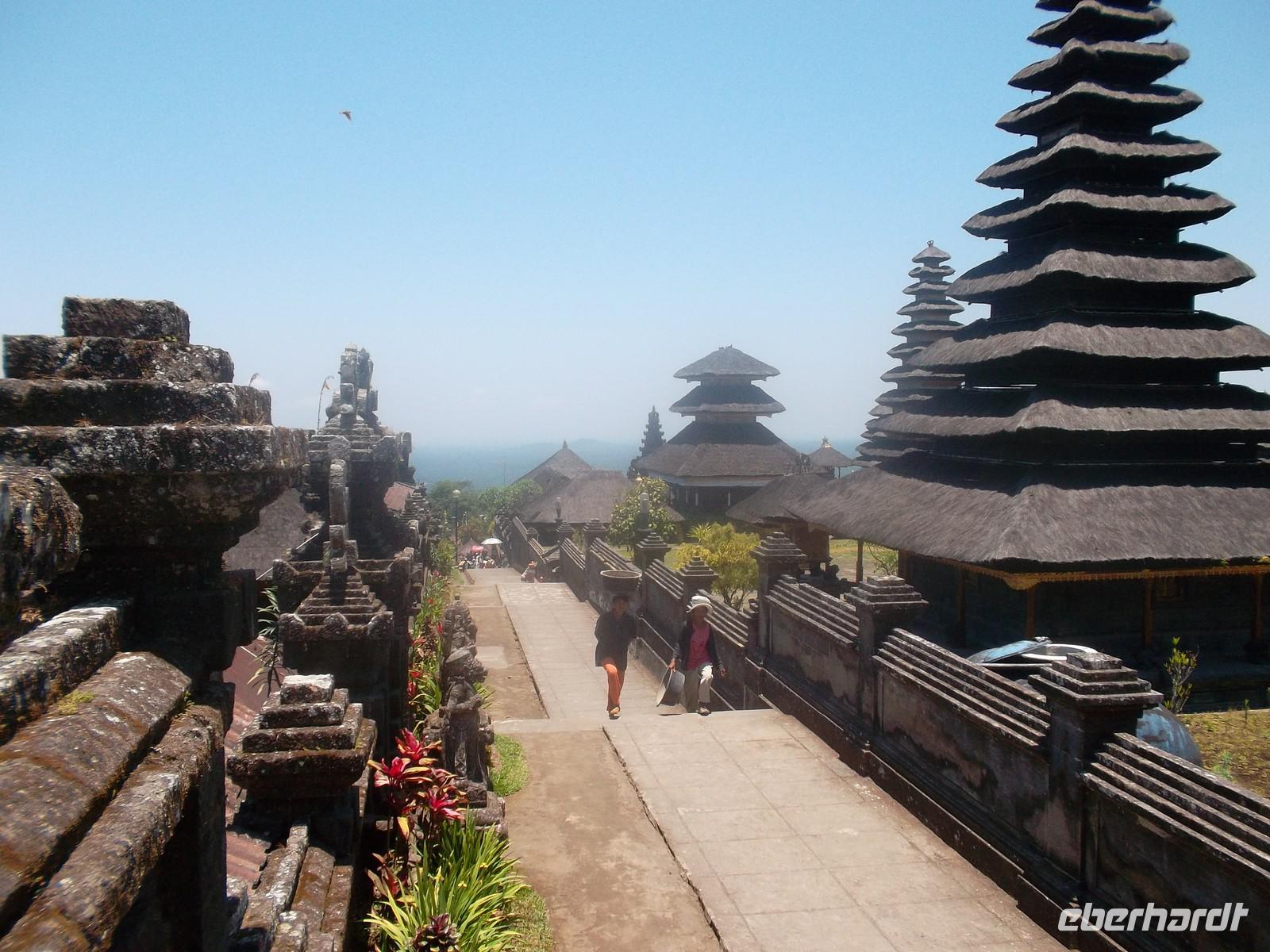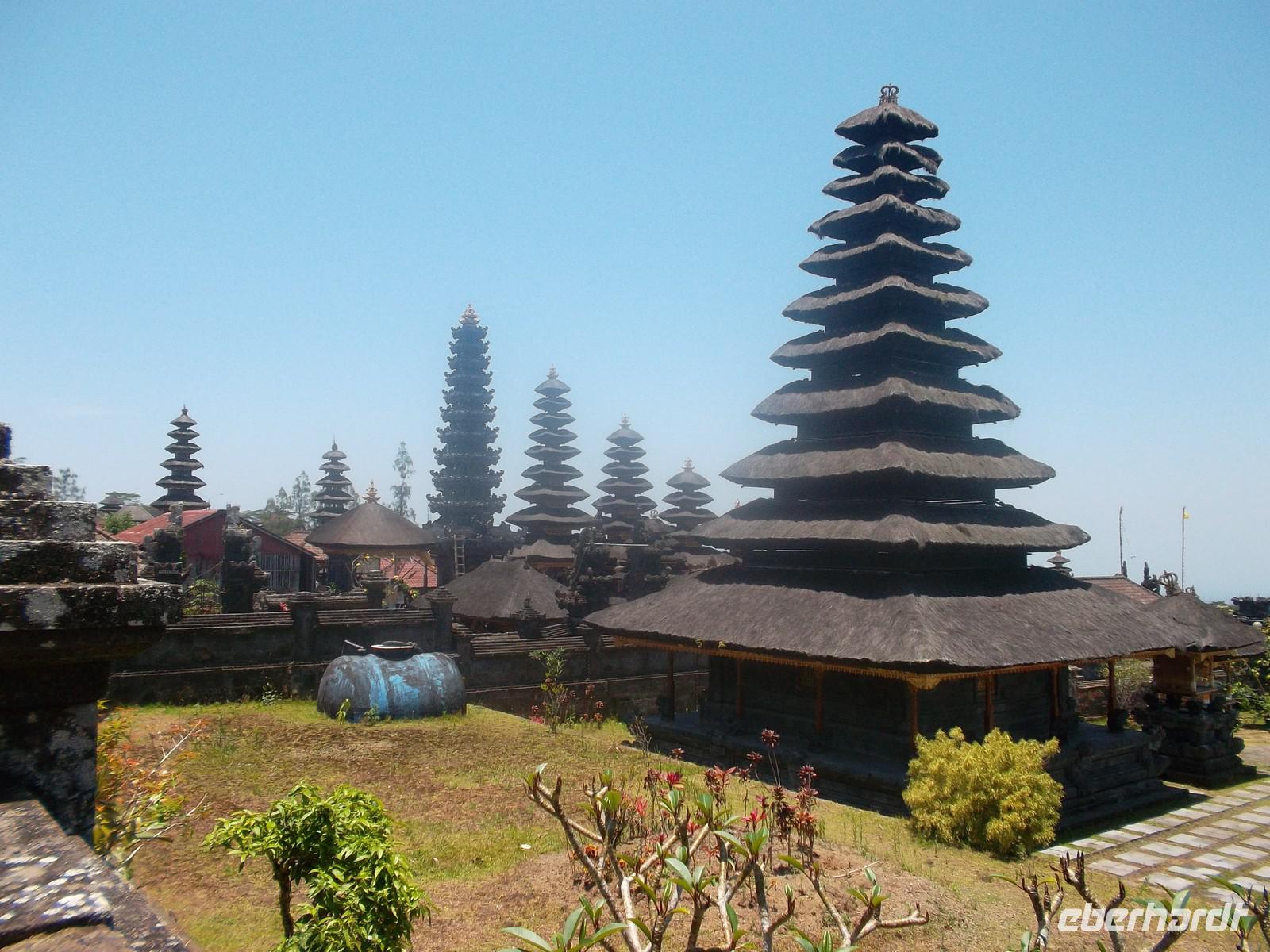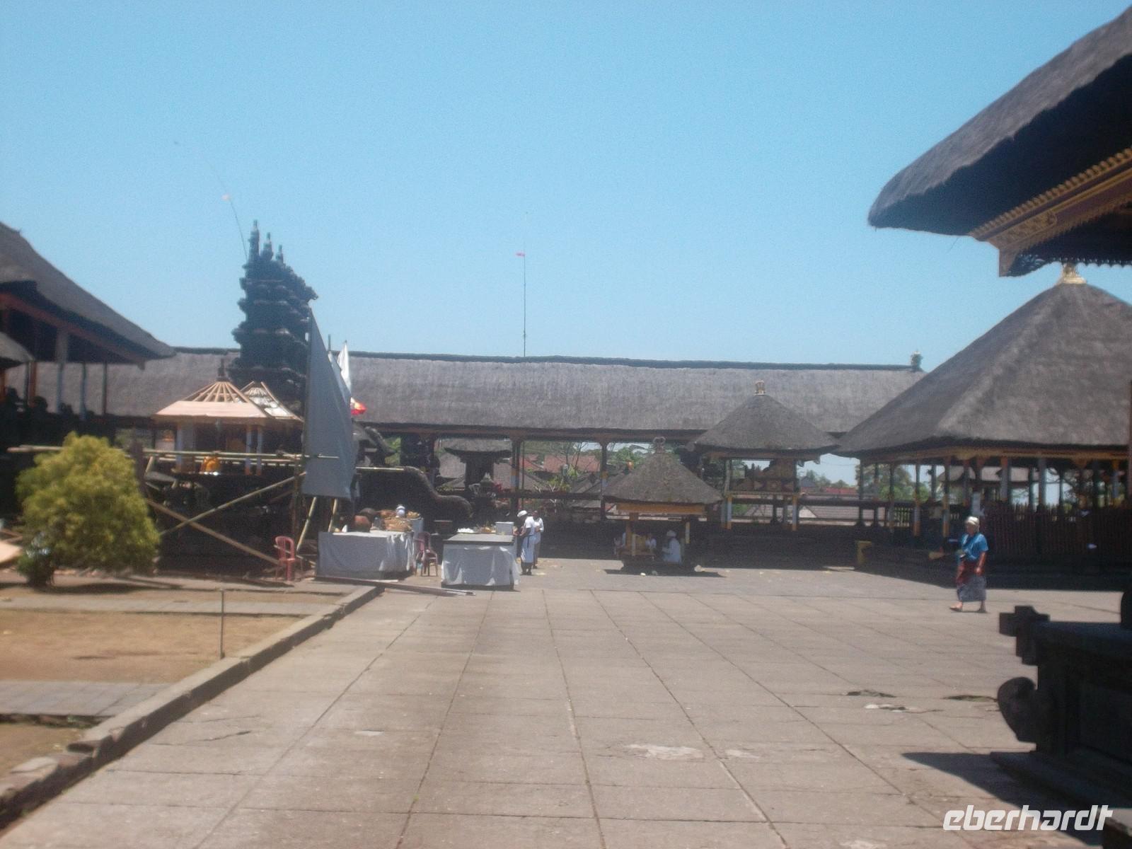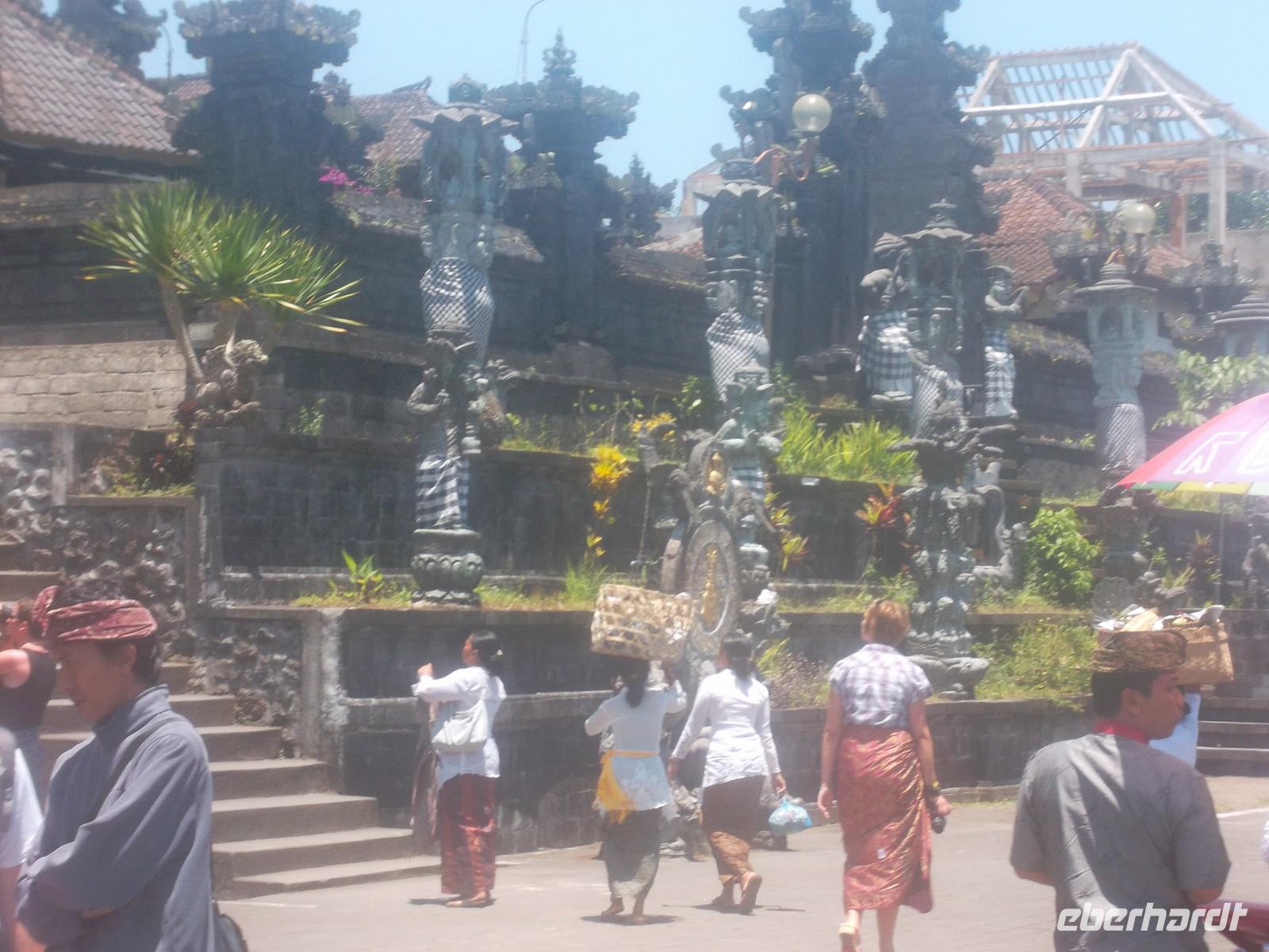 Im Zentrum liegt der Pura Panataran Agung Besakih, in dem der „eine" Gott - nach der indischen Terminologie als Trimurti, also als Hindu-Dreifaltigkeit Brahma-Shiva-Vishnu - verehrt wird. Zwar darf man die Tempelanlage komplett umrunden, aber Zutritt wird nur Gläubigen und nur an Feiertagen gewährt.