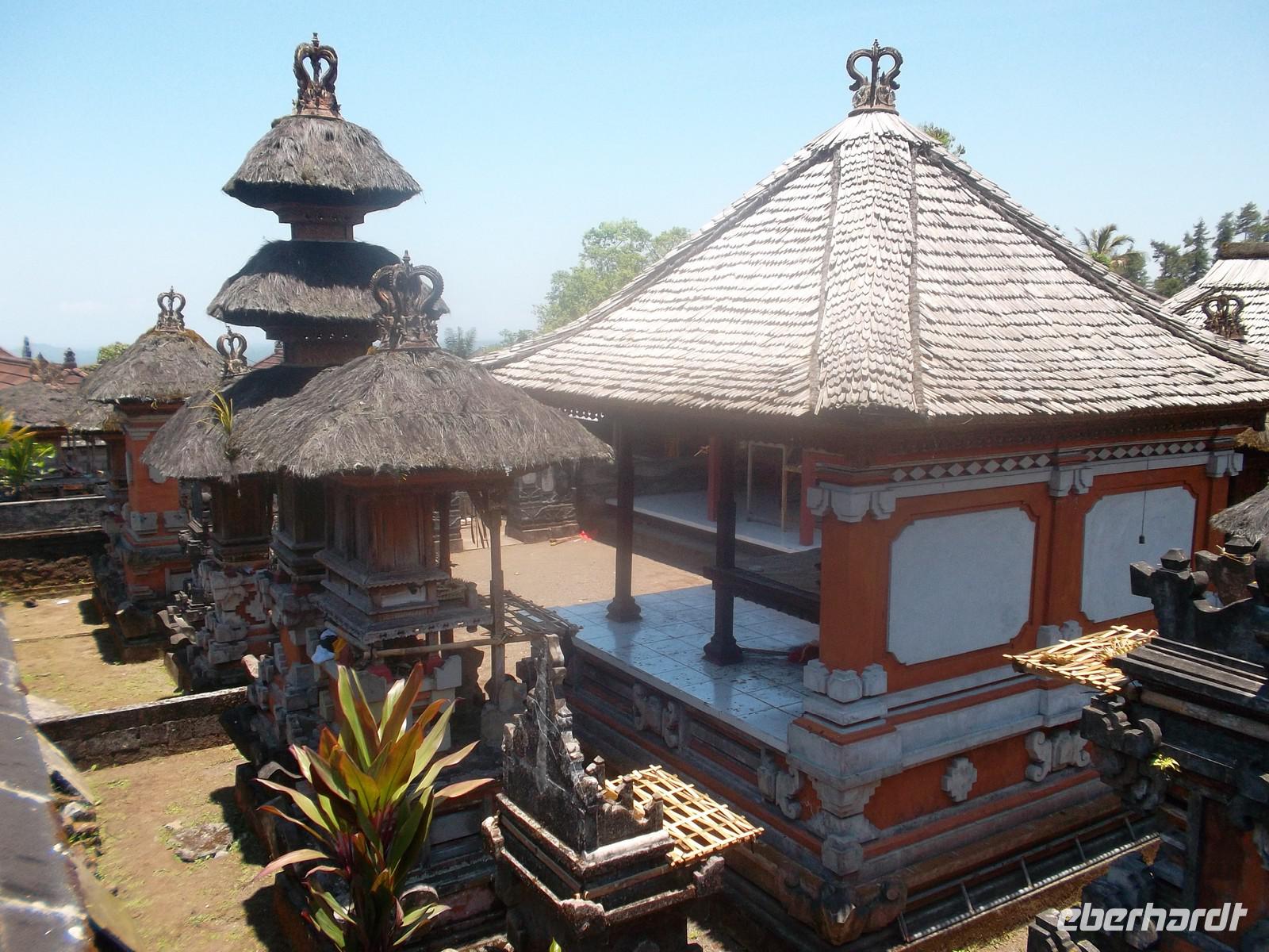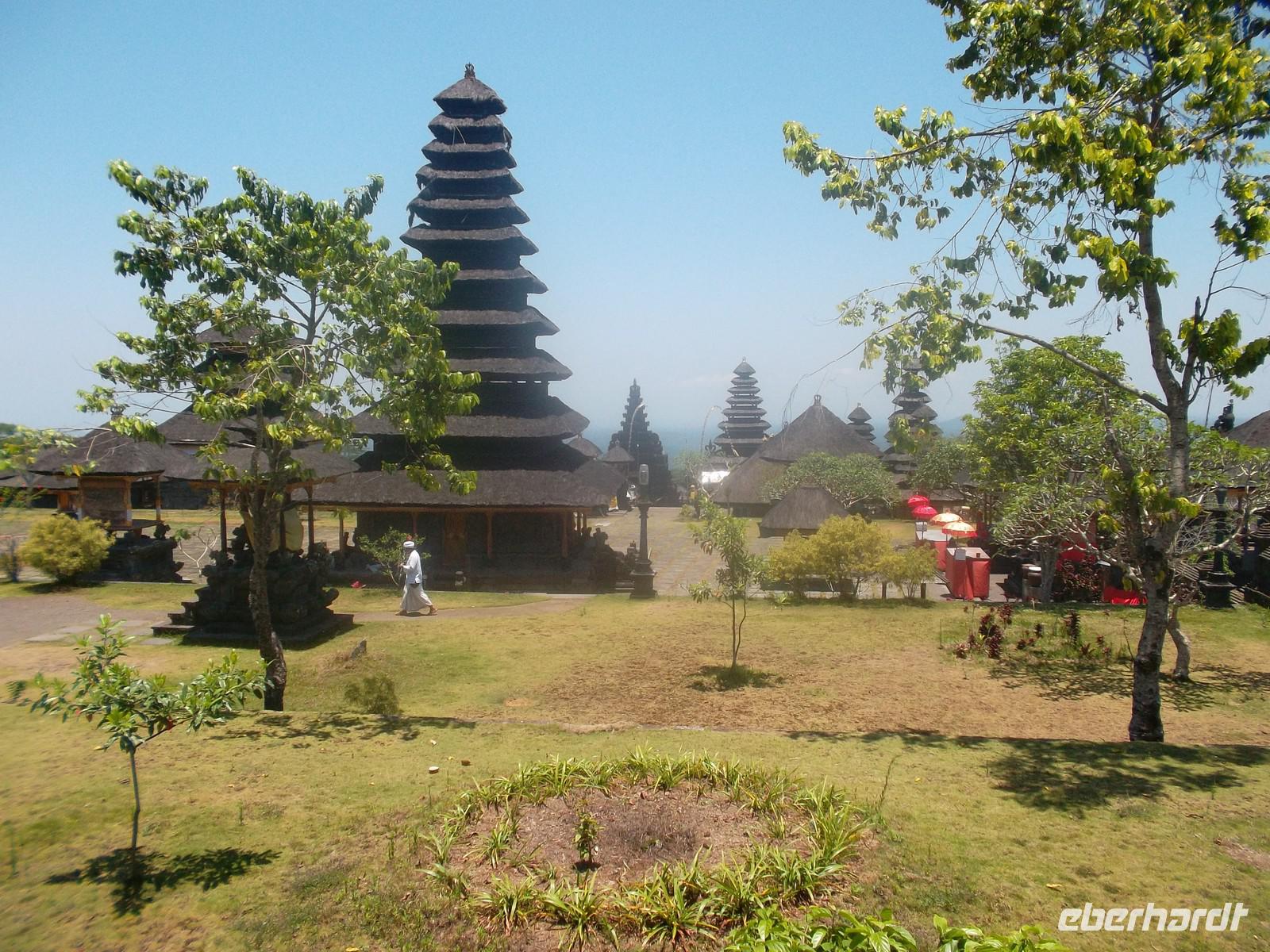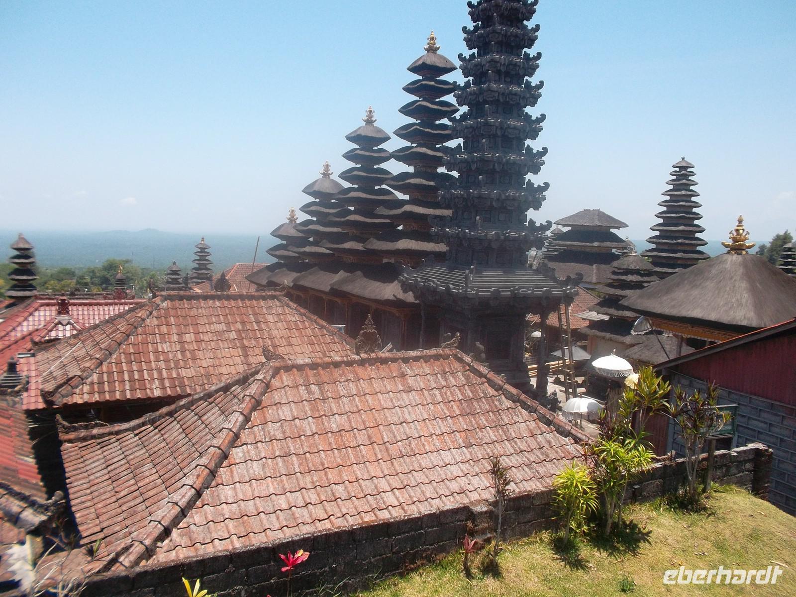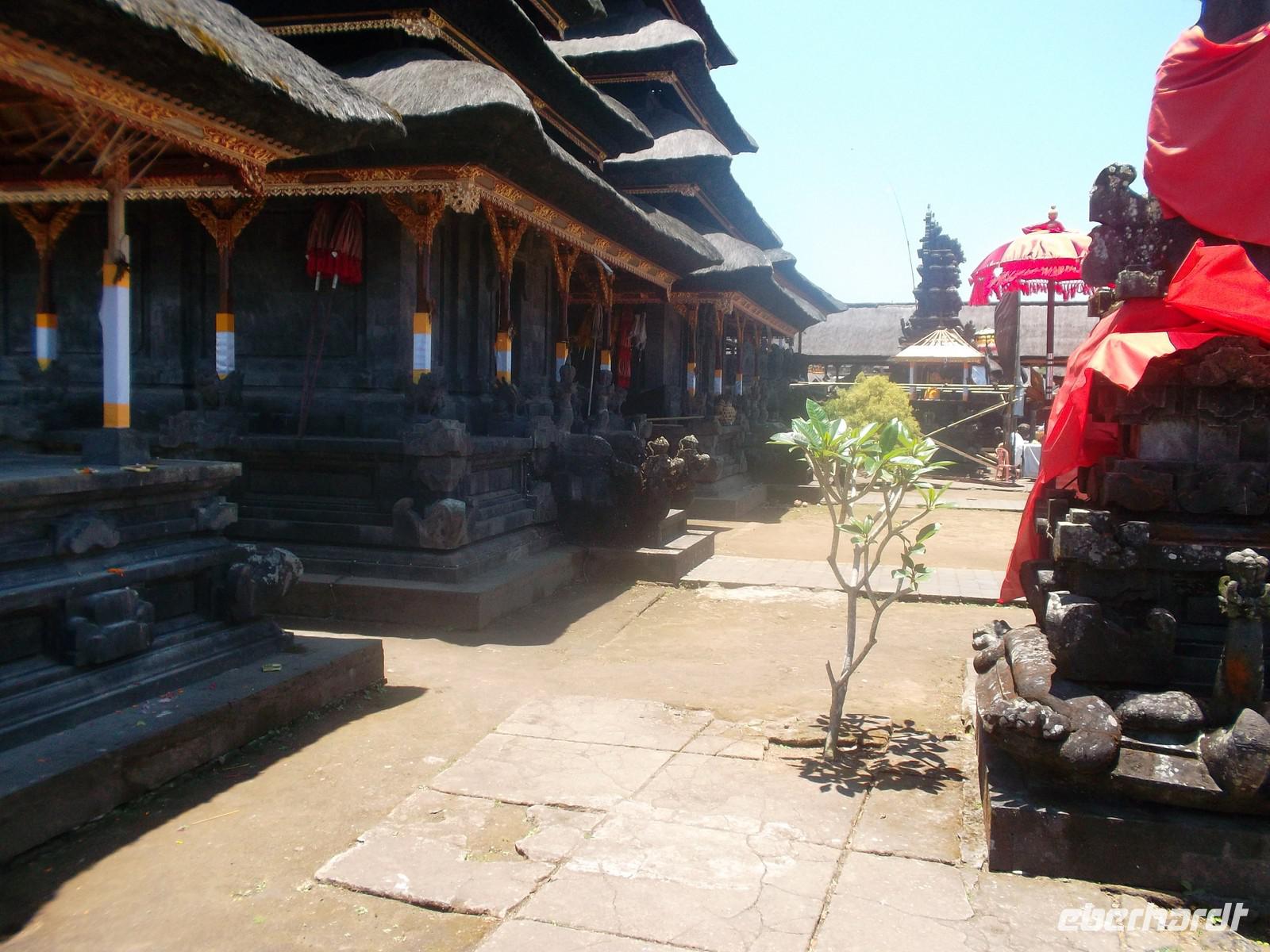 Im Zentrum liegt der Pura Panataran Agung Besakih, in dem der „eine" Gott - nach der indischen Terminologie als Trimurti, also als Hindu-Dreifaltigkeit Brahma-Shiva-Vishnu - verehrt wird. Zwar darf man die Tempelanlage komplett umrunden, aber Zutritt wird nur Gläubigen und nur an Feiertagen gewährt.
