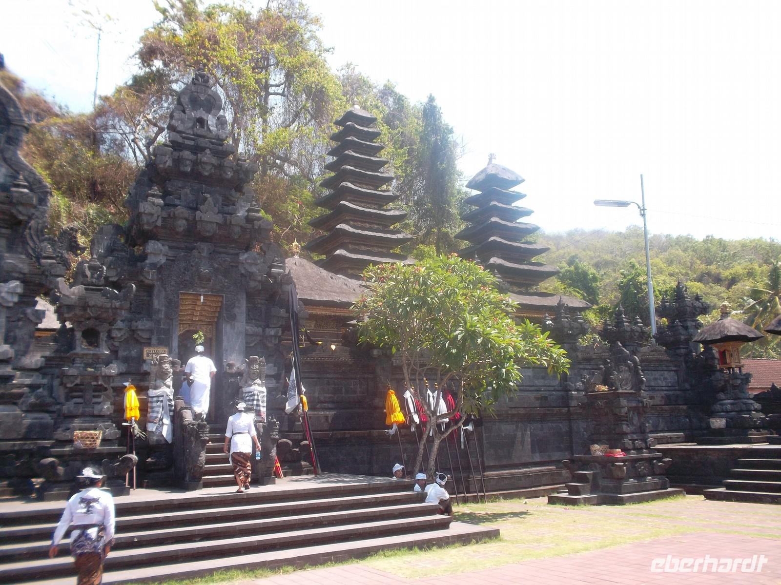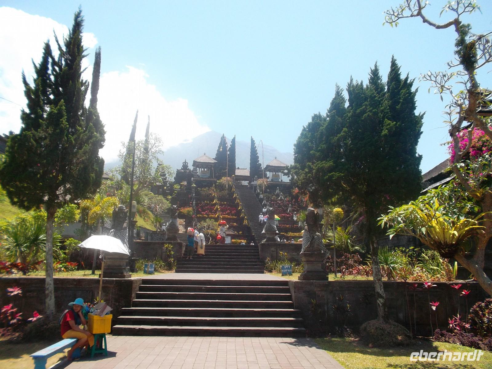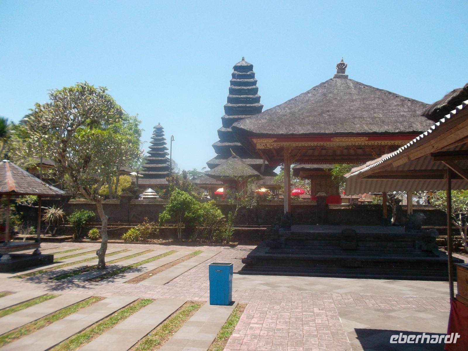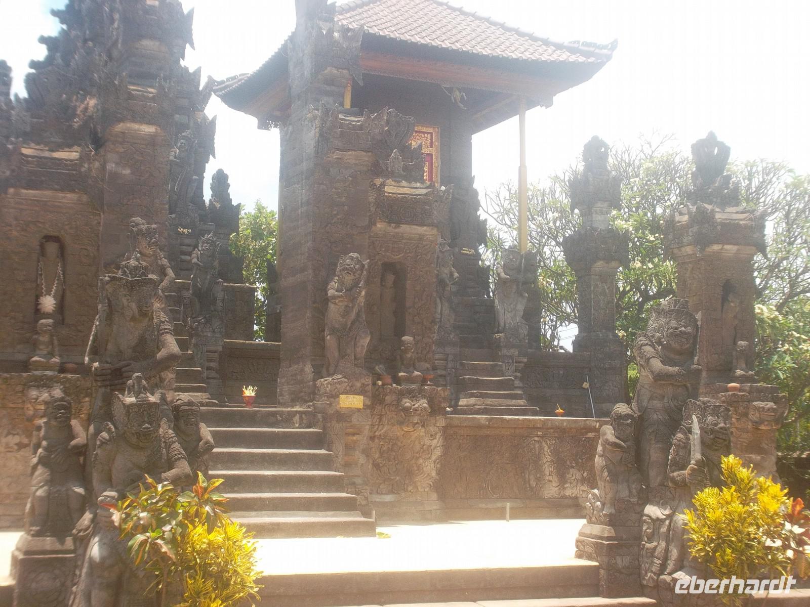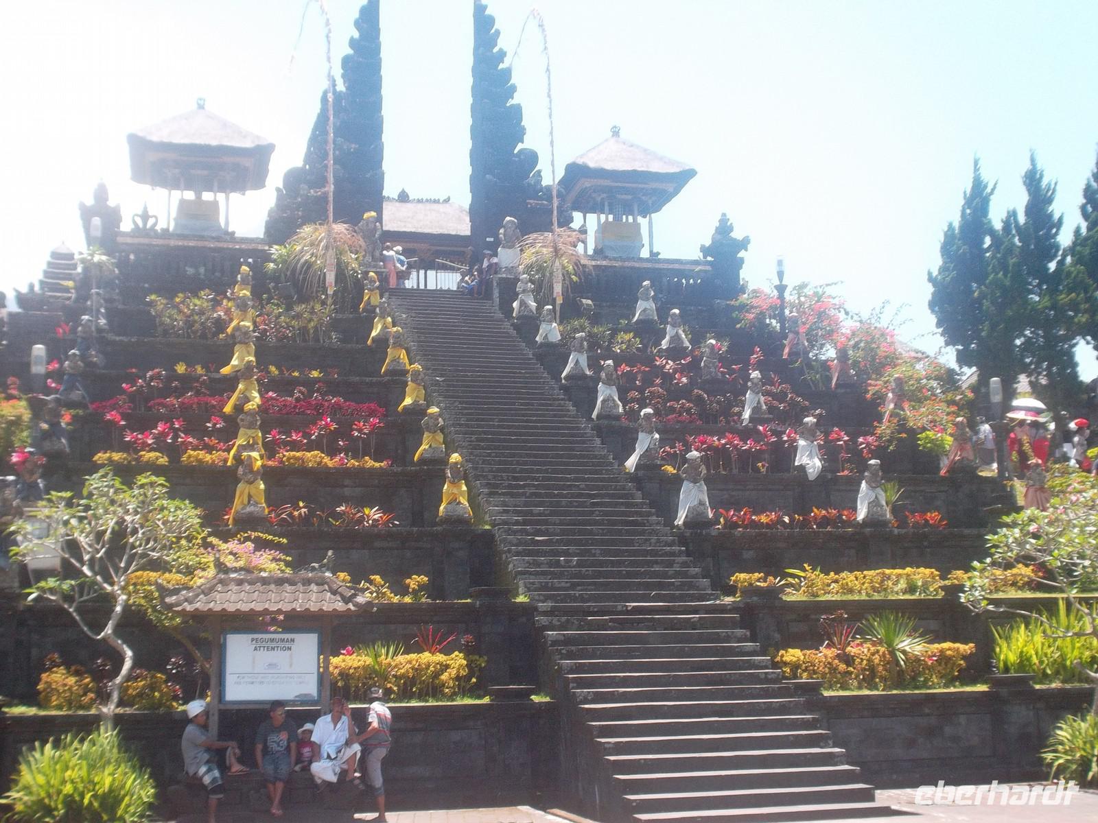 Im Zentrum liegt der Pura Panataran Agung Besakih, in dem der „eine" Gott - nach der indischen Terminologie als Trimurti, also als Hindu-Dreifaltigkeit Brahma-Shiva-Vishnu - verehrt wird. Zwar darf man die Tempelanlage komplett umrunden, aber Zutritt wird nur Gläubigen und nur an Feiertagen gewährt.